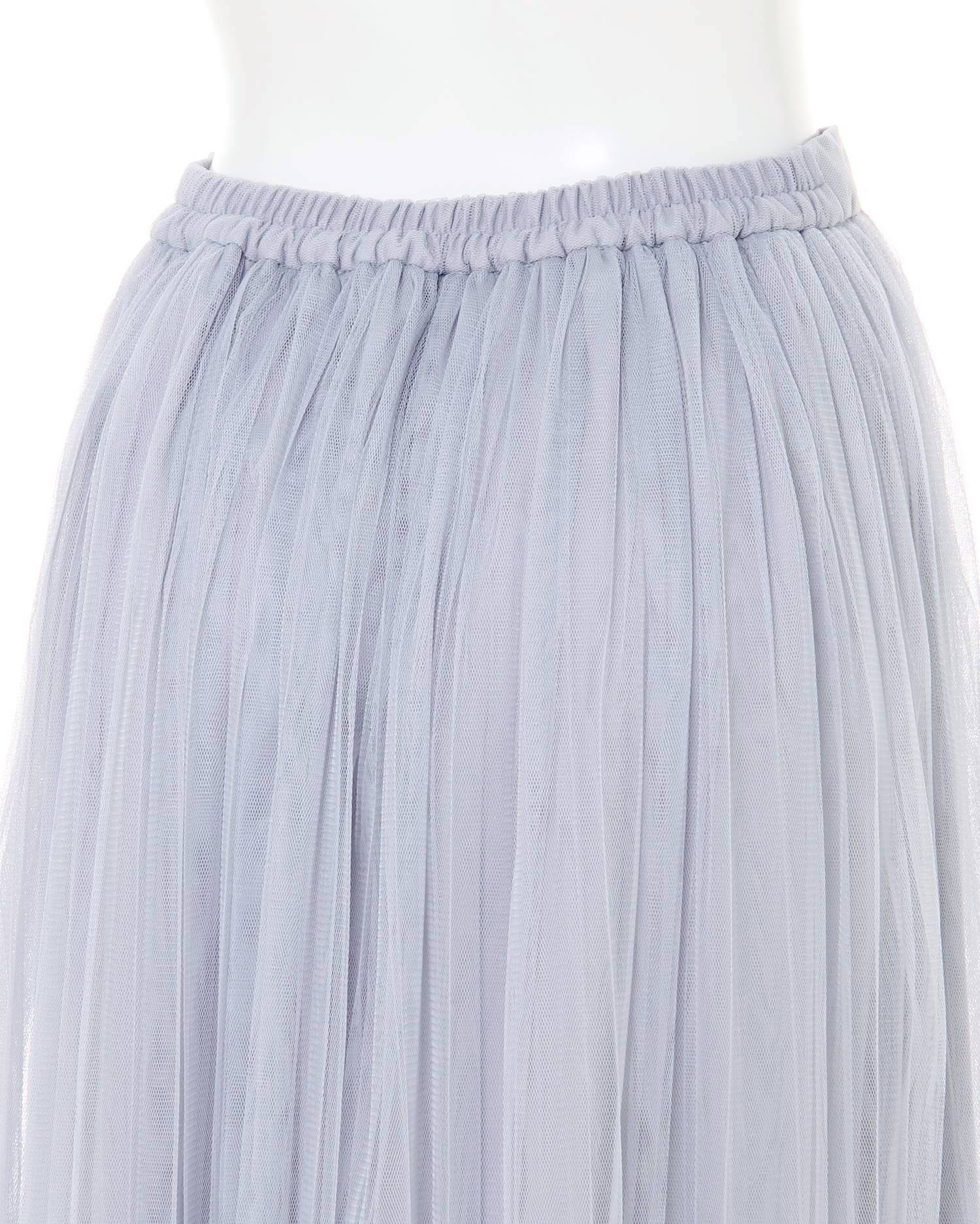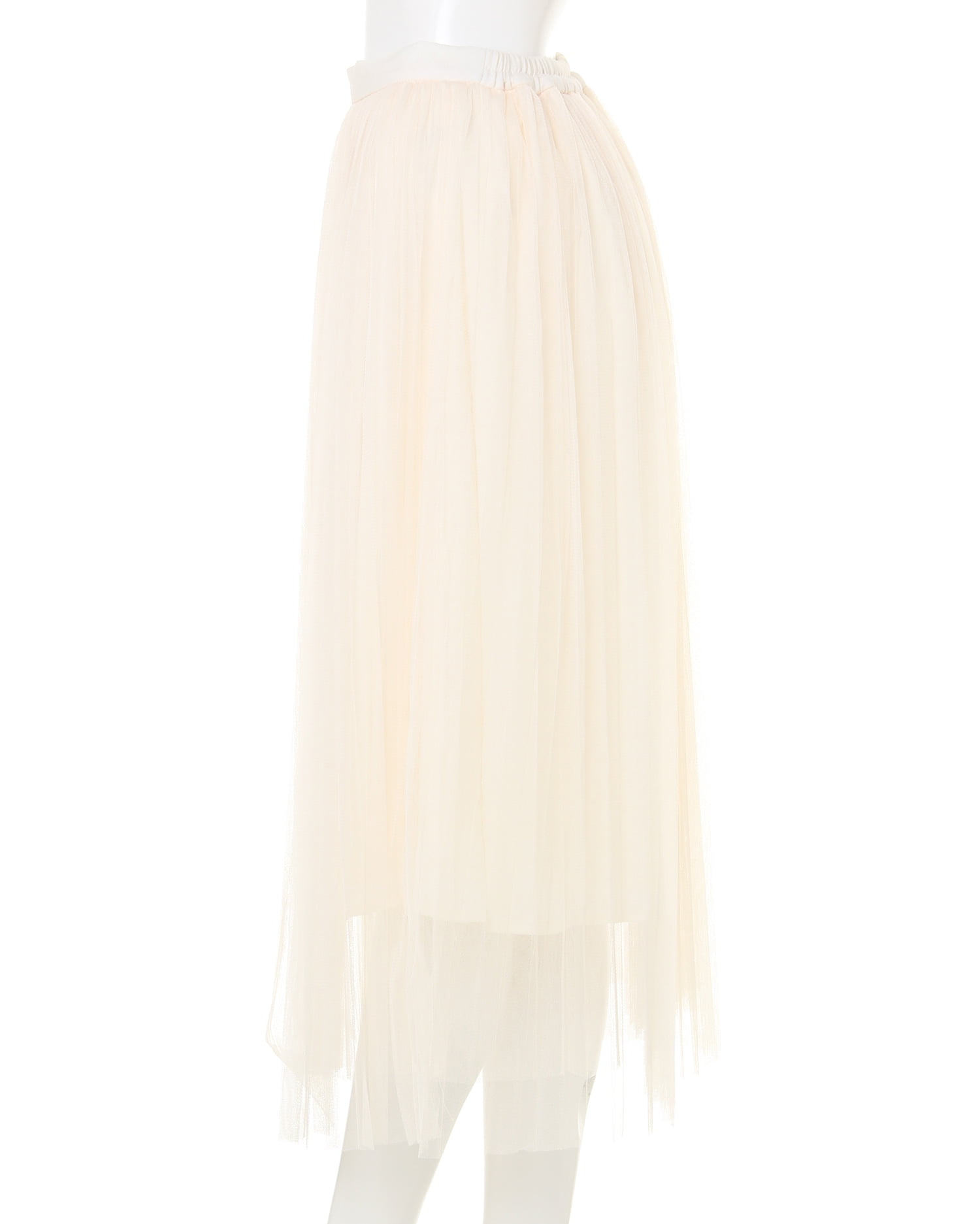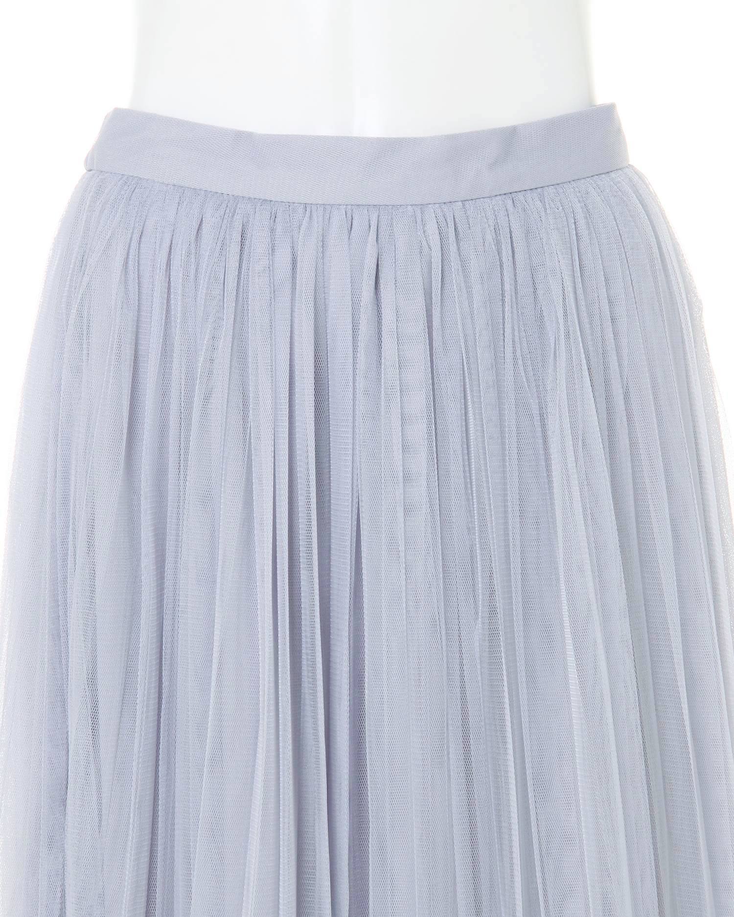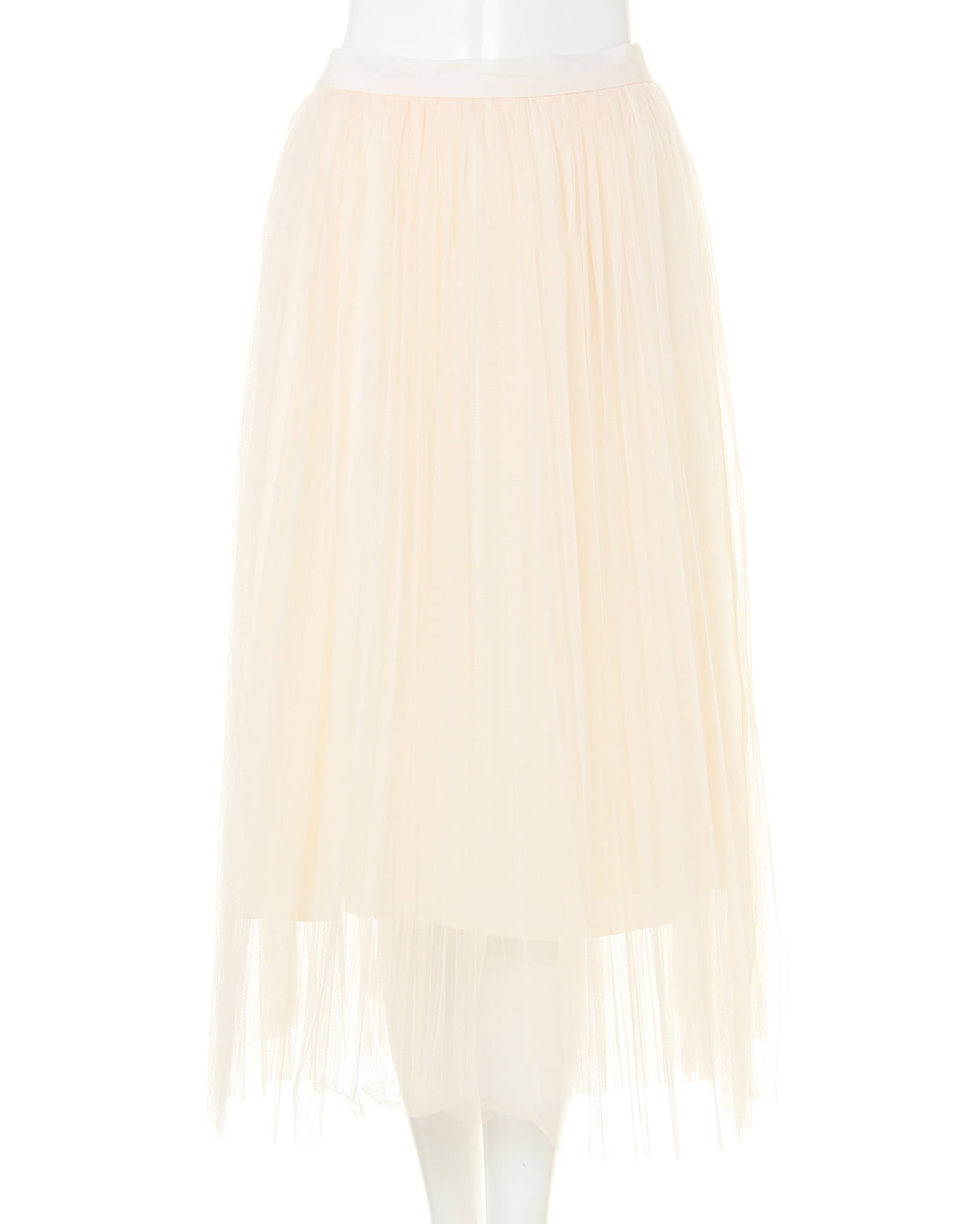 ふんわりボリュームのあるシルエットでフェミニンな着こなしを楽しめるチュールスカート。長めの裾丈で大人っぽいスタイルが完成します。ウエスト後ろ部分はゴムになっているのでリラックスした穿き心地。ウエスト下からプリーツを入れたチュールが新鮮です。動くたびにふわりと広がるシルエットが魅力。裏地付きなので1枚でも安心して着られます。