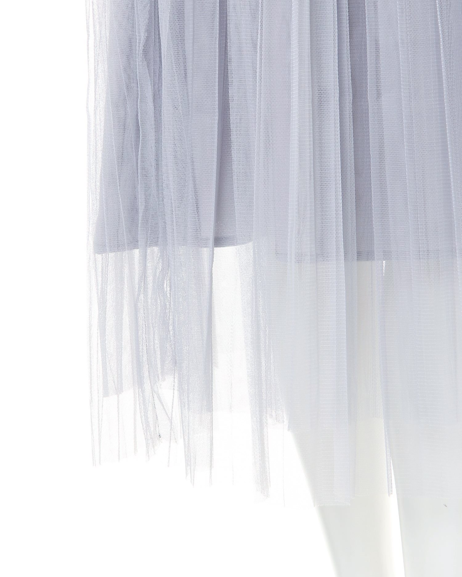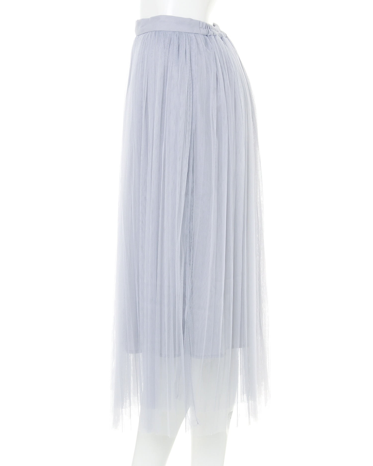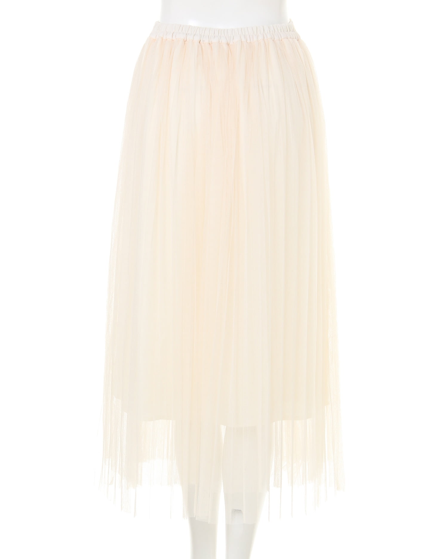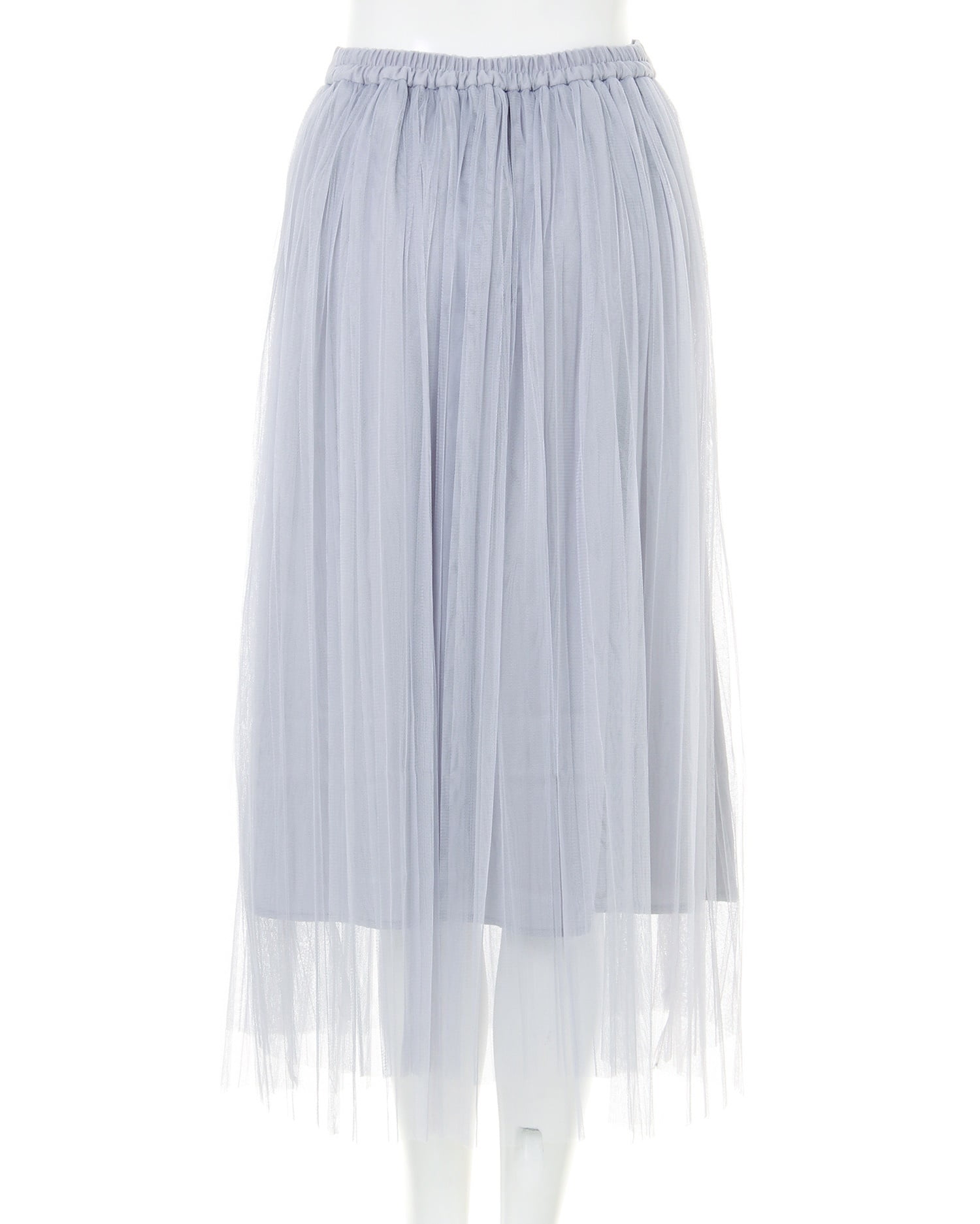 ふんわりボリュームのあるシルエットでフェミニンな着こなしを楽しめるチュールスカート。長めの裾丈で大人っぽいスタイルが完成します。ウエスト後ろ部分はゴムになっているのでリラックスした穿き心地。ウエスト下からプリーツを入れたチュールが新鮮です。動くたびにふわりと広がるシルエットが魅力。裏地付きなので1枚でも安心して着られます。
