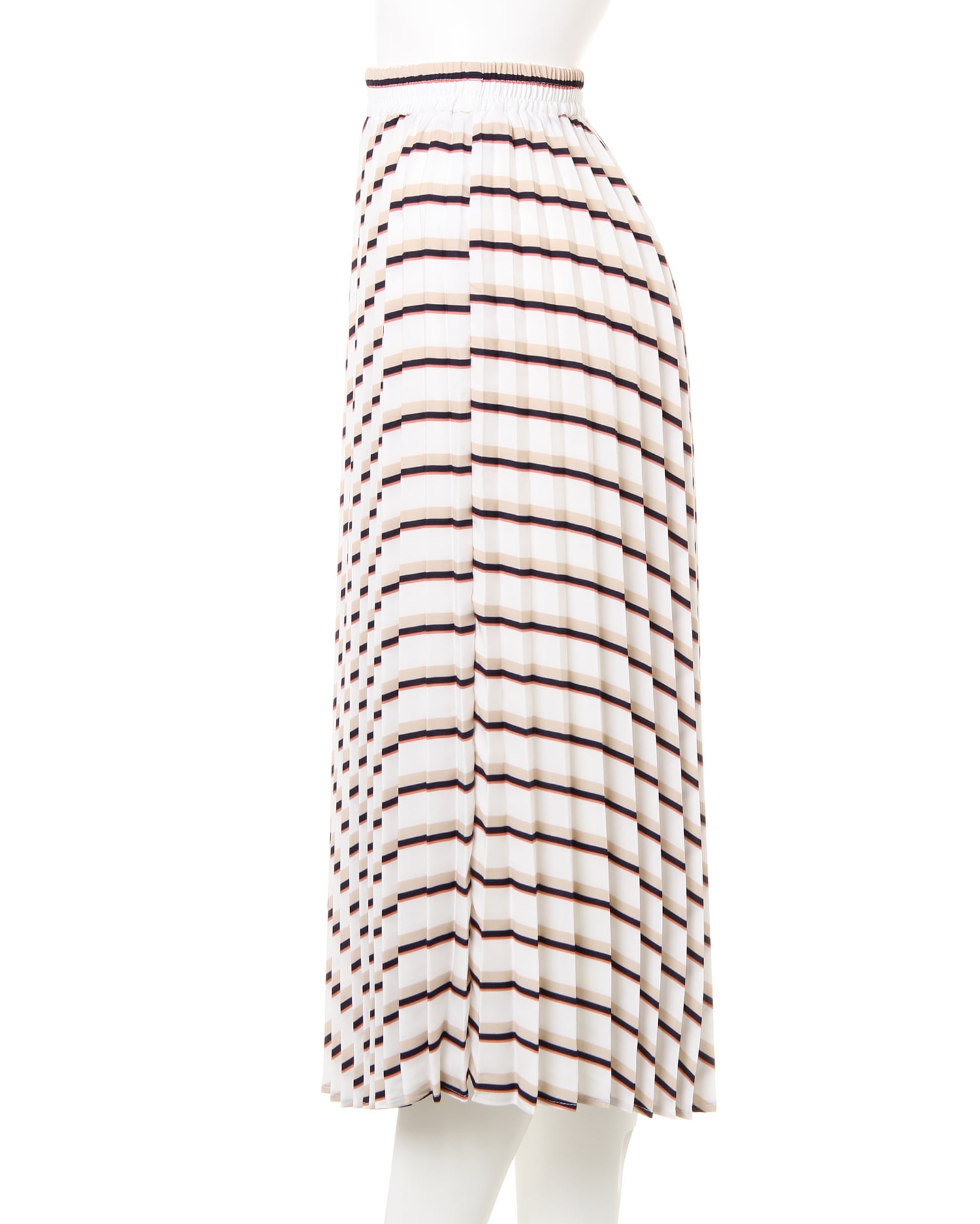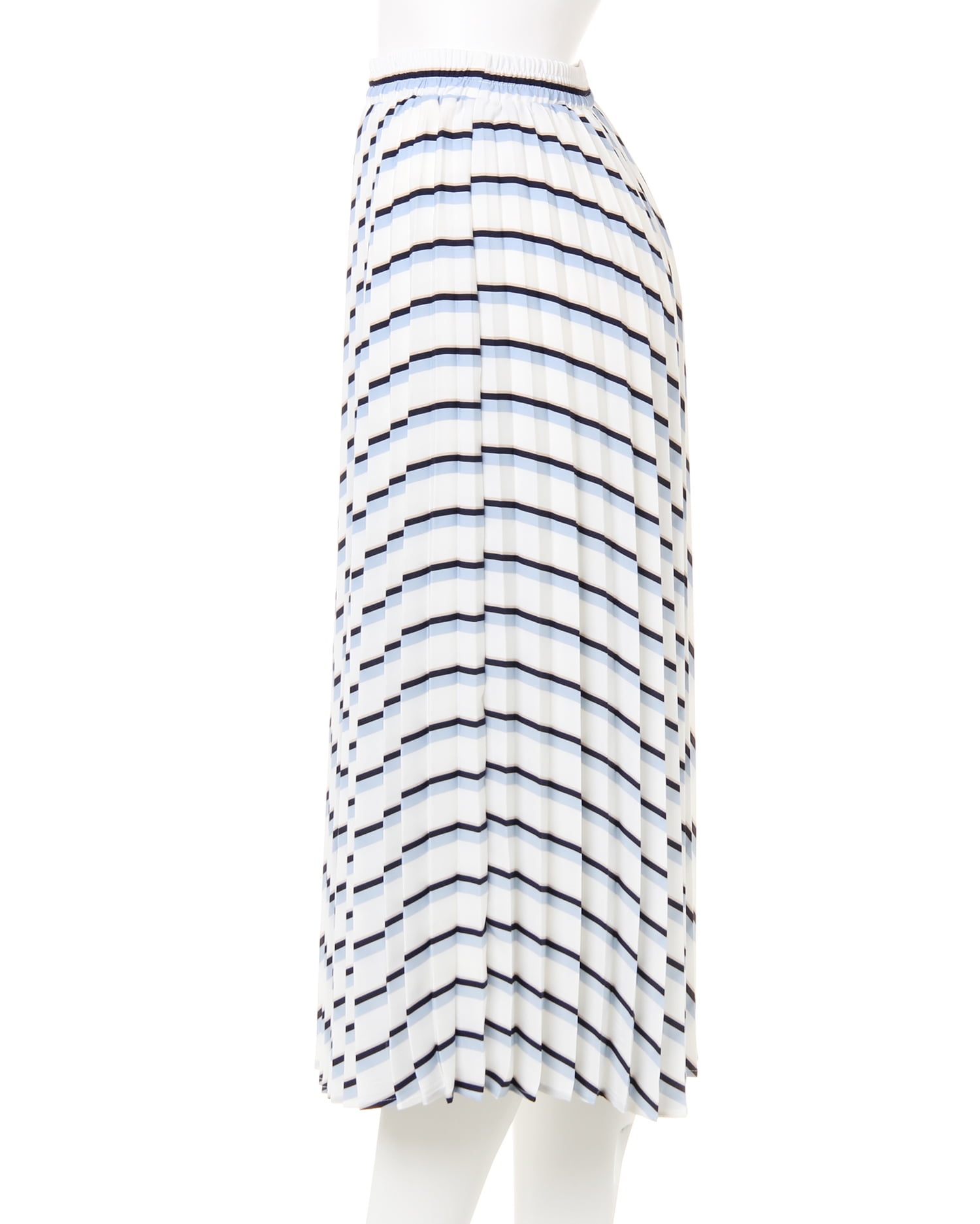 清涼感のあるストライプと軽やかに揺れるプリーツの組み合わせが新鮮なロング丈のスカート。縦ラインのプリーツがすっきりとしたシルエットを演出。スタイルアップ効果も期待出来ます。さらりとした肌当たりとウエストゴムで、ストレスフリーな穿き心地を実現。裏地付きで透けを防いでくれるので1枚でも安心して着られます。存在感のあるスカートは、シンプルなトップスと合わせた着こなしがオススメ。