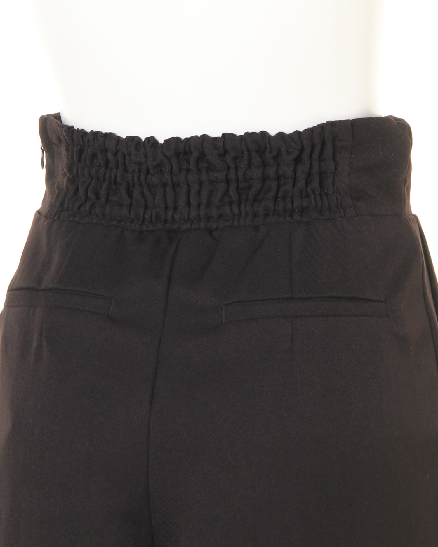 美脚効果とリラックスした穿き心地で人気のワイドパンツ。トレンド感のあるハイウエストでショート丈のトップスにもバランスよく合わせられます。ウエスト下にはタックを入れて腰回りもすっきり。ウエスト部分にはボタンをあしらっているので、トップスインスタイルもサマになります。シンプルなアイテムなので、オンオフ問わずに着回せます。