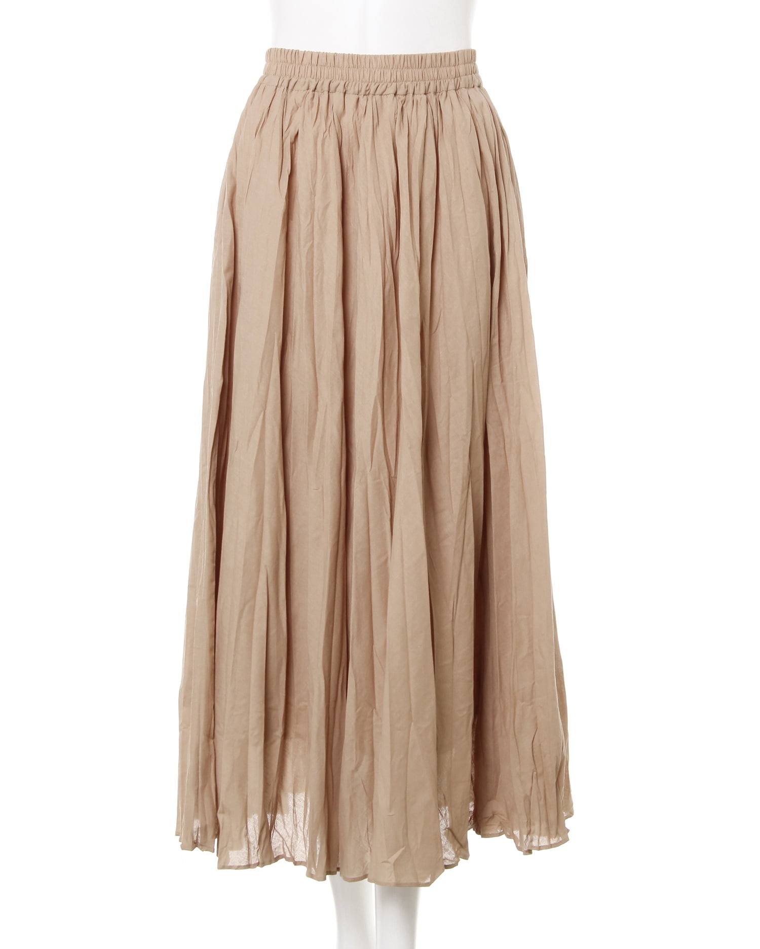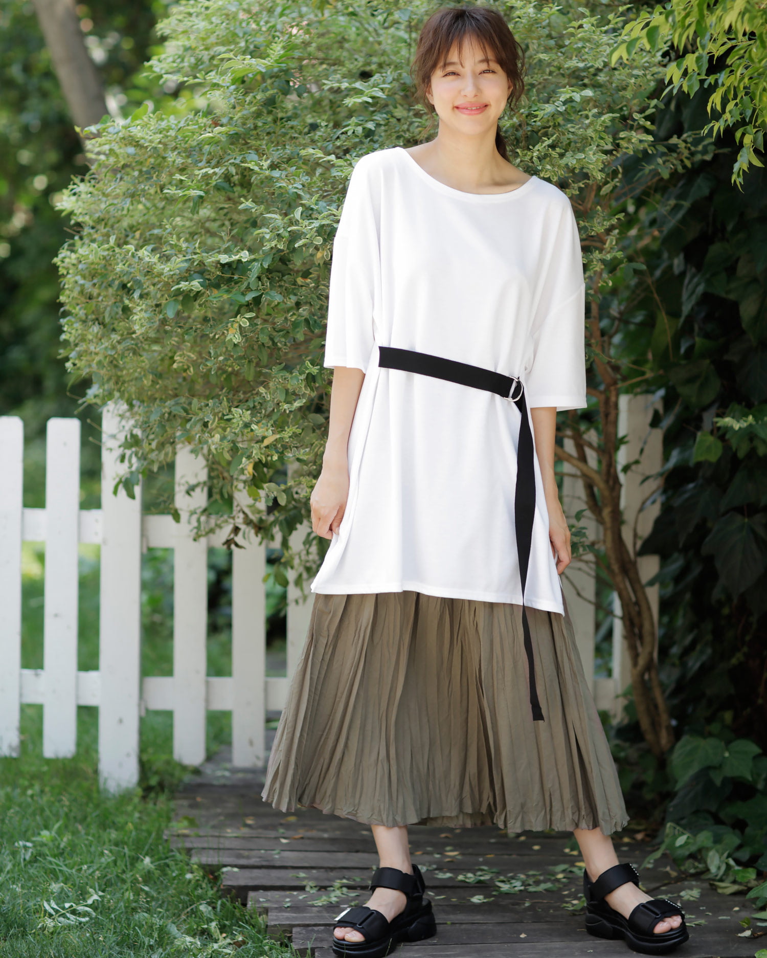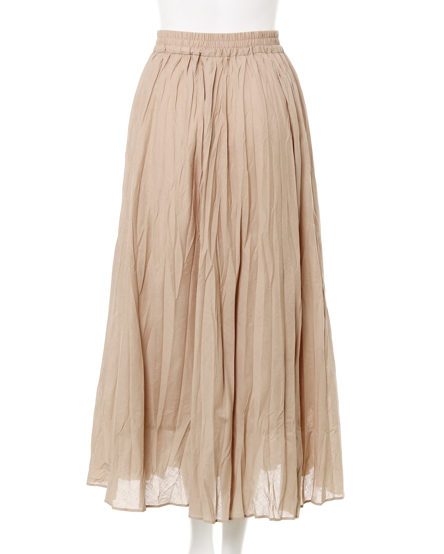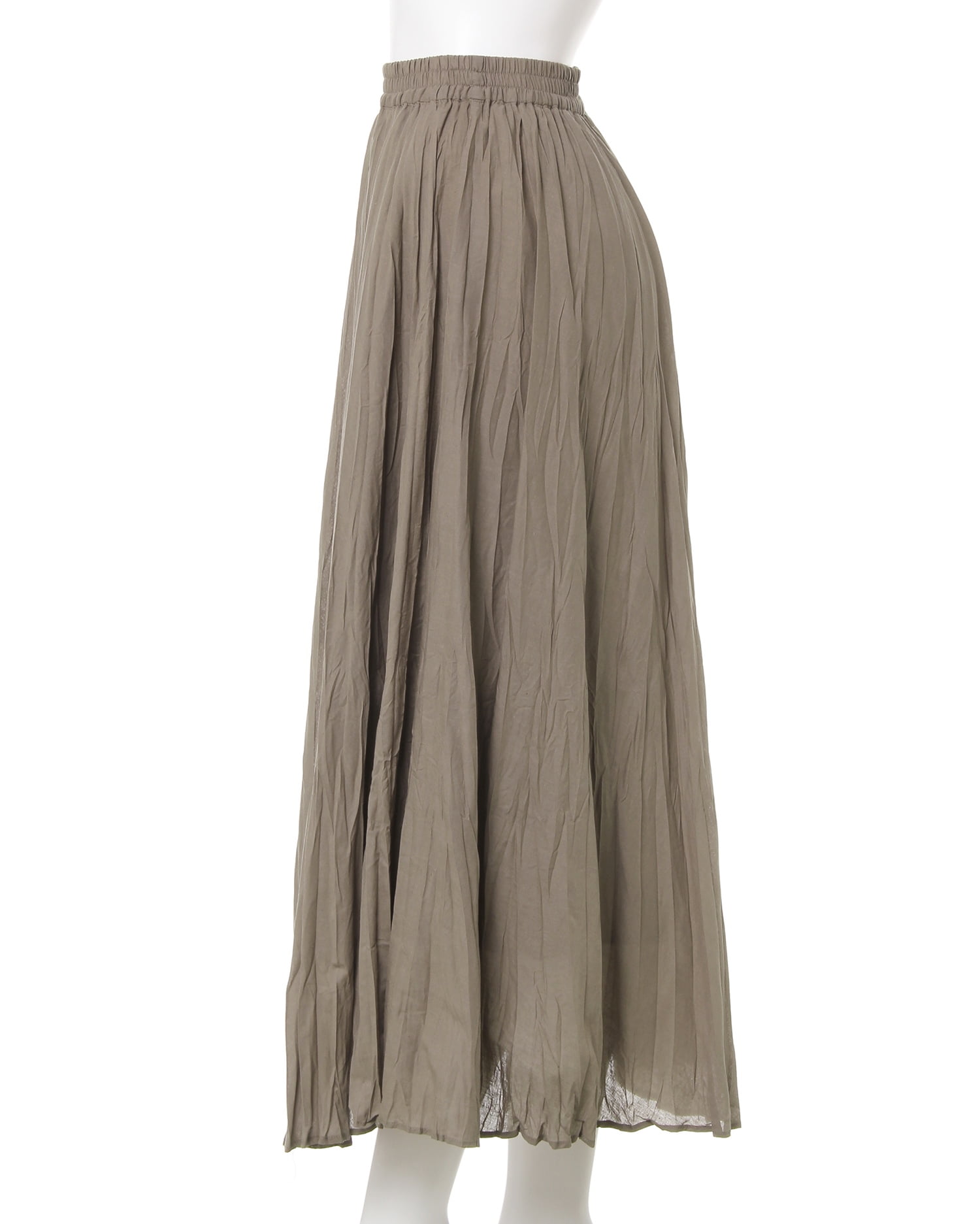 洗いざらしたような雰囲気のワッシャー加工を施したロング丈のスカート。たっぷり入れたドレープが歩くたびにふわりと揺れ、フェミニンな着こなしを叶えます。ウエスト部分はゴムになっているので穿き心地も快適。薄手の清涼感ある生地には裏地付きで、1枚でも安心して着られます。人気のショート丈のトップスを合わせてバランス良く着こなすのも◎。