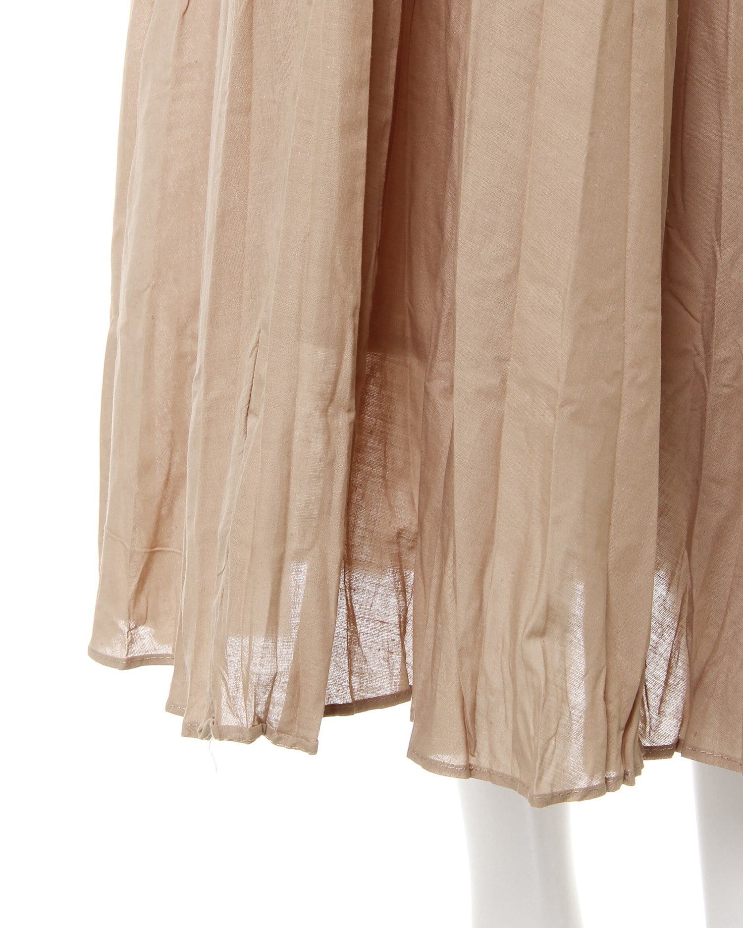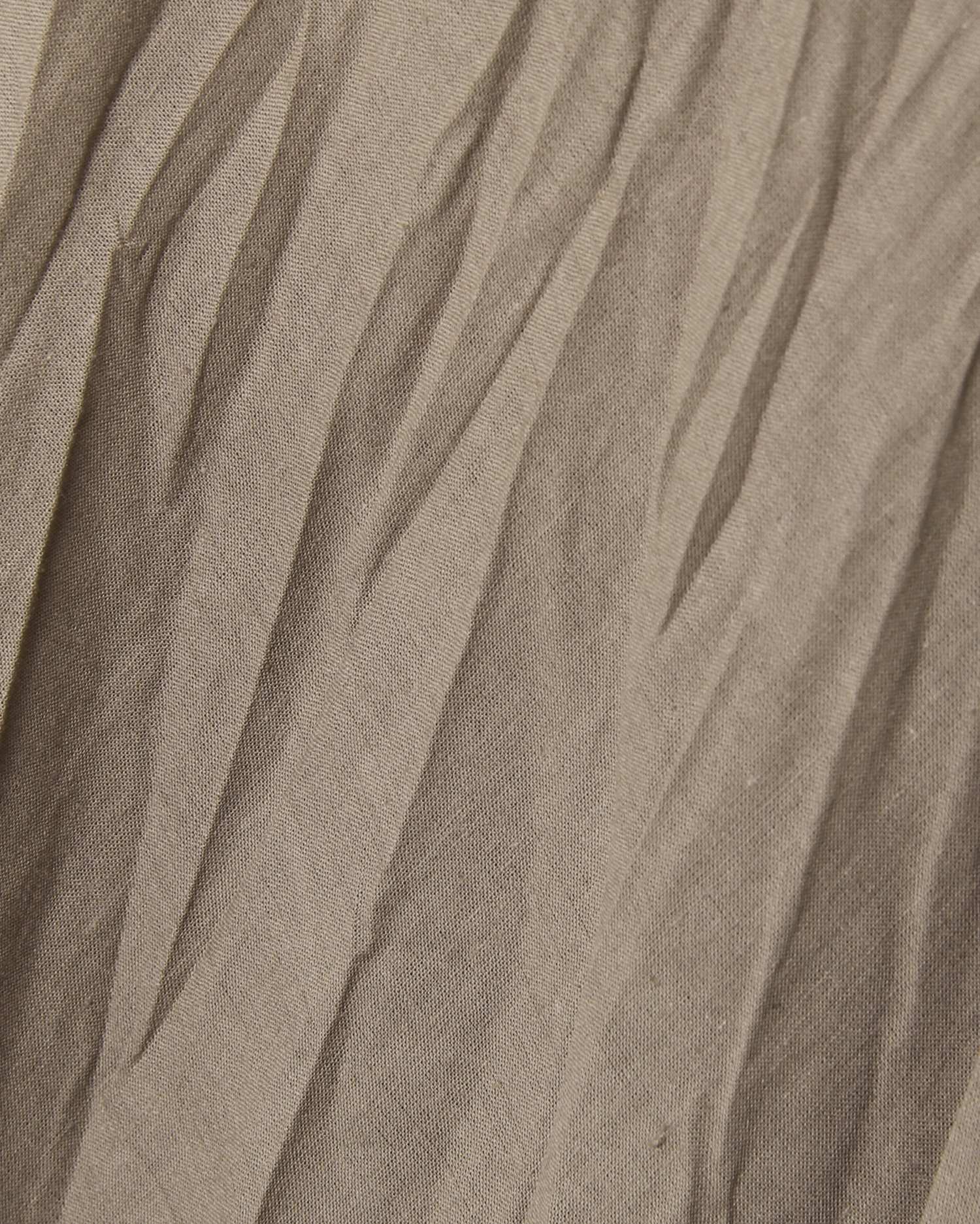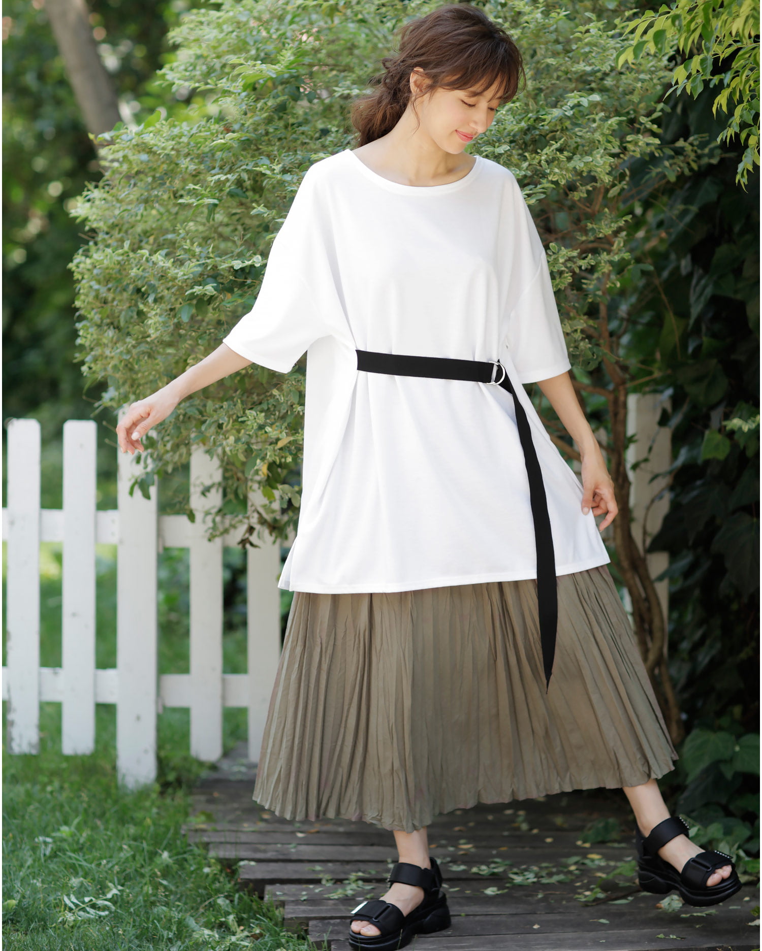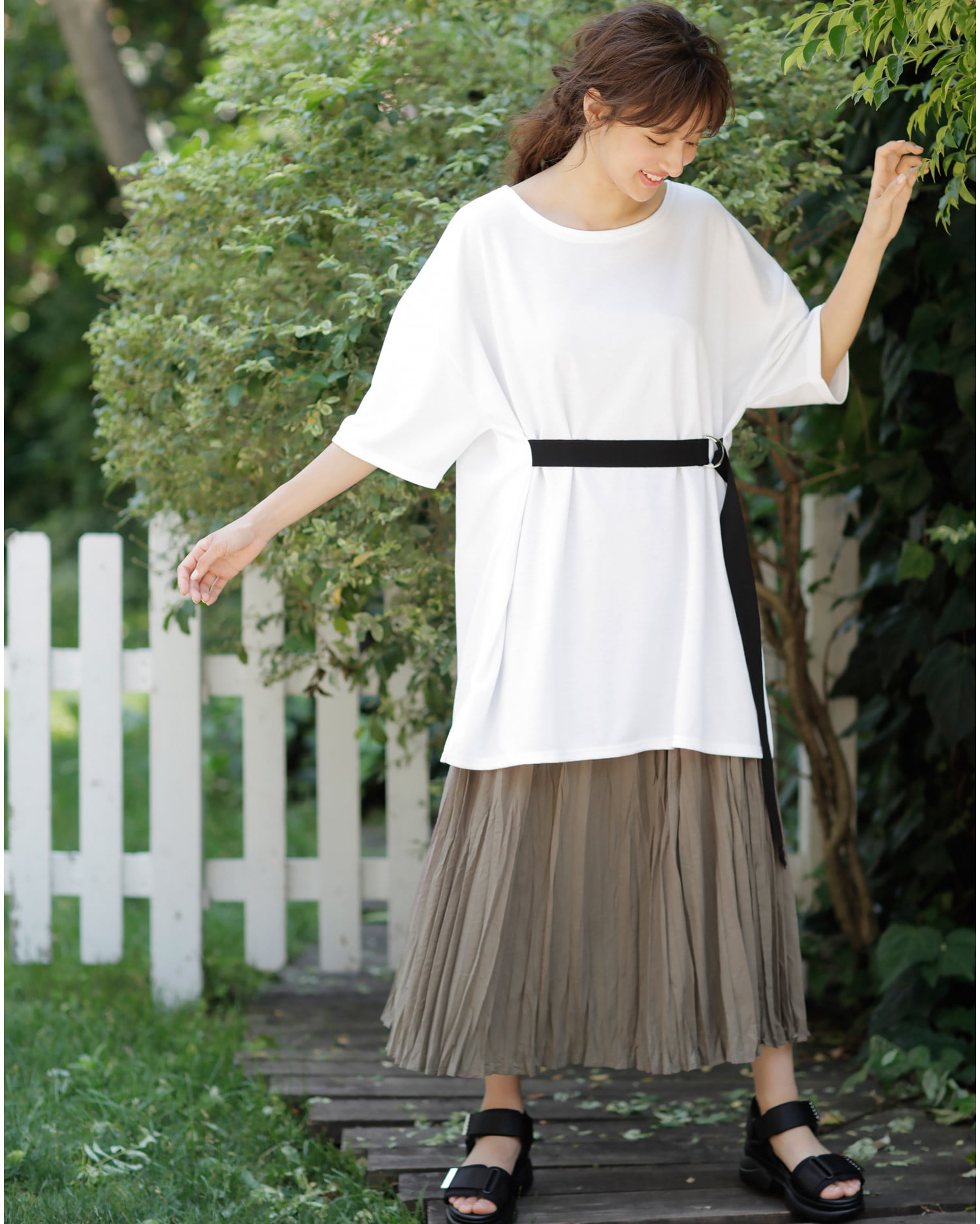洗いざらしたような雰囲気のワッシャー加工を施したロング丈のスカート。たっぷり入れたドレープが歩くたびにふわりと揺れ、フェミニンな着こなしを叶えます。ウエスト部分はゴムになっているので穿き心地も快適。薄手の清涼感ある生地には裏地付きで、1枚でも安心して着られます。人気のショート丈のトップスを合わせてバランス良く着こなすのも◎。