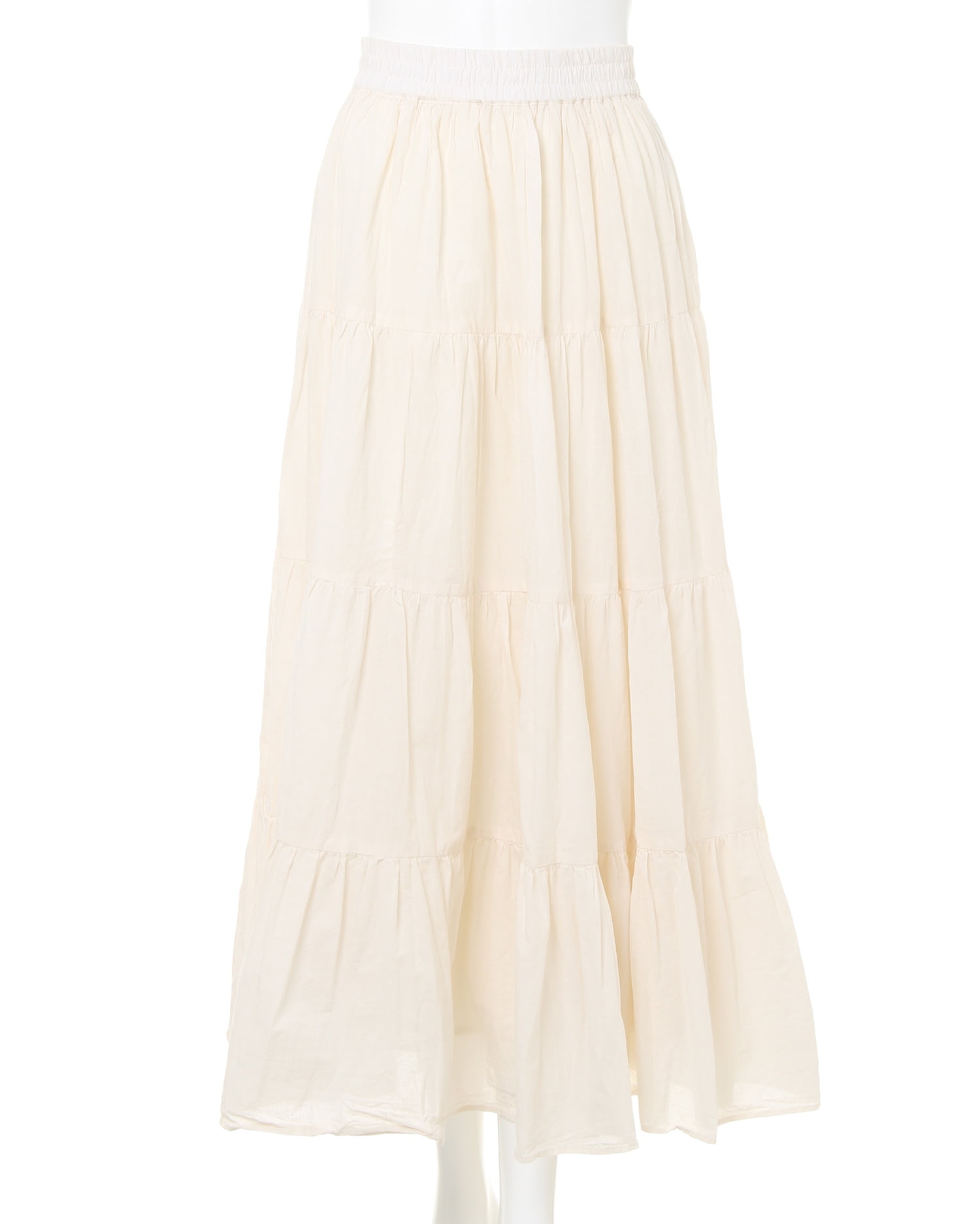 ナチュラル感たっぷりの素材で仕立てたスカートは大人っぽく着こなせるロング丈が魅力。ティアードデザインでふんわりとボリュームを出すことで、気になる体型カバーも期待できます。柔らかく薄手の素材も裏地付きなので安心。トレンドのアースカラーが揃っているので、どのカラーも着回し力抜群。1枚は持っておきたいアイテムです。