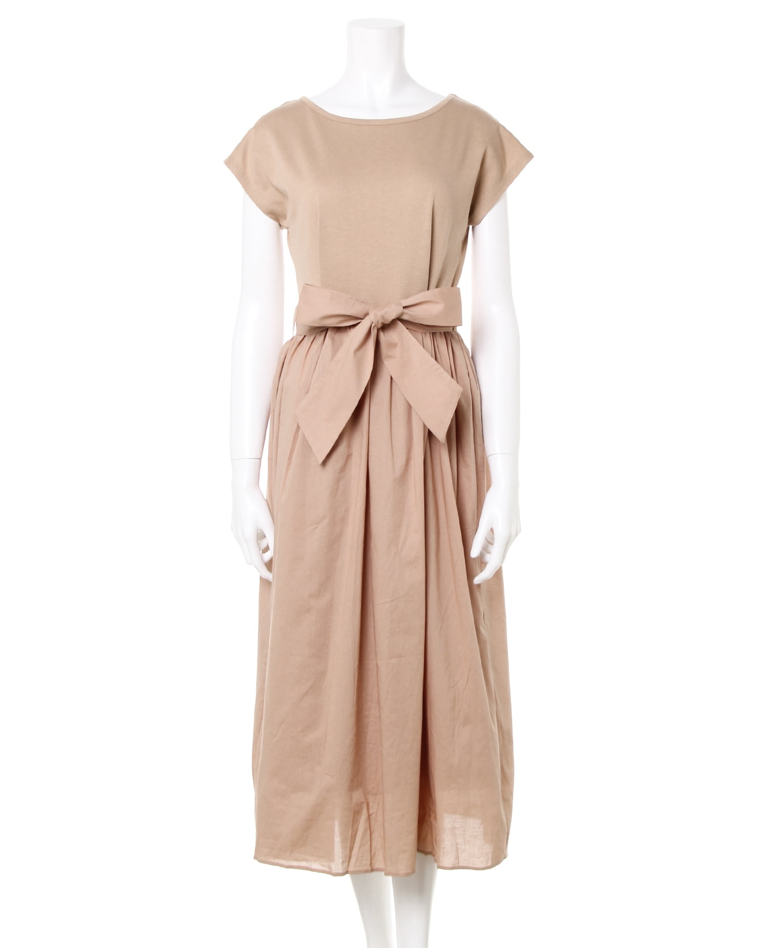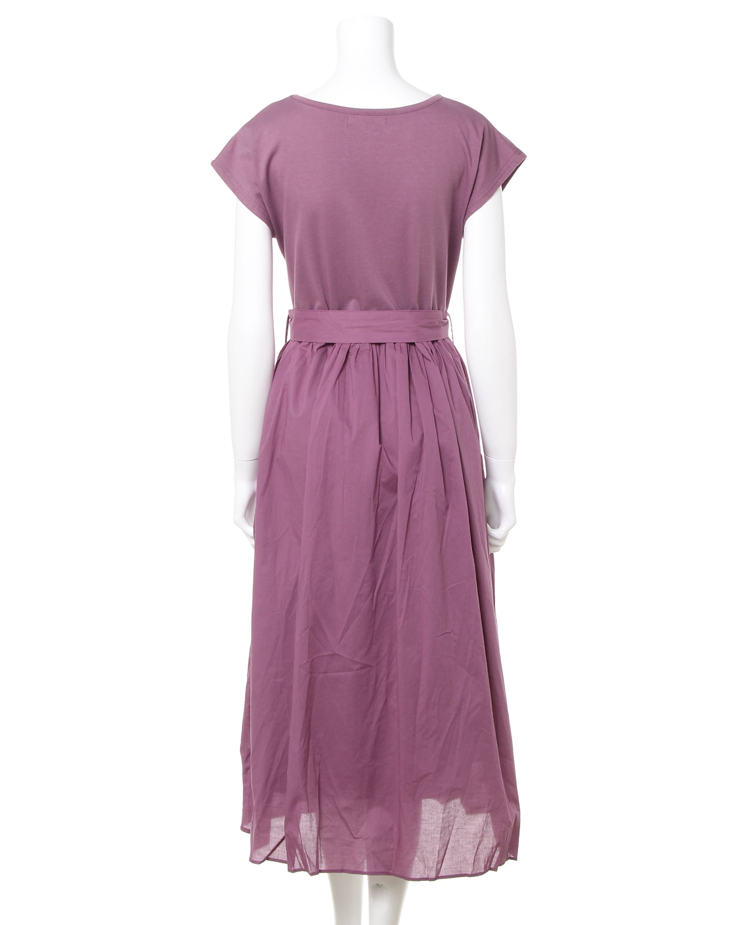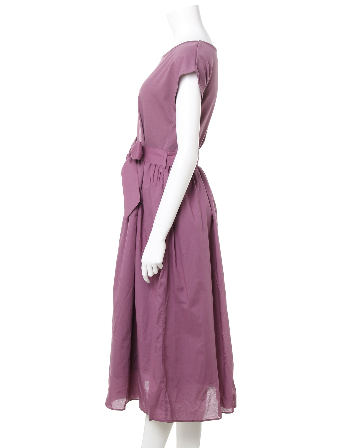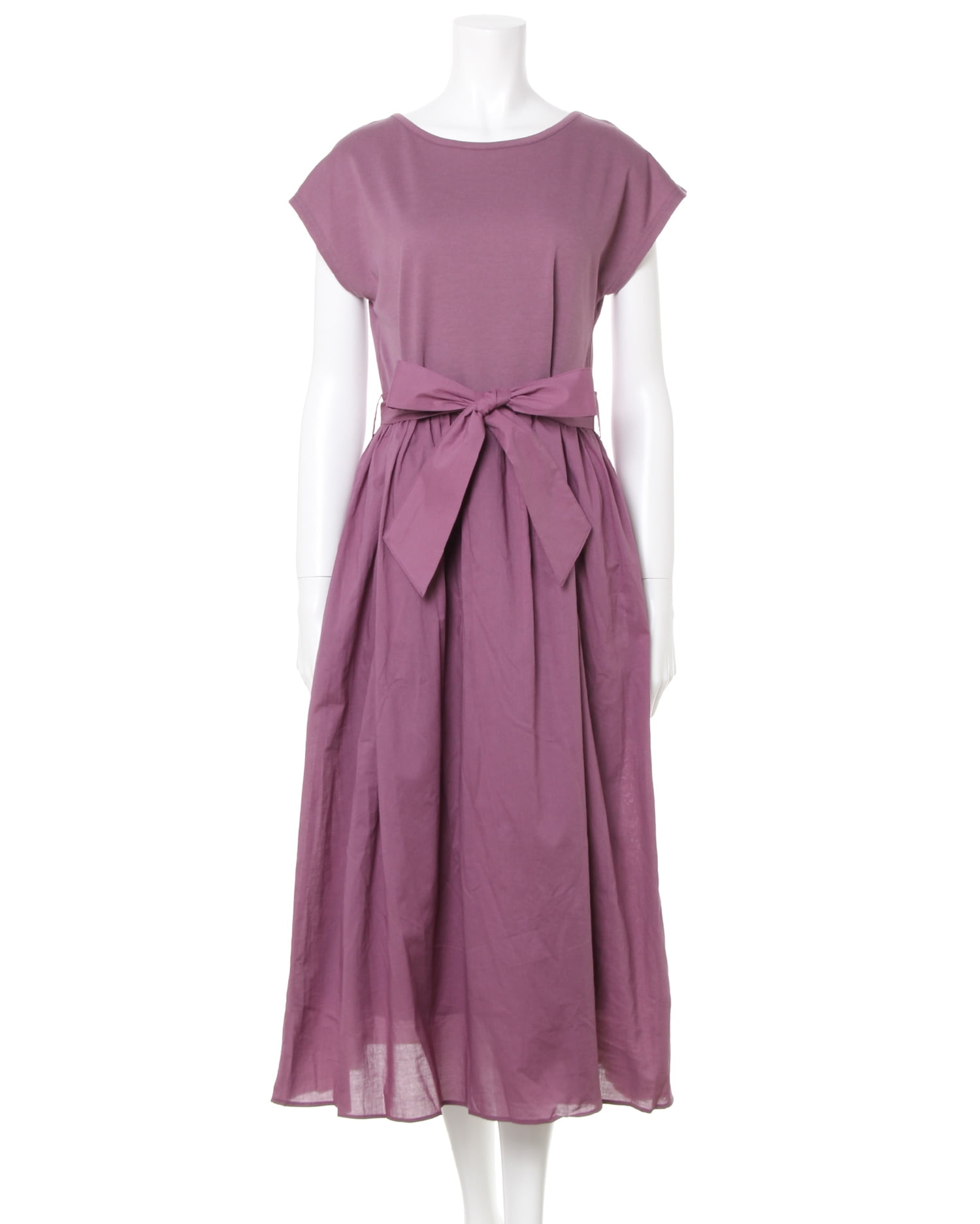 トップを柔らかなカットソー生地、スカート部分をハリ感のある生地で切り替えた異素材ドッキングのワンピース。ナチュラルに着こなせる落ち感のあるシルエットは着心地も快適な1枚です。二の腕をすっきり見せてくれるフレンチスリーブが◎。大人っぽく着こなせるロング丈でこなれ感のあるコーディネイトが完成します。ウエストマークに便利なサッシュベルト付き。