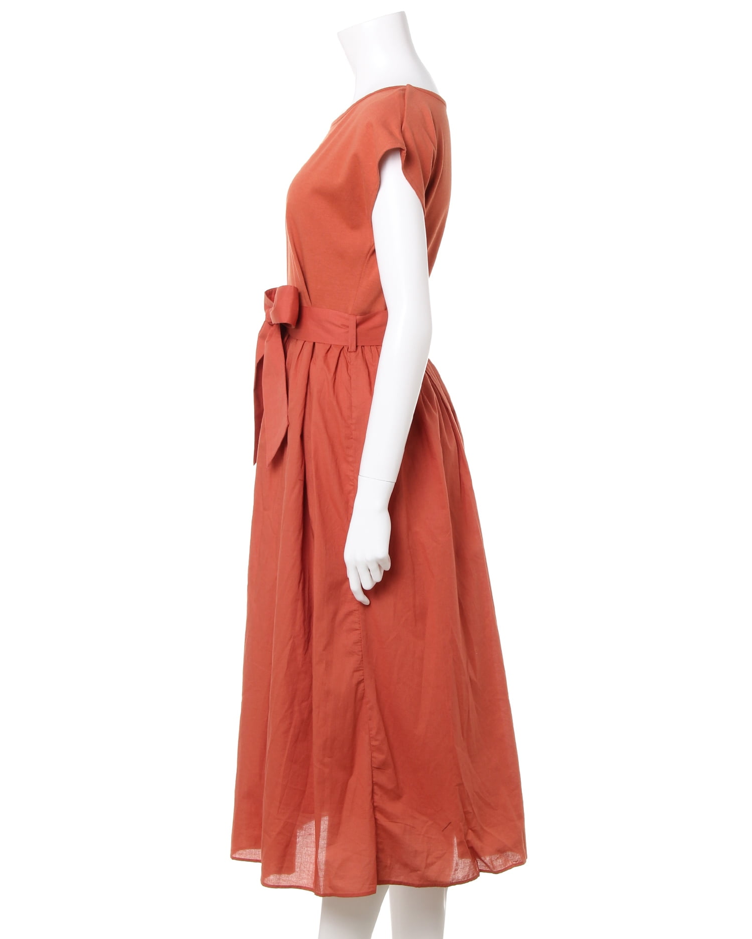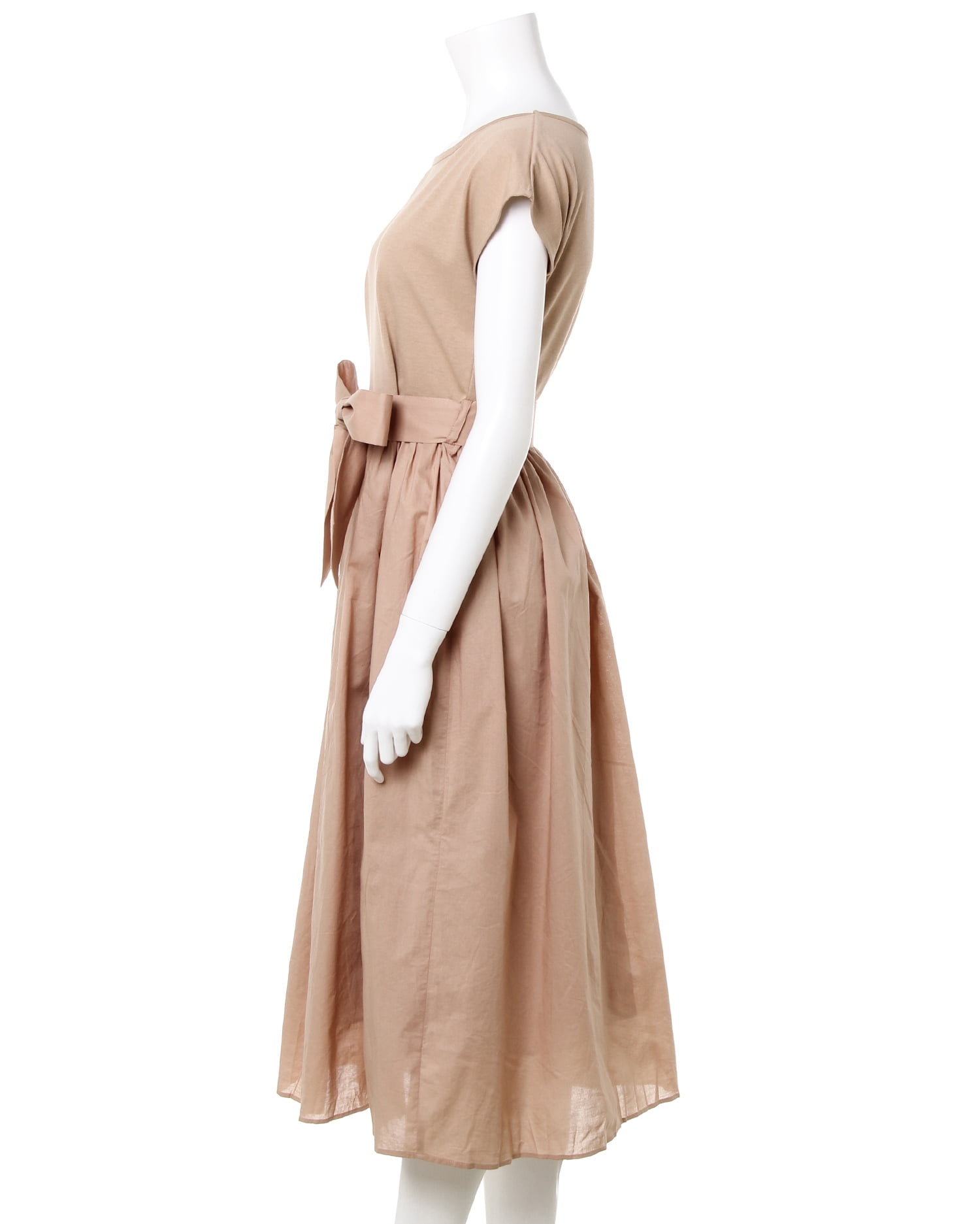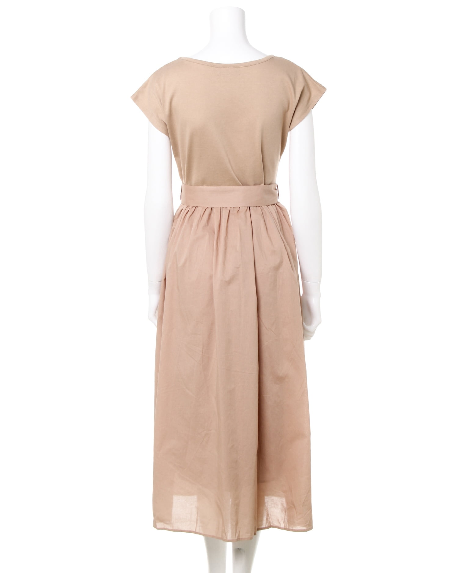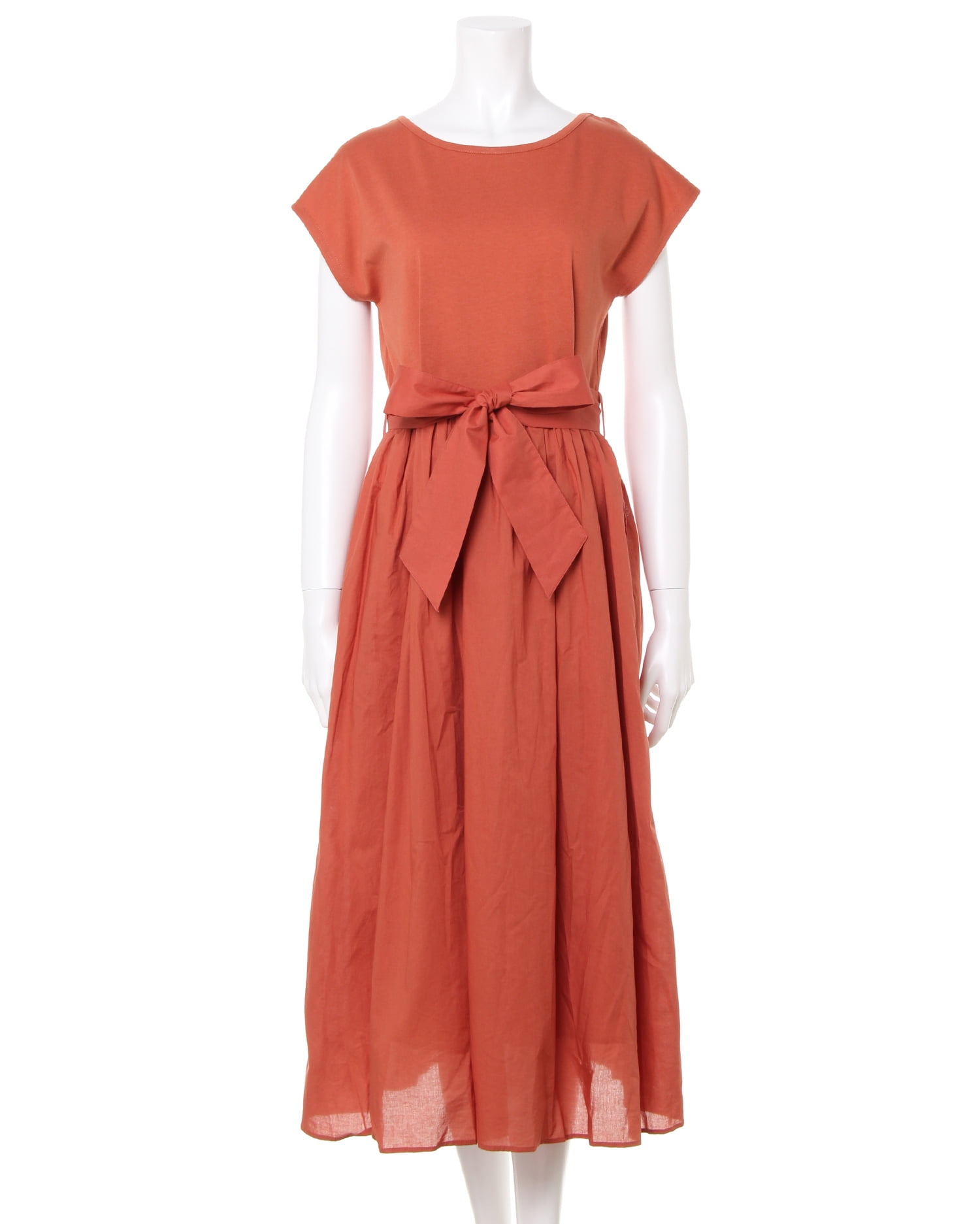 トップを柔らかなカットソー生地、スカート部分をハリ感のある生地で切り替えた異素材ドッキングのワンピース。ナチュラルに着こなせる落ち感のあるシルエットは着心地も快適な1枚です。二の腕をすっきり見せてくれるフレンチスリーブが◎。大人っぽく着こなせるロング丈でこなれ感のあるコーディネイトが完成します。ウエストマークに便利なサッシュベルト付き。