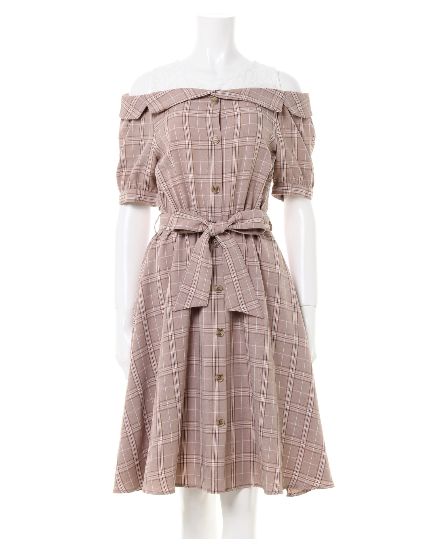 理想的なレイヤードスタイルが1枚で完成するレースタンクとチェック柄のオフショルワンピースの組み合わせが登場しました。繊細なレースからほんのり透ける肌と、オフショルデザインで抜け感のある着こなしに。ドッキングデザインでもたつかずすっきり着られるのも魅力的。サイドにはファスナーがついているので着脱も楽チンです。ウエストマークに便利なサッシュベルト付き。