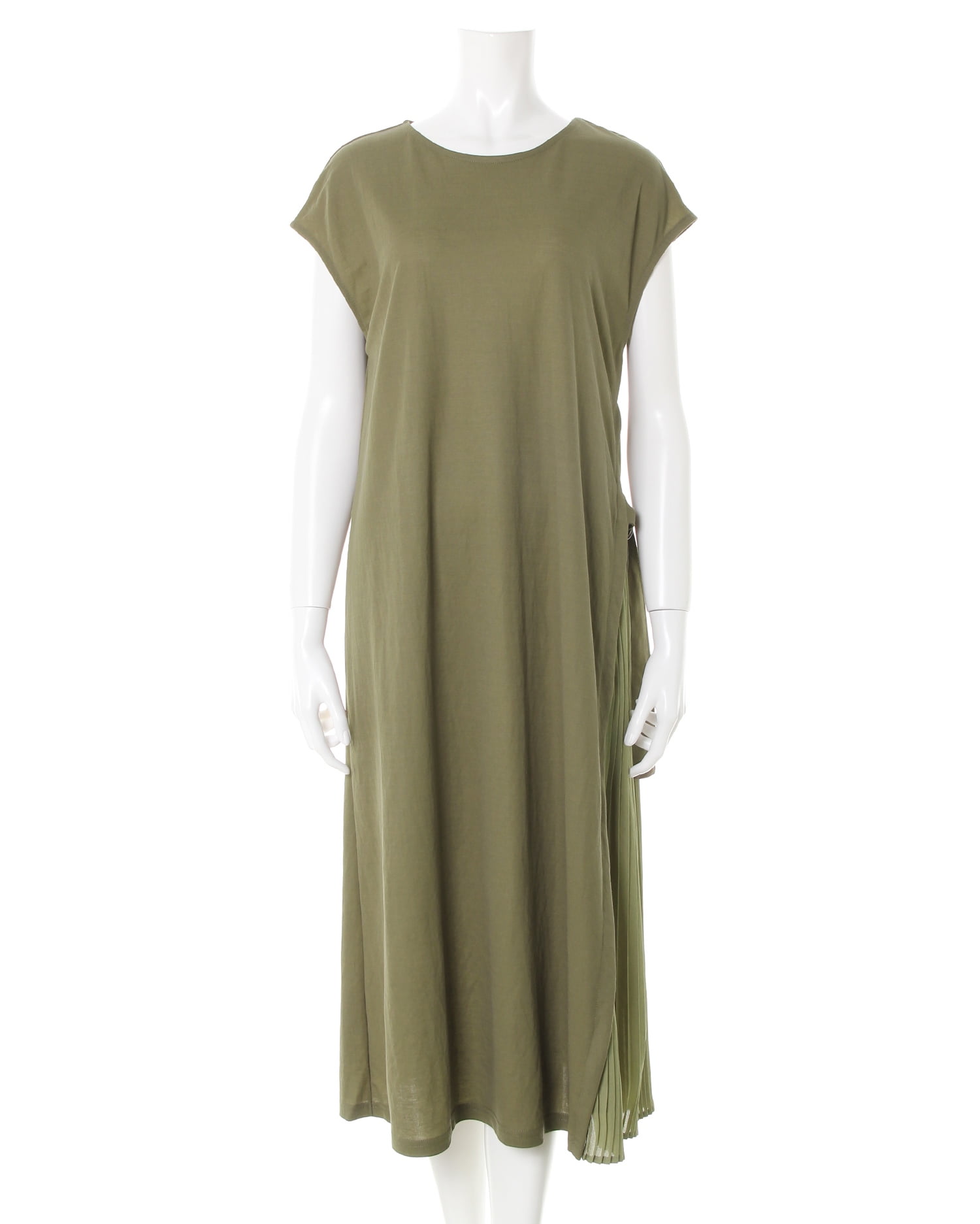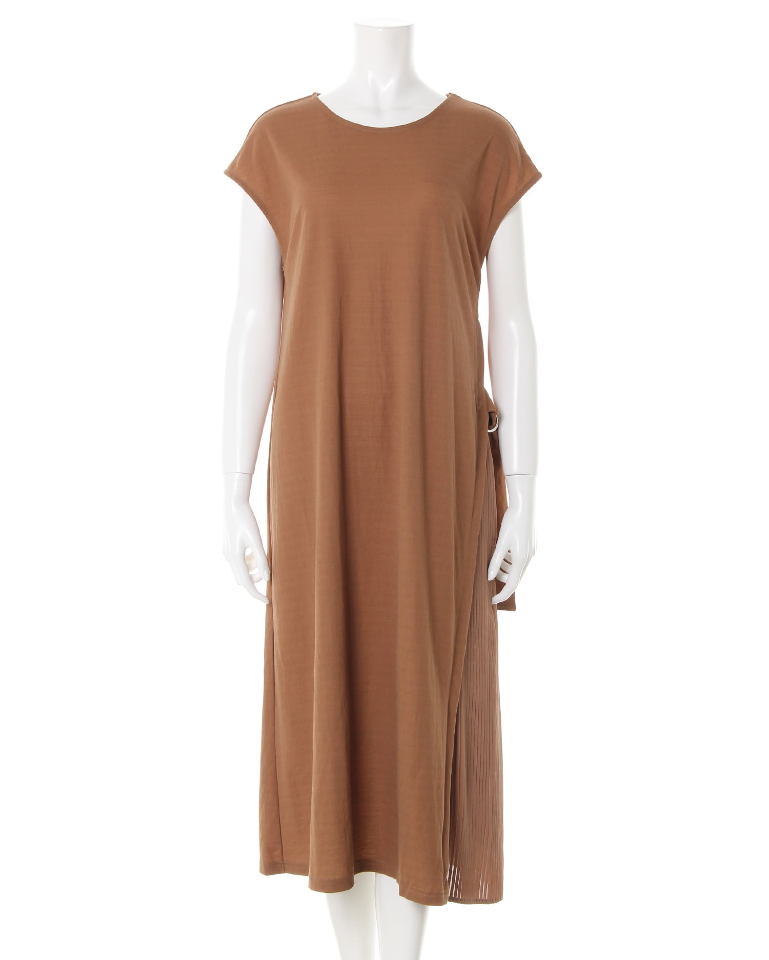 大人っぽいアースカラーでトレンドライクな着こなしが叶うワンピースはロングな丈感でこなれた印象に。裾に向かって広がるフレアシルエットのデザインで着るだけでスタイルアップ効果も狙えます。フロントサイドのプリーツが着こなしのアクセントになりメリハリのあるスタイルを演出。伸びが良くひんやりとした肌触りで快適な着心地に導く素材使いも魅力的です。