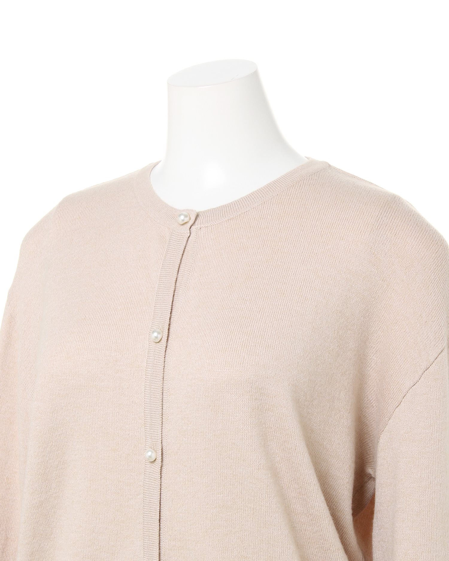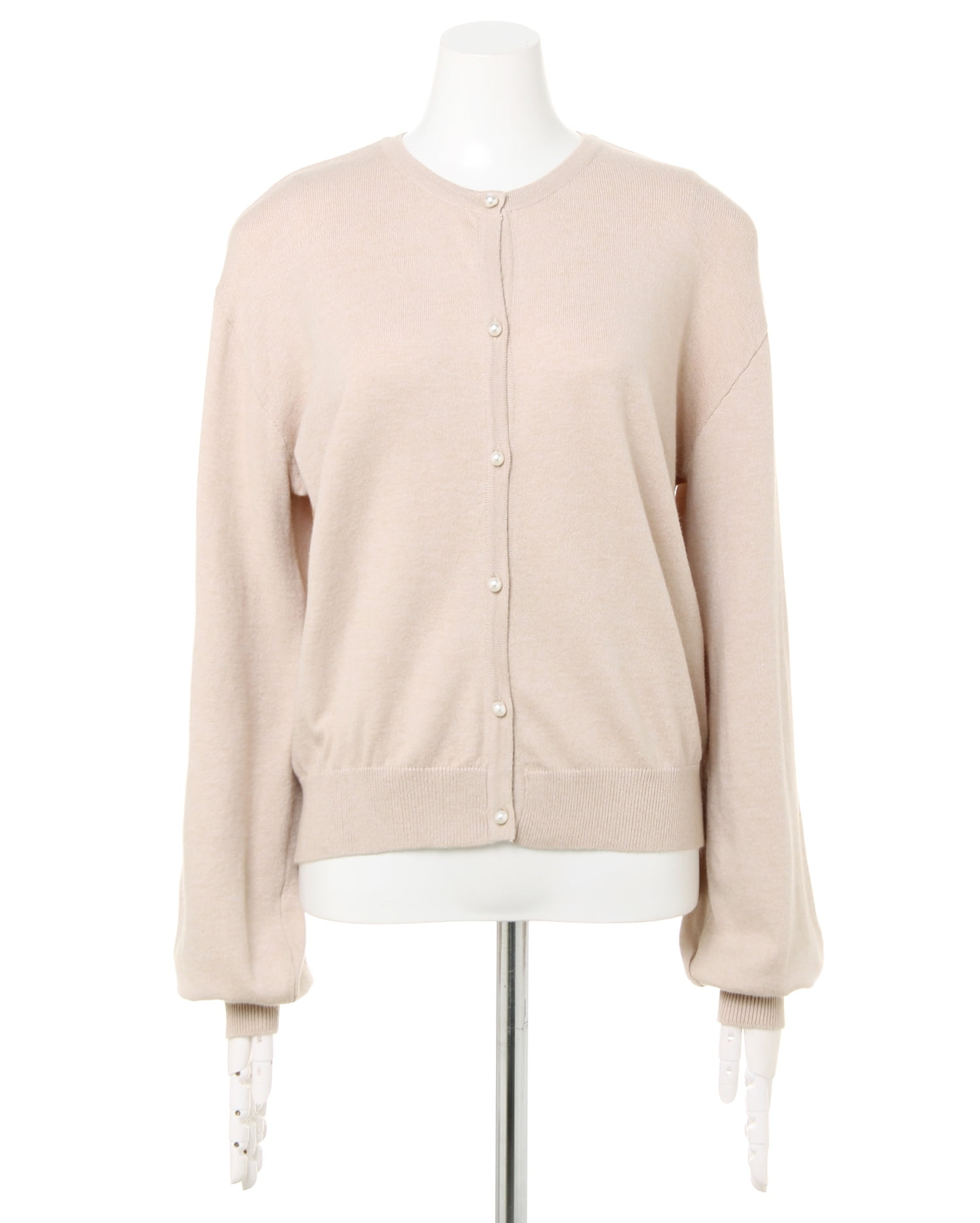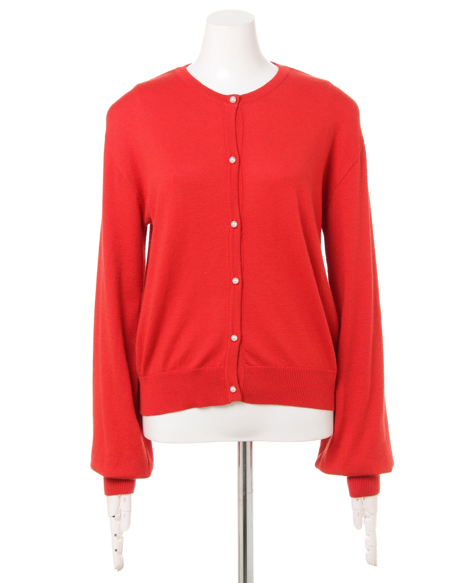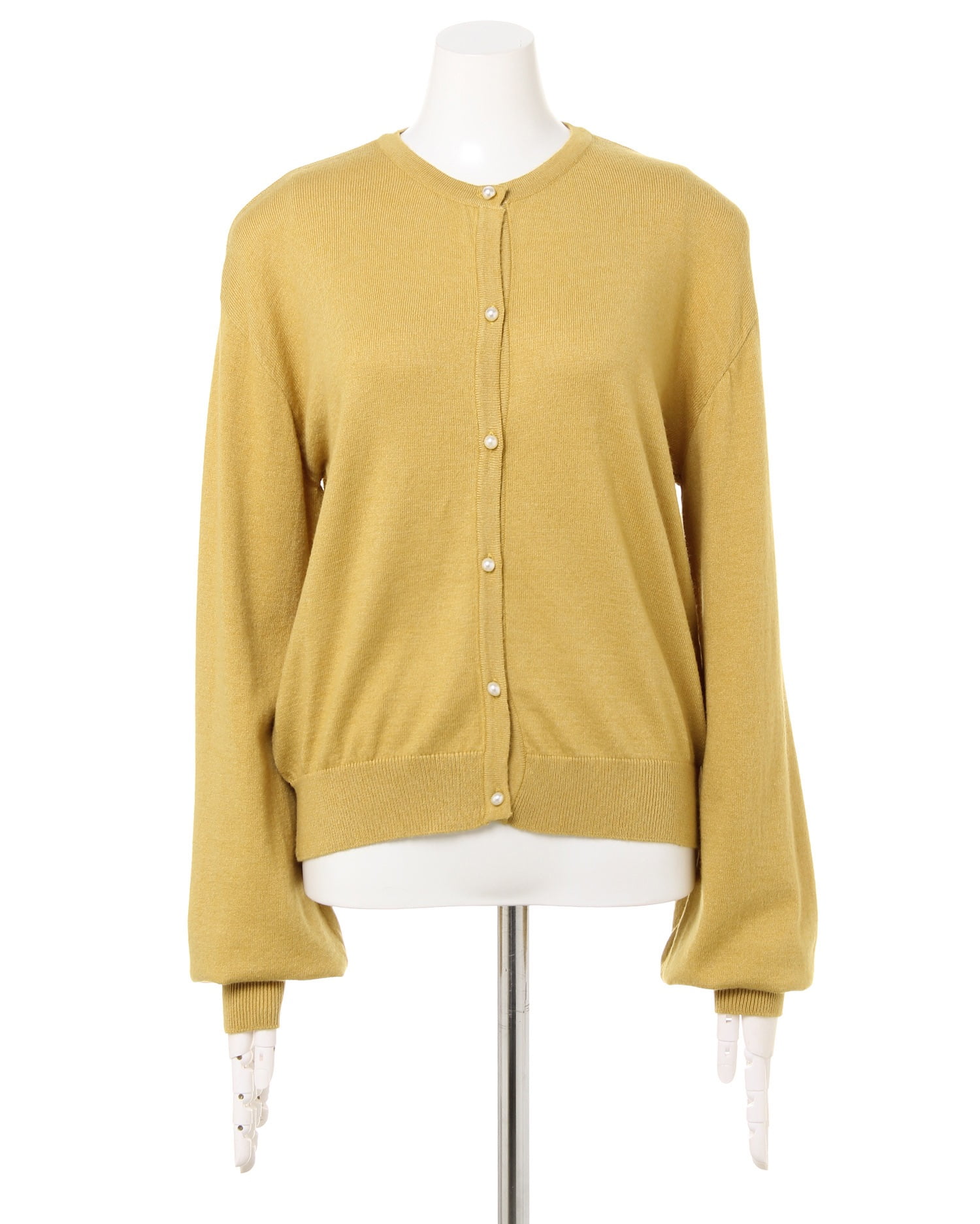 伸縮性の高い柔らかなカーディガンは優しい肌触りが心地良い1枚。ワンカラーデザインで合わせやすく、デイリー使いに重宝します。ドロップショルダーとボリューム袖が今年らしいデザイン。袖口と裾を細いリブ仕様にしたことで、メリハリのある着こなしに。パール調のボタンがアクセントになっています。前を閉めてシンプルに着こなすのはもちろん、羽織にも◎。