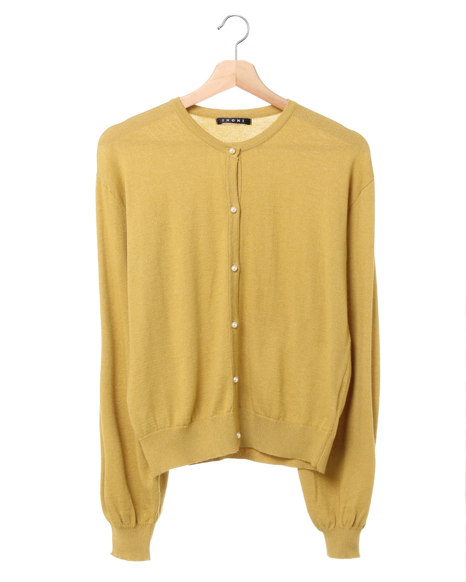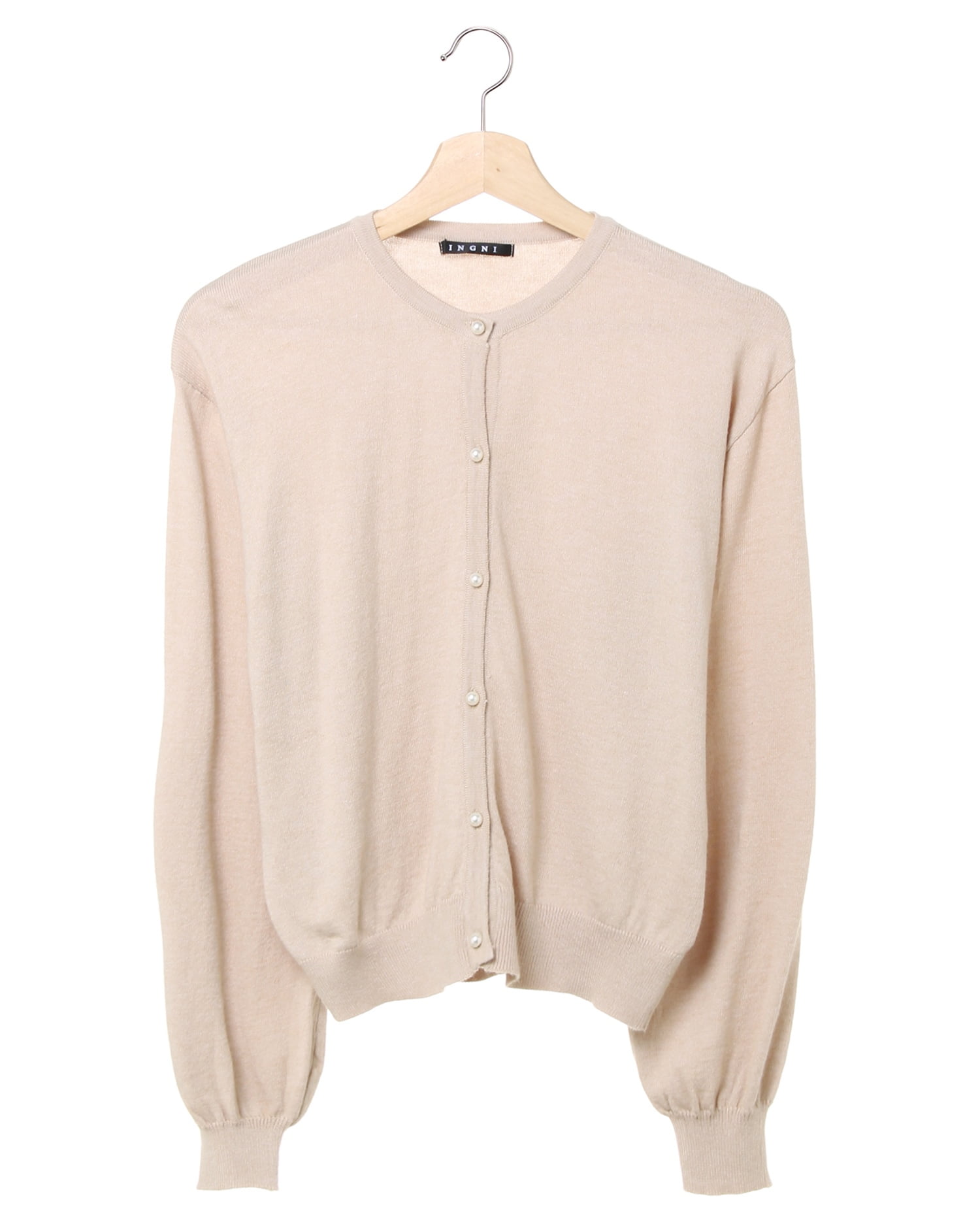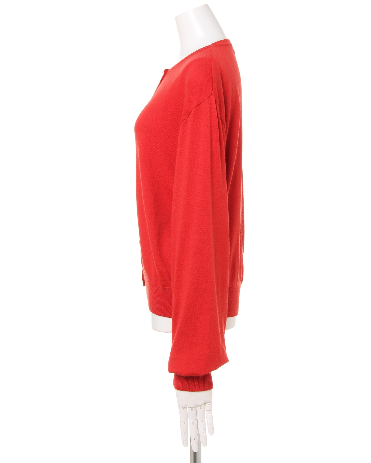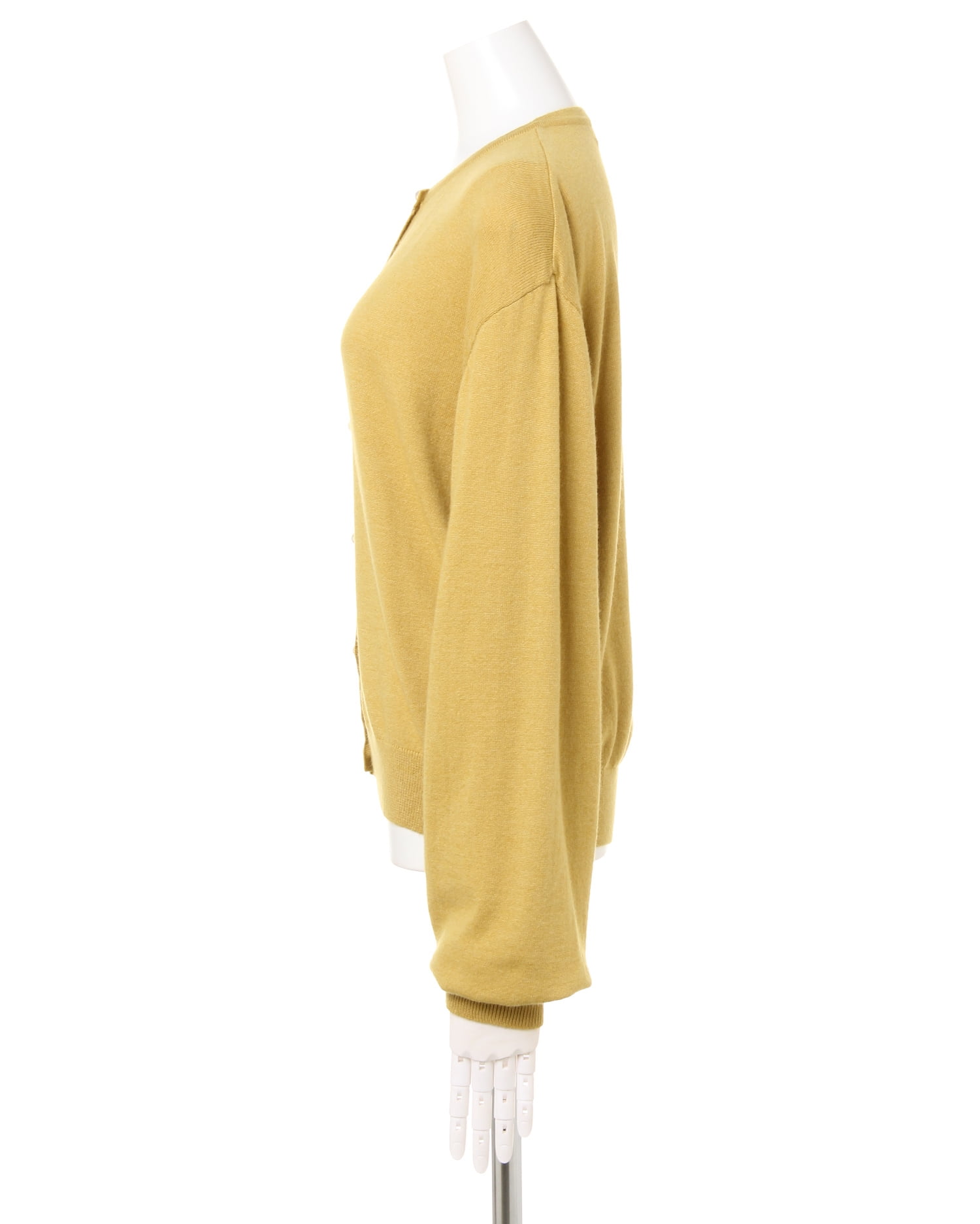 伸縮性の高い柔らかなカーディガンは優しい肌触りが心地良い1枚。ワンカラーデザインで合わせやすく、デイリー使いに重宝します。ドロップショルダーとボリューム袖が今年らしいデザイン。袖口と裾を細いリブ仕様にしたことで、メリハリのある着こなしに。パール調のボタンがアクセントになっています。前を閉めてシンプルに着こなすのはもちろん、羽織にも◎。