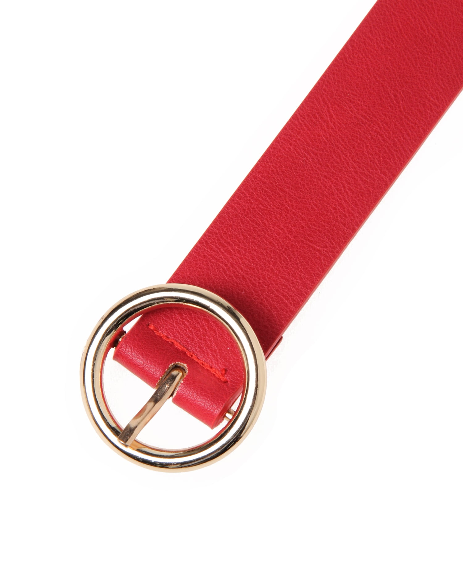 使い勝手が良いシンプルなフォルムのベルトはリングバックルが女性らしい印象。程よい太さとしなやかな素材で着け心地抜群。ゴールドのバックルがクラス感をプラスします。パンツに合わせるのはもちろん、ワンピースやシャツに合わせれば印象の変わるスタイルが楽しめます。ベーシックなカラーからコーディネイトのアクセントになるものまで、1本あると重宝するのでワードローブに揃えておくと便利です。