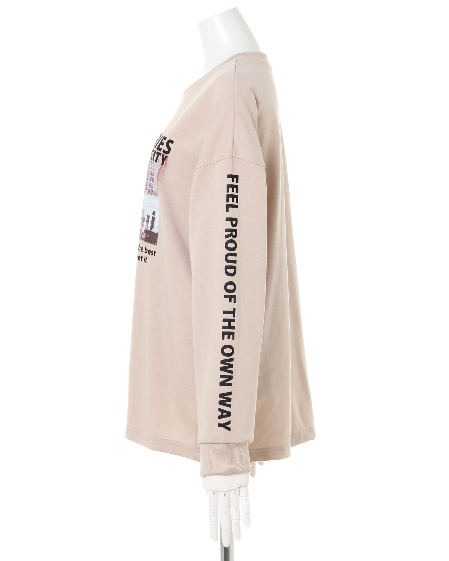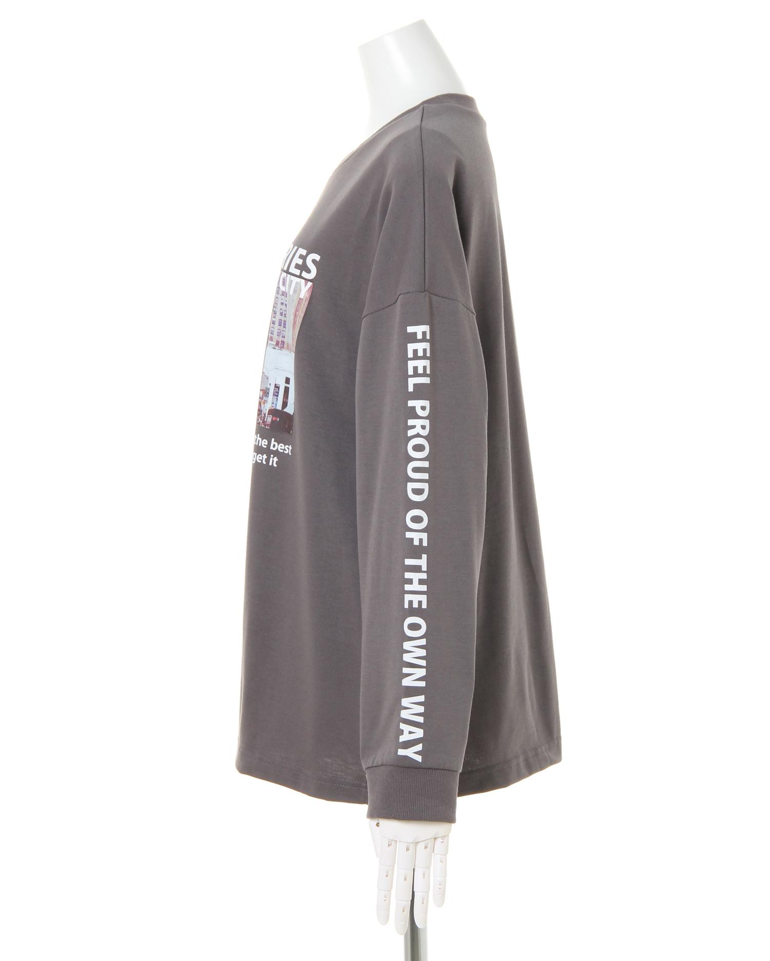 存在感のあるフォトプリント&袖ロゴがエッジの効いたクールなスタイルに導いてくれるロングTシャツ。胸元のアーバンなフォトプリントがトレンドライクなアイテム。クールなフォルムでありながらも、ドロップショルダーやラフなシルエットで華奢見せを叶えます。長めのヘムラインは、ボディラインをカバーできるのも◎。程よい厚みでシーズン長くデイリーユースに活躍する、スタイリッシュな1着です。