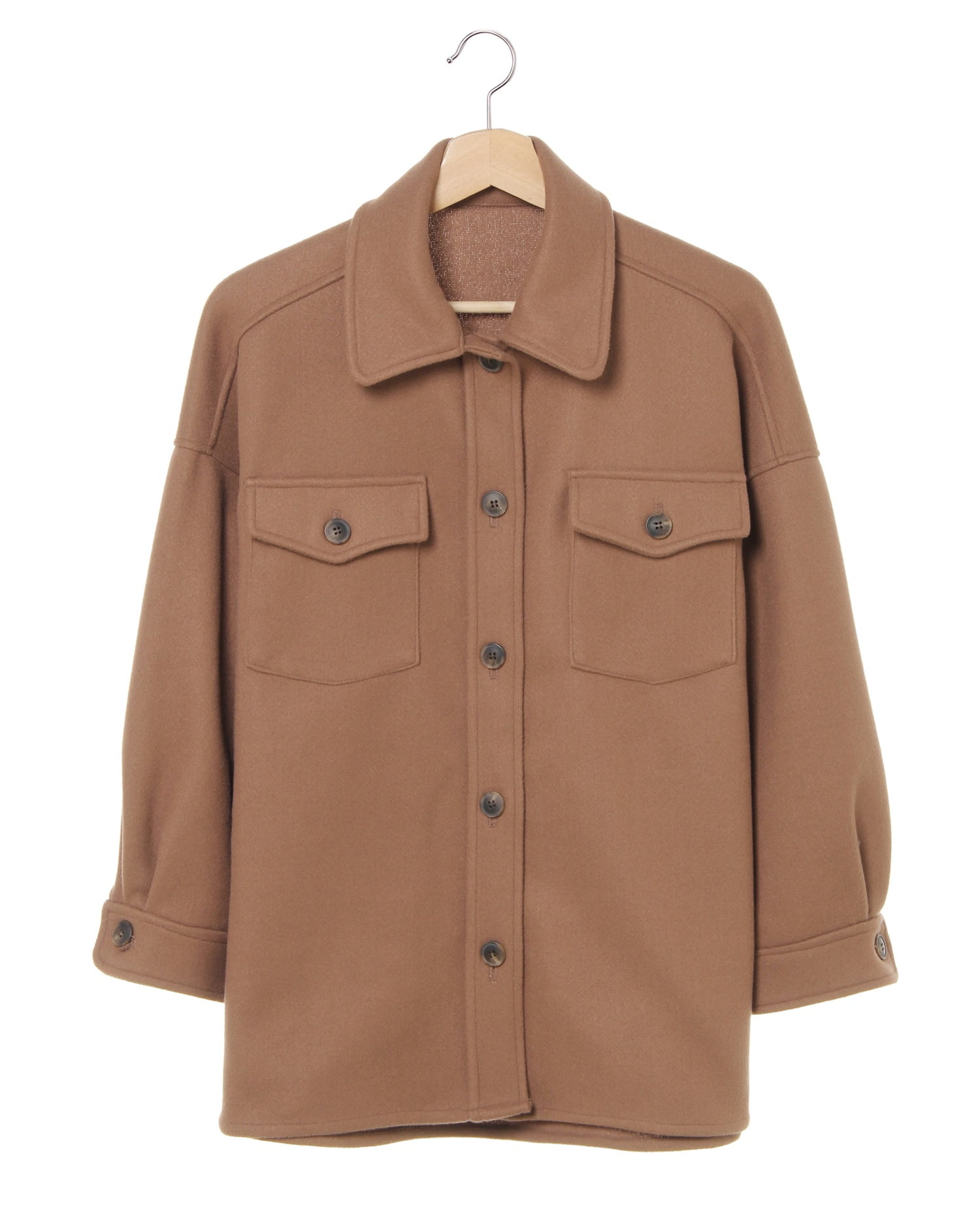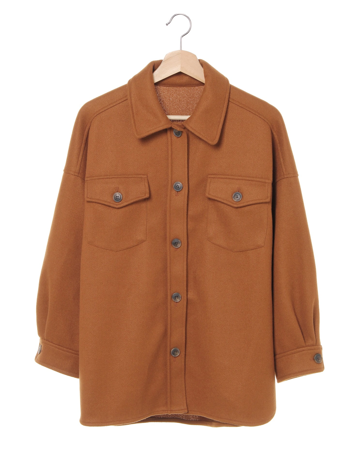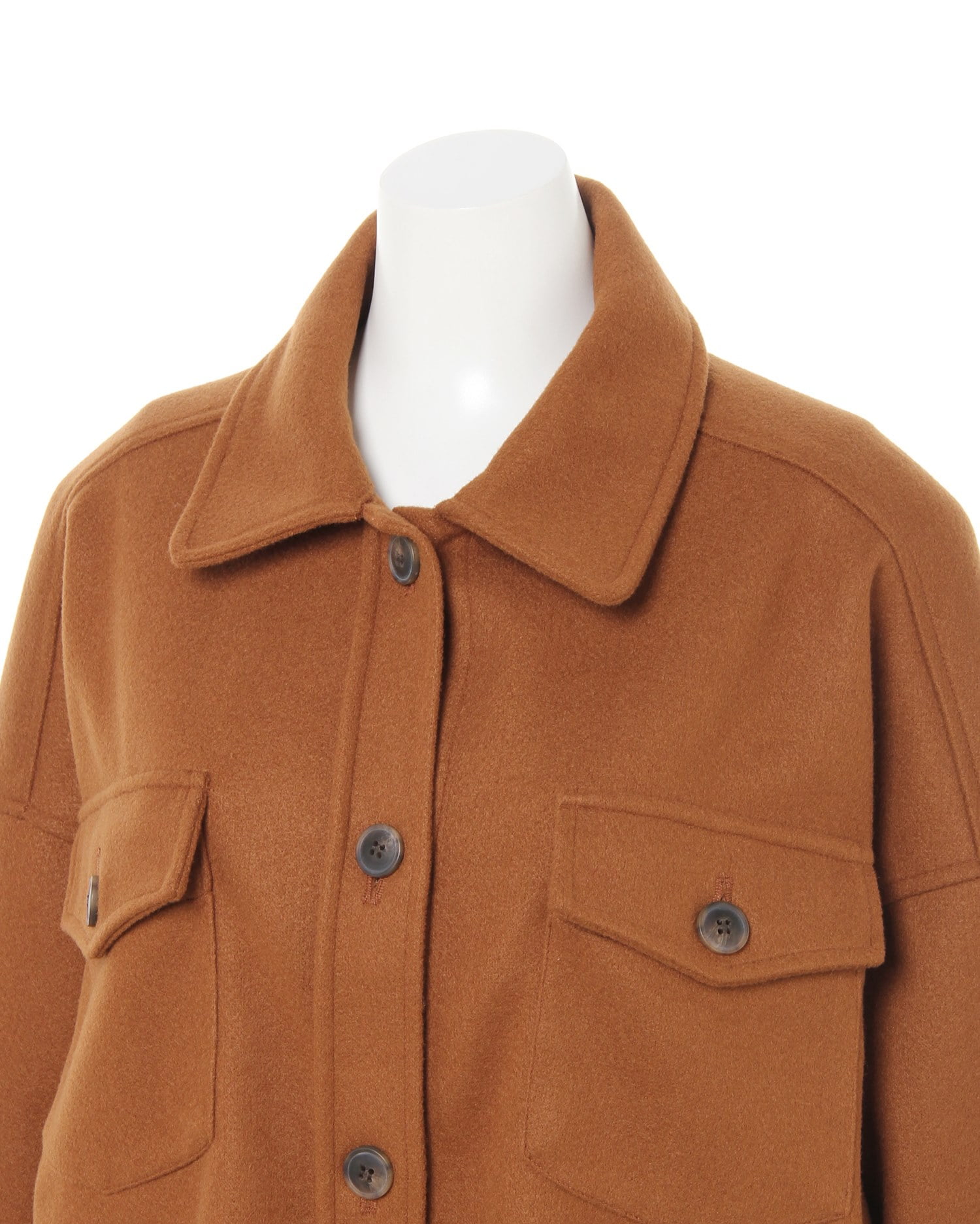ゆったりとしたシルエットが魅力的なアウター感覚で使えるシャツは着回せる幅が広くデイリーに重宝します。ワークシャツの様なシンプルなデザインがクールでこなれた印象に。起毛がかった暖かみのあるウールの様な素材が季節感たっぷりの着こなしを叶えます。程よい厚みでアウターとしてはもちろん、前を閉めてインナーを入れても◎。トレンドの大きめなサイズ感で華奢見せも狙える優秀な1枚は持っておくと便利です。