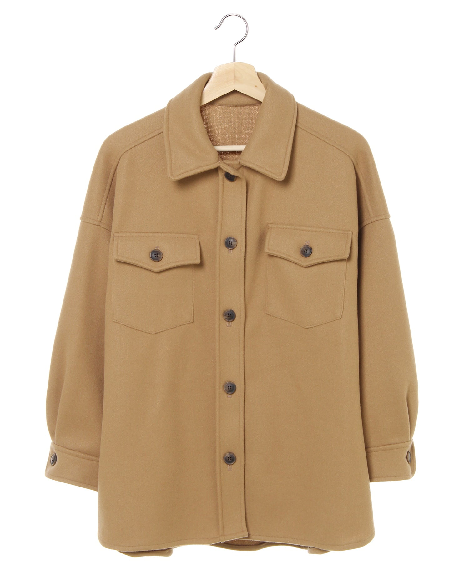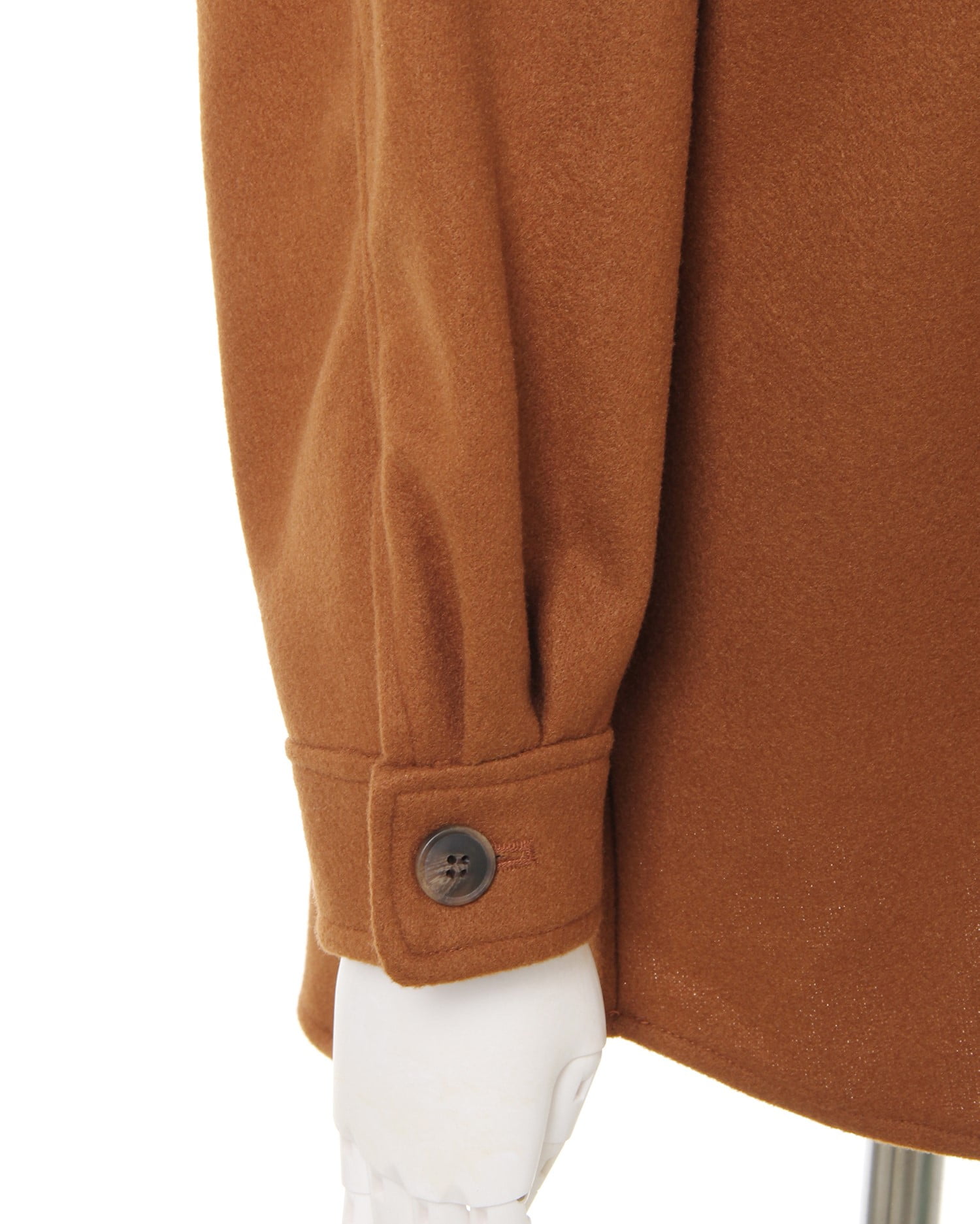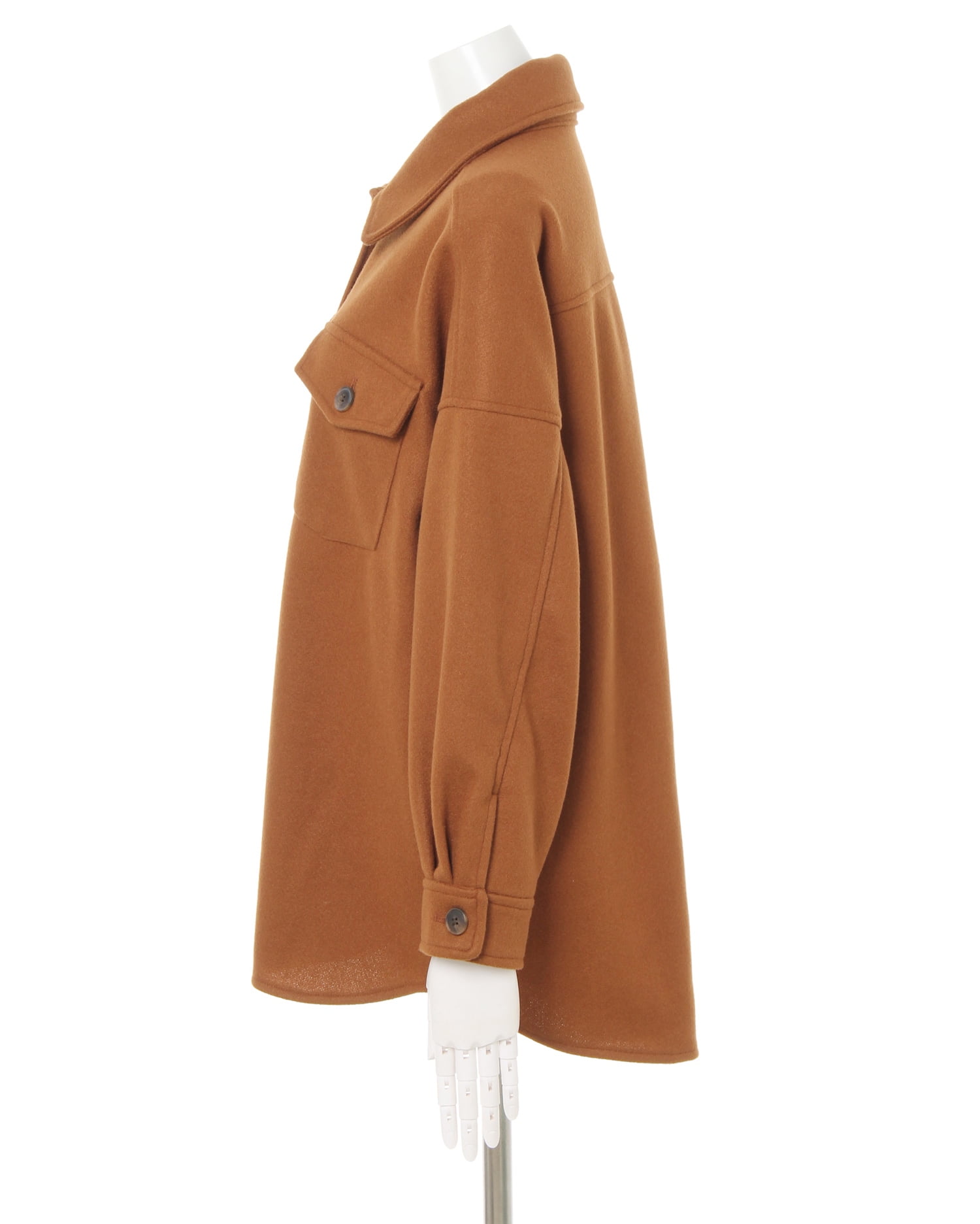 ゆったりとしたシルエットが魅力的なアウター感覚で使えるシャツは着回せる幅が広くデイリーに重宝します。ワークシャツの様なシンプルなデザインがクールでこなれた印象に。起毛がかった暖かみのあるウールの様な素材が季節感たっぷりの着こなしを叶えます。程よい厚みでアウターとしてはもちろん、前を閉めてインナーを入れても◎。トレンドの大きめなサイズ感で華奢見せも狙える優秀な1枚は持っておくと便利です。