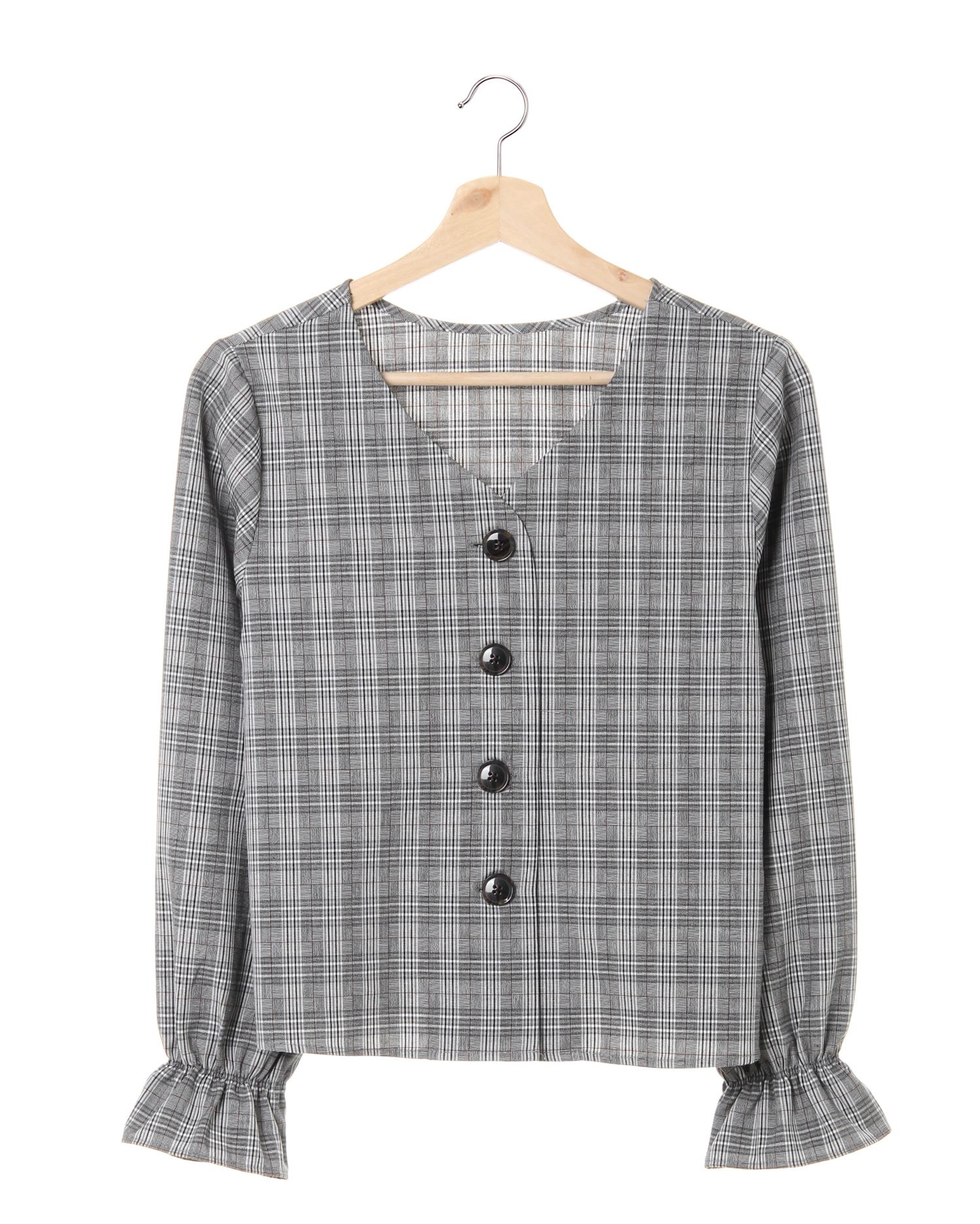すっきり開いたVネックとボリュームスリーブでバランスの取れた着こなしを叶えるブラウス。ゆったりとした身幅でボディラインを包み込みスタイルカバー効果も期待できます。シーズンムードをあおる落ち着いたチェック柄がコーディネイトを大人顔に◎。フロント部分のコロンとした大きめボタンがクラシカルな雰囲気をプラスします。ボタンを開ければサッと羽織れて着脱もスムーズ。
