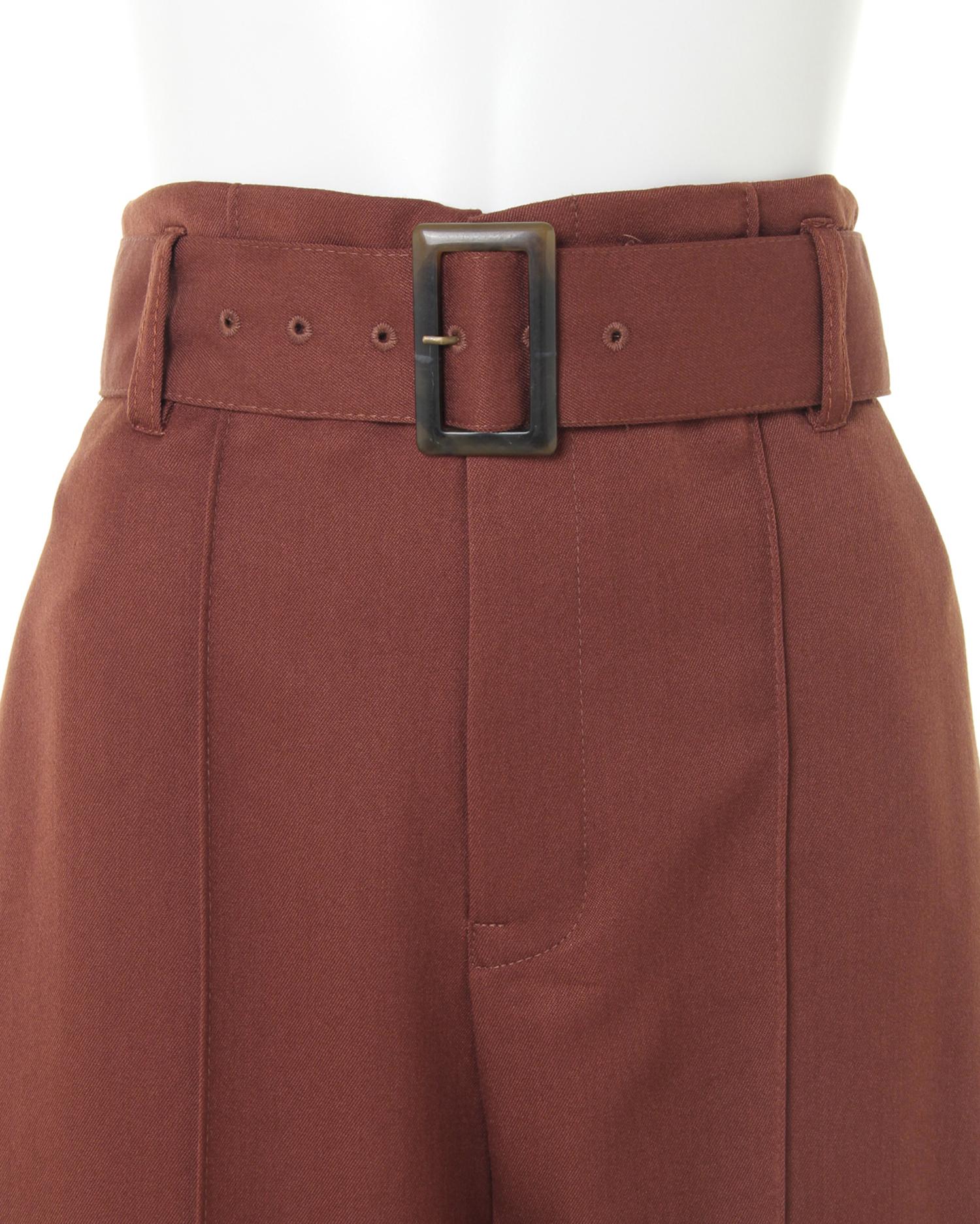 スタイルアップも着心地も欲張るこだわりシルエットのワイドパンツ。脚長効果を期待出来るハイウエストデザインとワイドなシルエットで普段使いはもちろんオフィスシーンにも活躍します。センターに切り替えを入れることですっきりとした印象に。ウエストマークに便利なベルト付きでトップスインもキマります。合わせやすいアースカラーを揃えました。