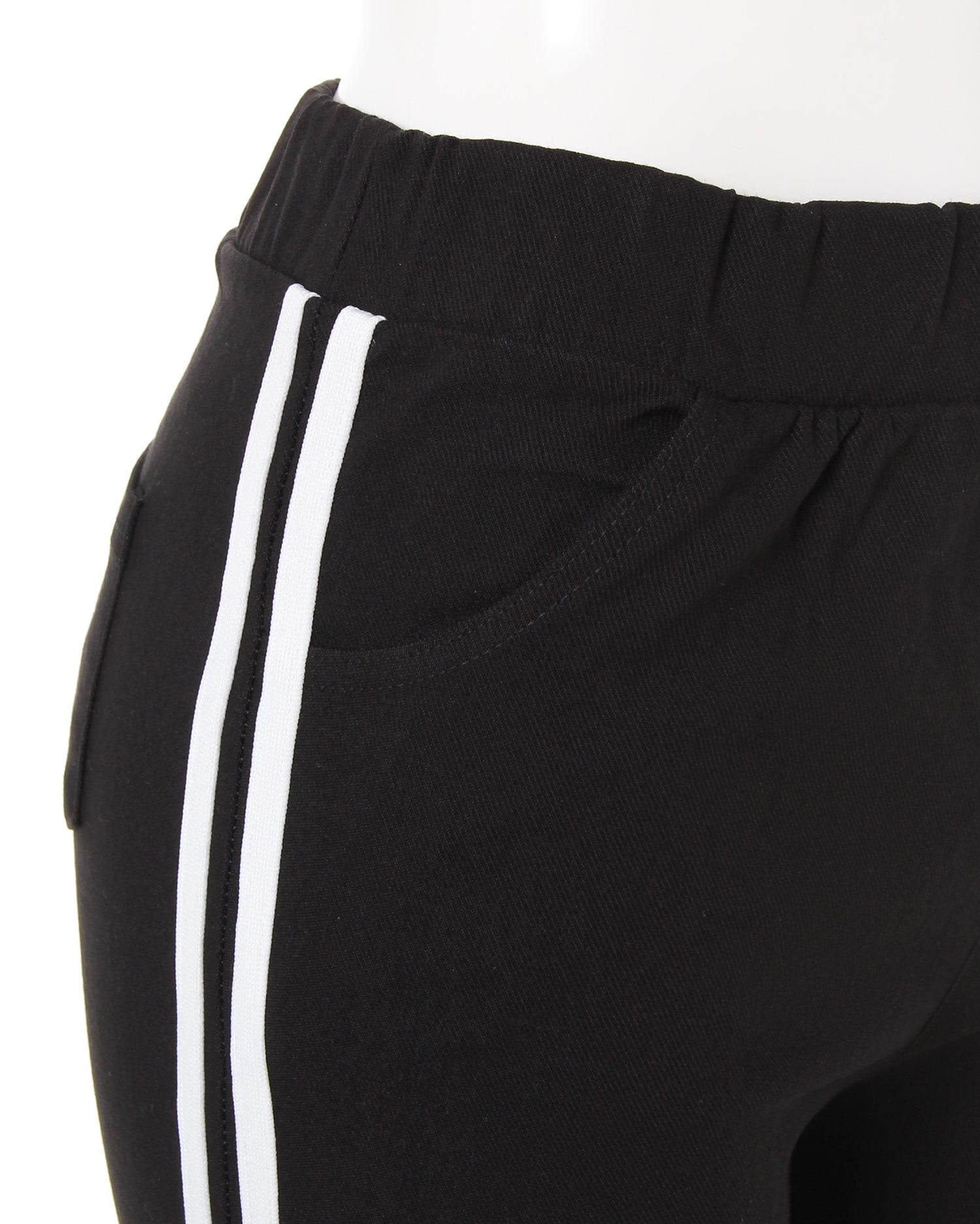 美脚効果も狙えるぴったりフィットで穿き心地抜群のレギンス。ストレッチ性の高い生地がアクティブな動きも補い快適に、普段使いに重宝します。サイドに入れたライン使いがコーディネイトのアクセント、今年らしい着こなしを演出。ウエストは総ゴムになっているので脱ぎ穿きもスムーズです。ショート丈のボトムスはもちろん、オーバーサイズのTシャツと合わせたスポーティスタイルも◎。便利なポケット付き。