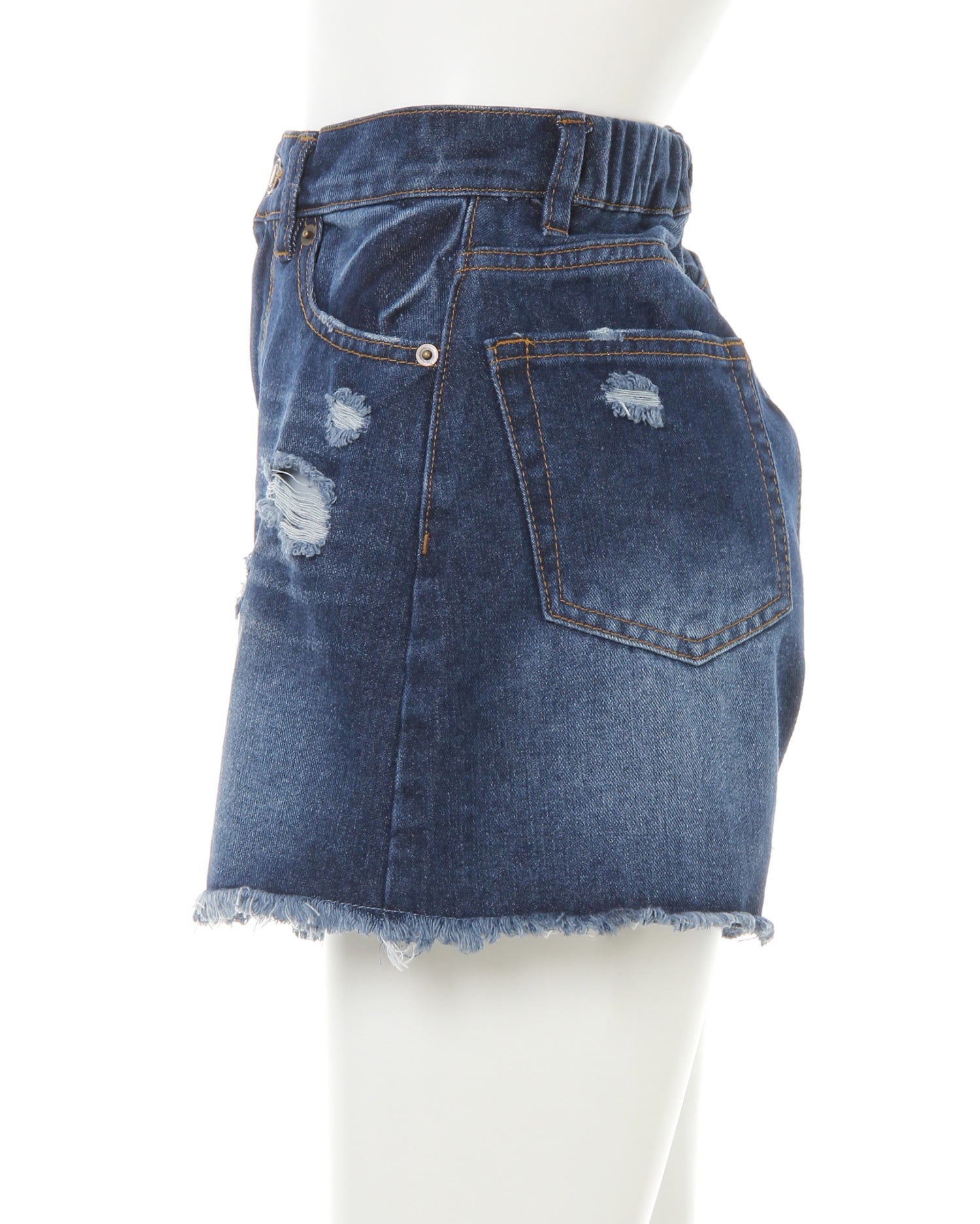 ハイウエストと台形シルエットでスタイルアップも期待できるショートデニムパンツ。流行に左右されない無駄のないシンプルデザインで1枚揃えておくと重宝します。デニムは裾のカットオフデザインとクラッシュ加工でナチュラルな要素をプラス。バック部分は高めの位置に入れた切り替えとポケットが、ヒップをコンパクトにすっきり見せてくれます。バックウエストはゴム入りなのでトップスインスタイルもサマに。