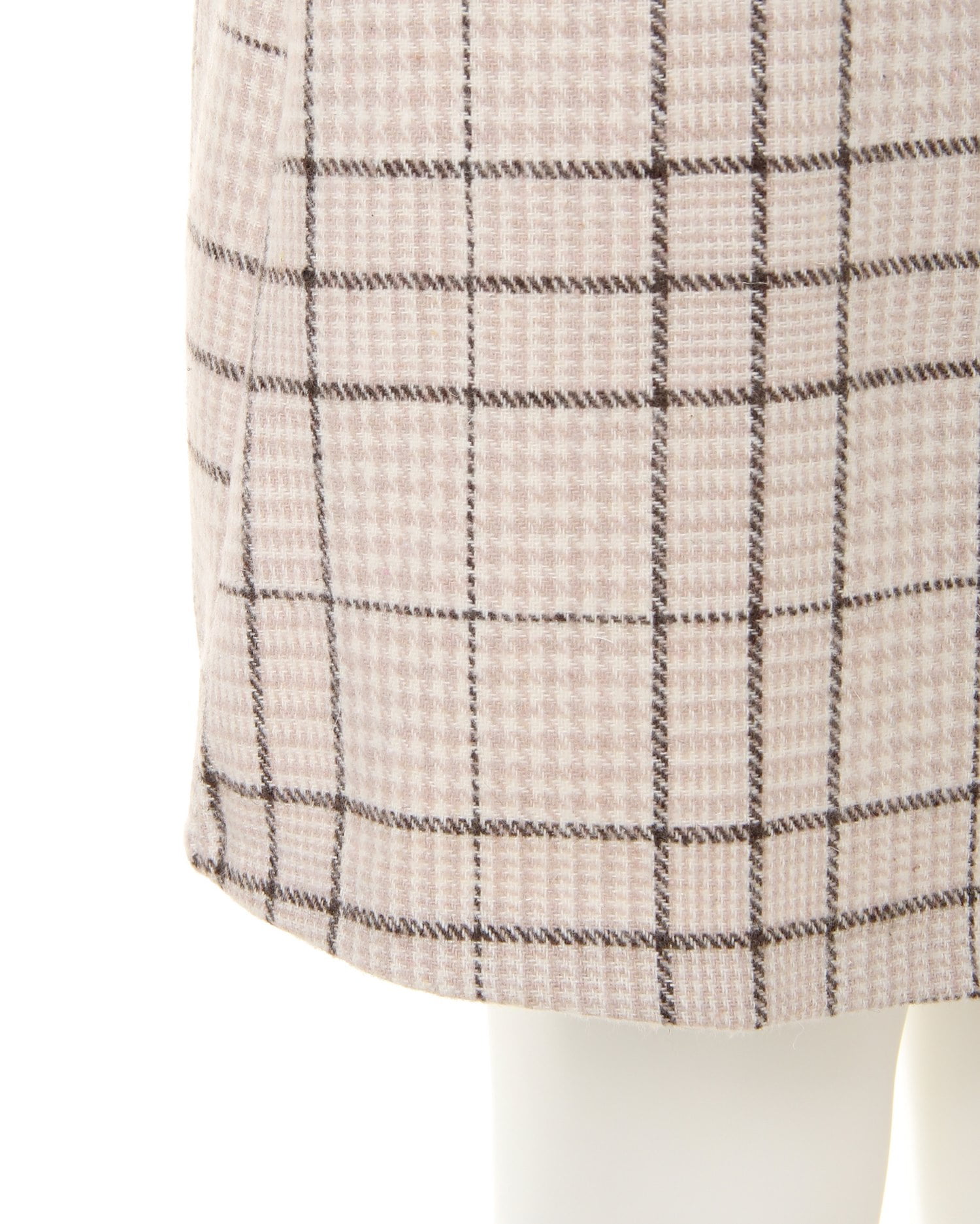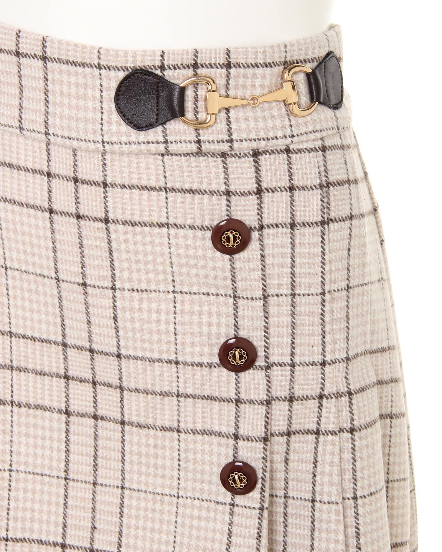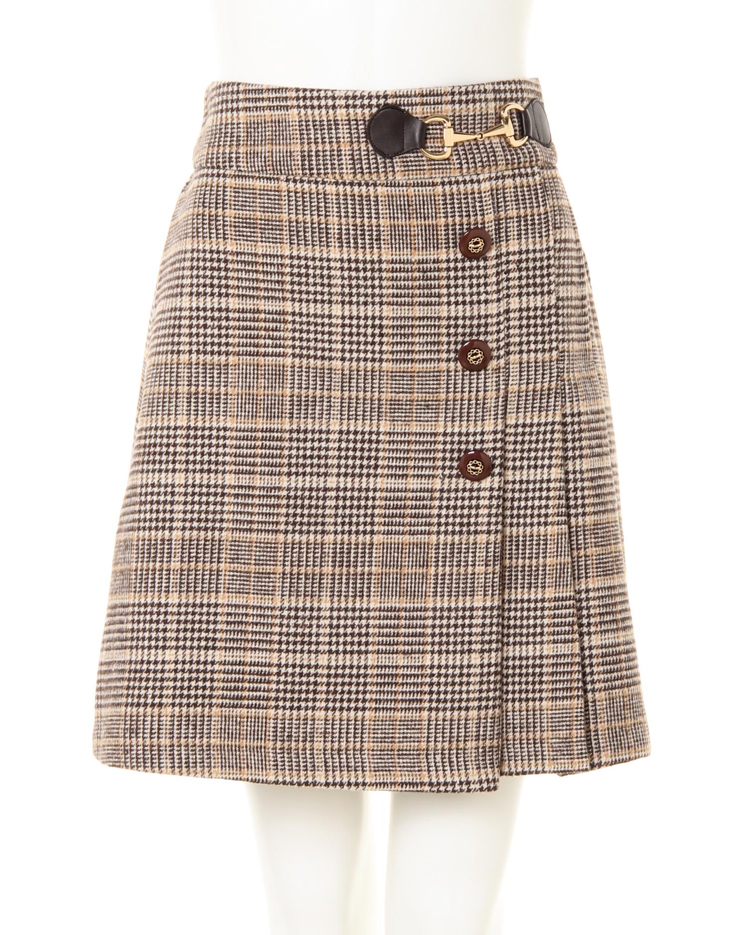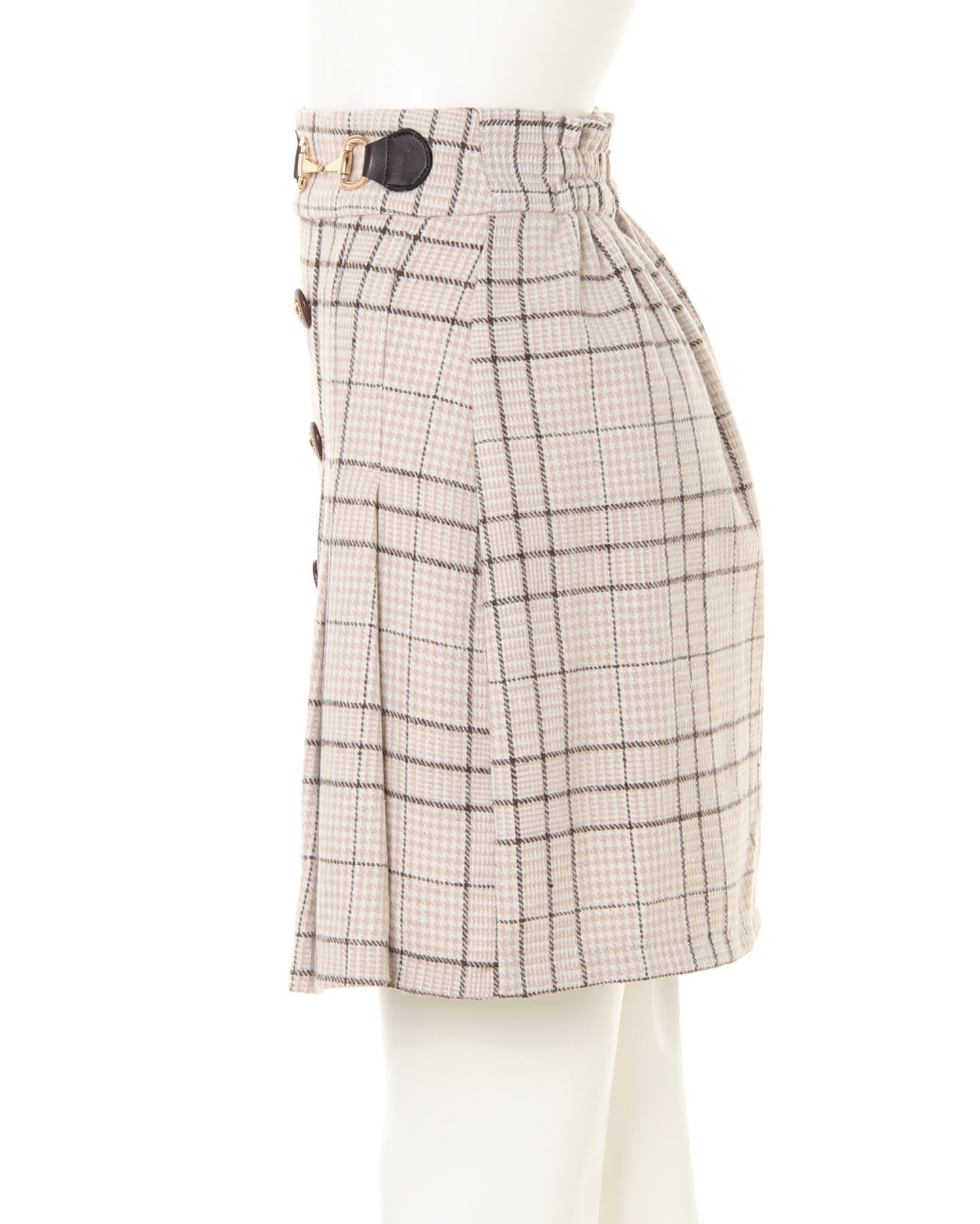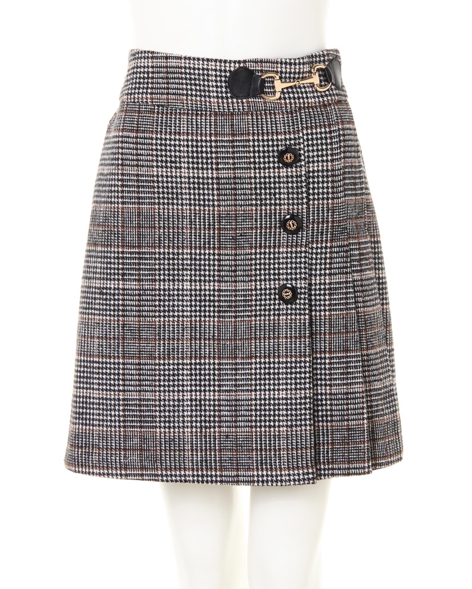マニッシュな印象のチェック柄スカートは使いやすい台形シルエットが魅力的。やや起毛した素材で季節感たっぷりの着こなしに仕上げてくれます。フロント部分のサイドにあしらったプリーツの切り替えやビットがトラッドなアクセント。デザイン性のある逸品は大人も着られるミニ丈で、レッグラインをほっそりと演出できる丈感なのも嬉しい。後ろ部分はファスナーとゴムになっているので脱ぎ穿きもスムーズです。