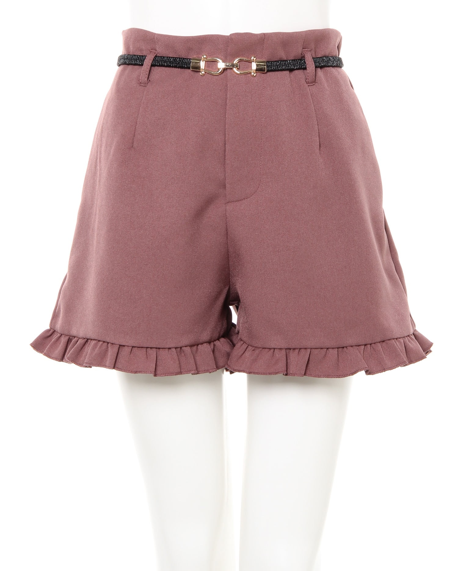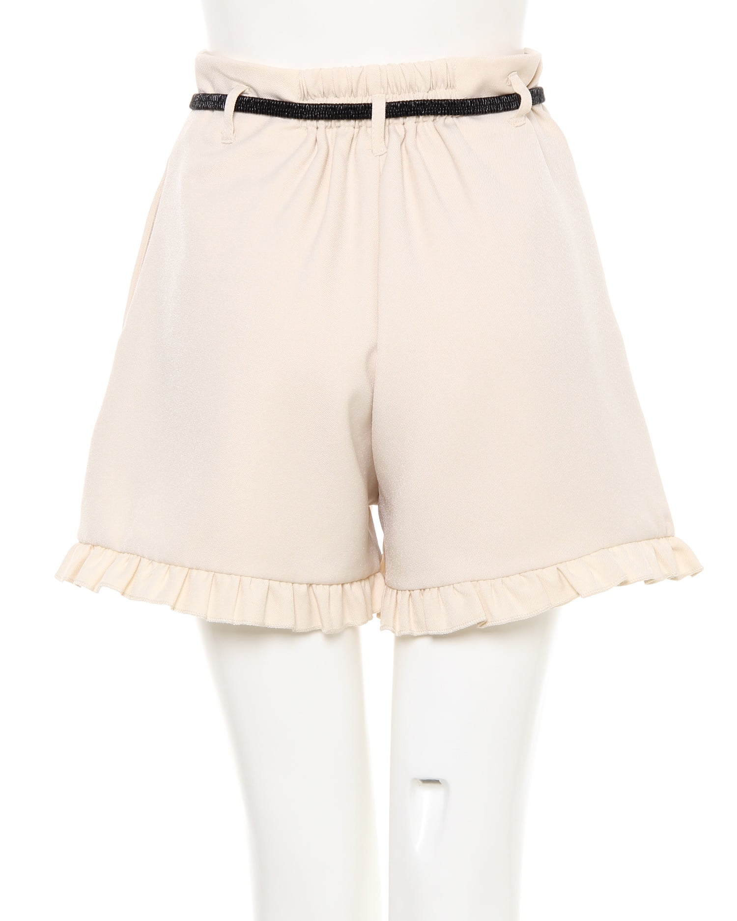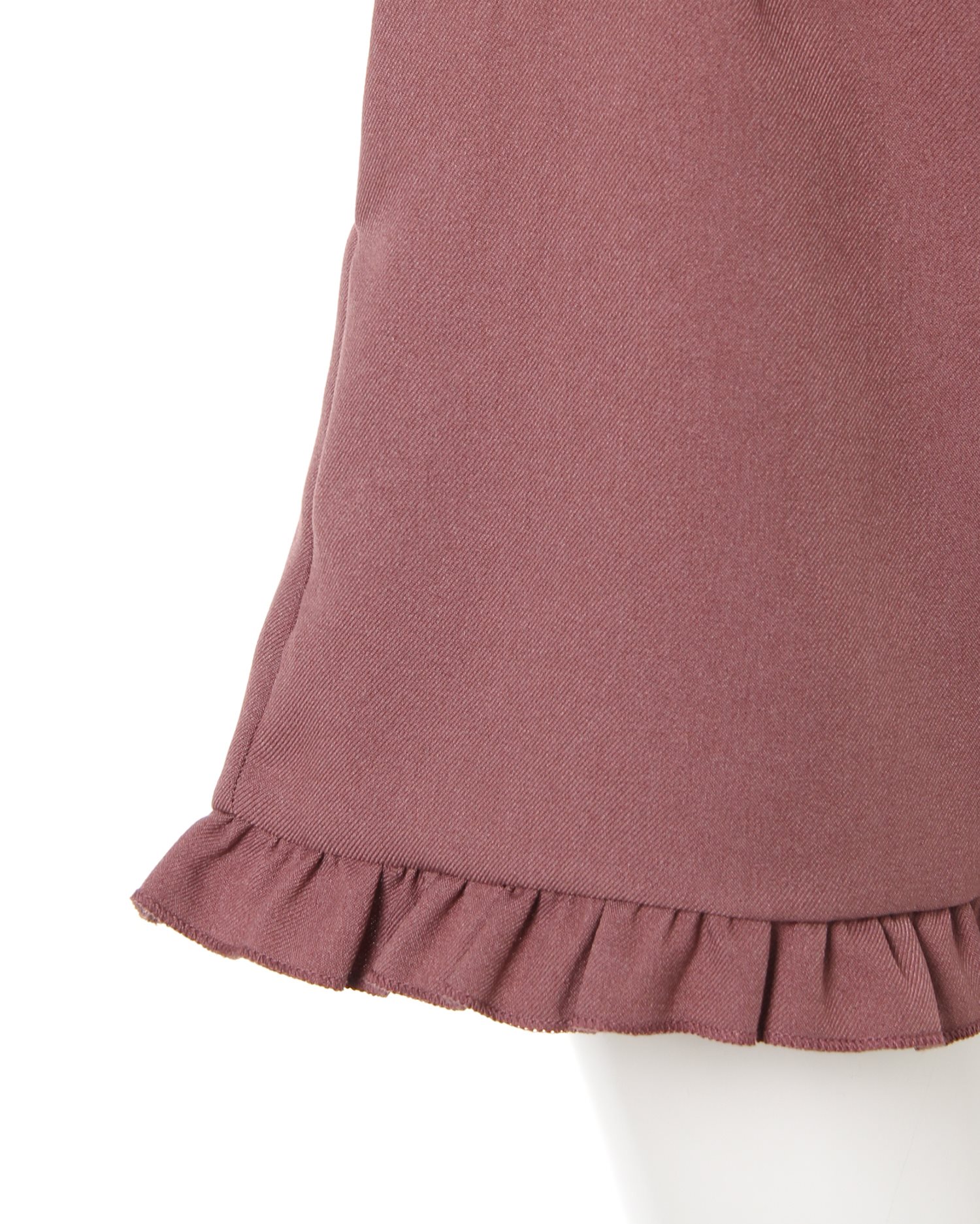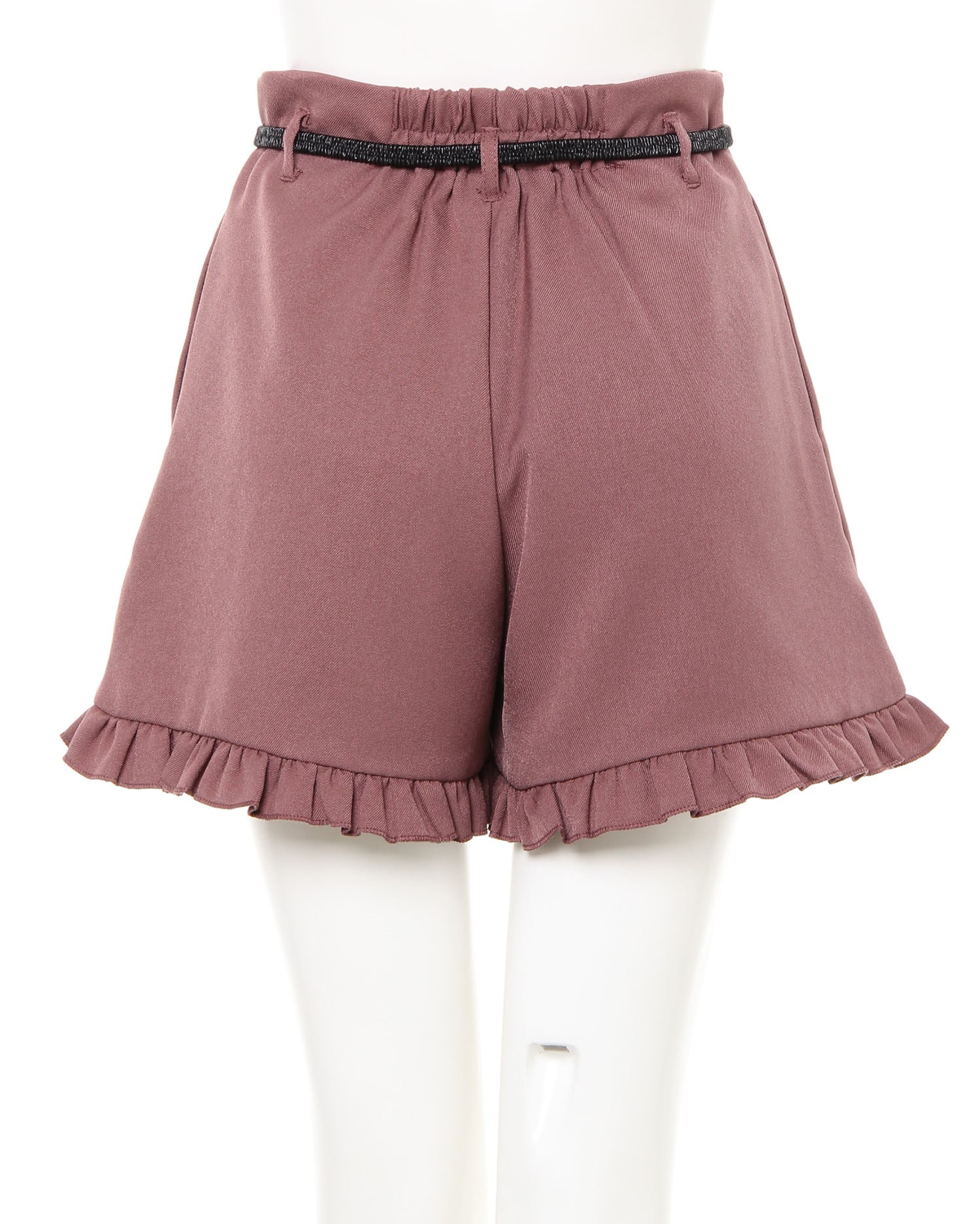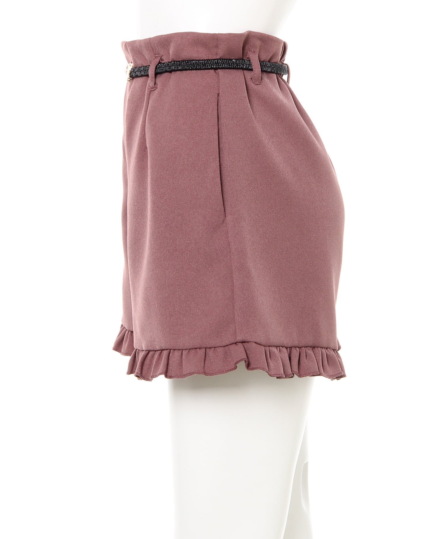 フェミニンなトップスと合わせてガーリーに着こなせるキュロットパンツ。広めの裾にあしらったフリルが表情豊かなアクセントになっています。裾に向かって広がるフレアシルエットがヒップラインをカバー、スタイルアップ効果も期待できる優秀デザイン。ウエストの後ろ部分はゴムを入れているので脱ぎ穿きも快適、デイリーに重宝します。メリハリのあるウエストを演出してくれるベルト付き。