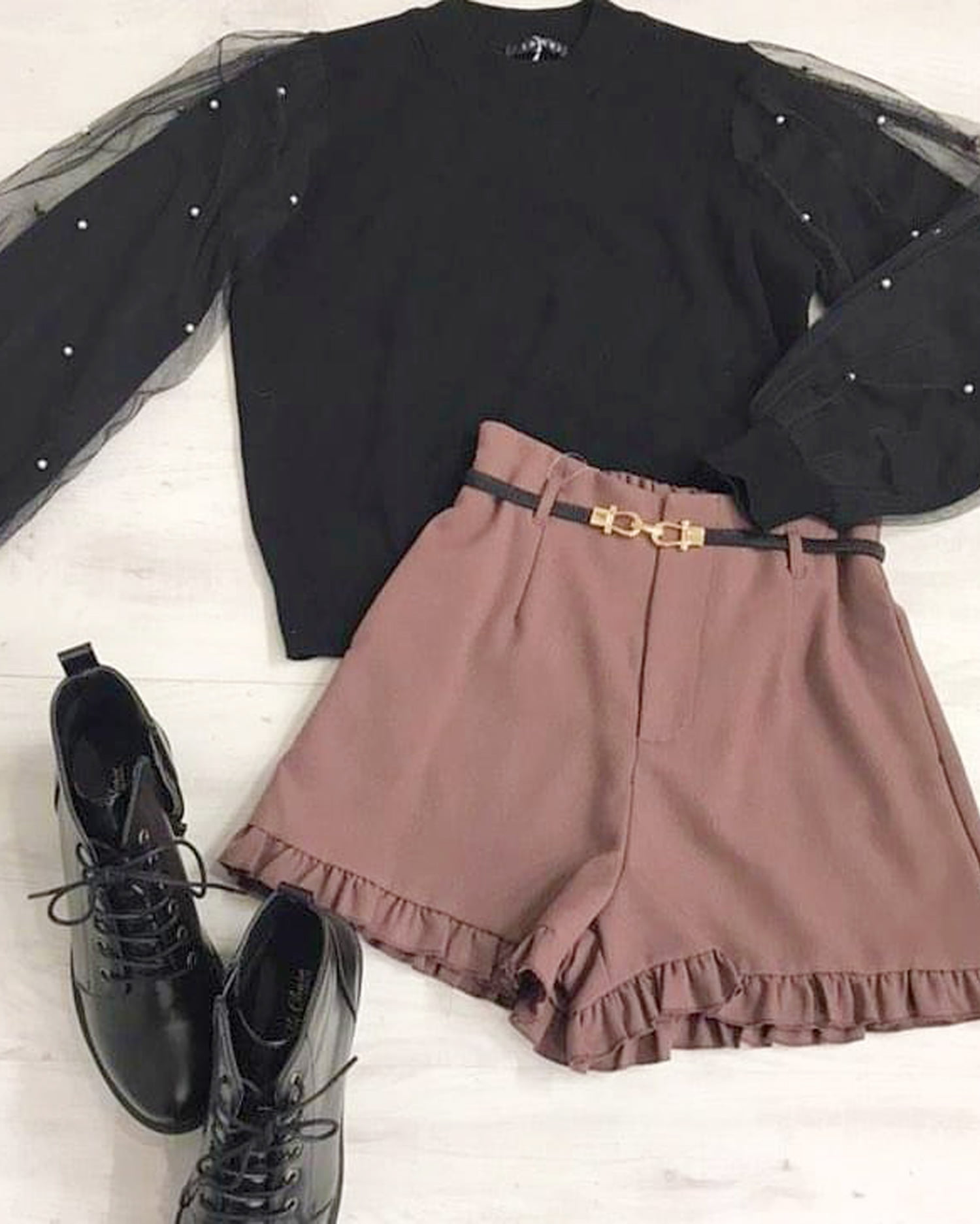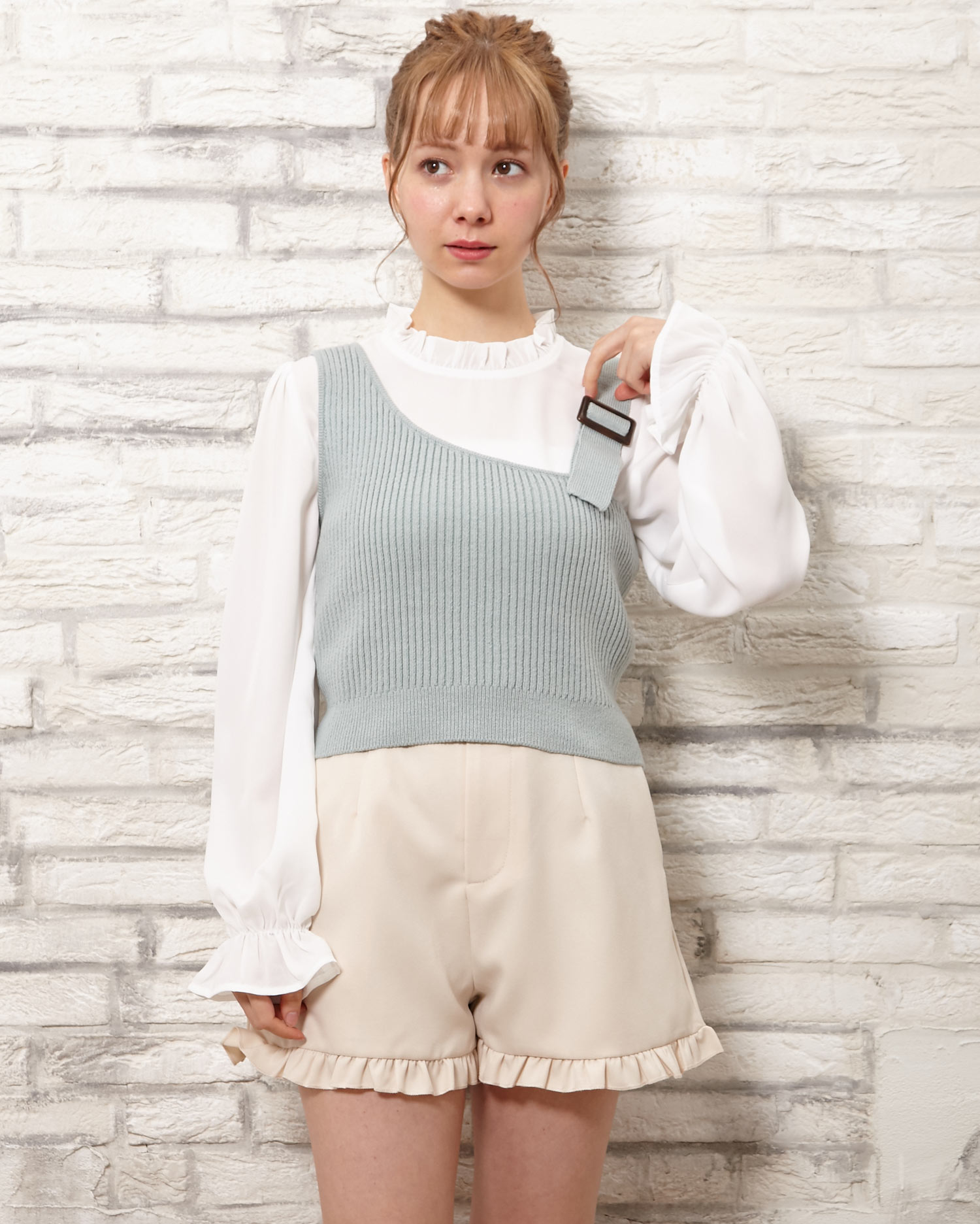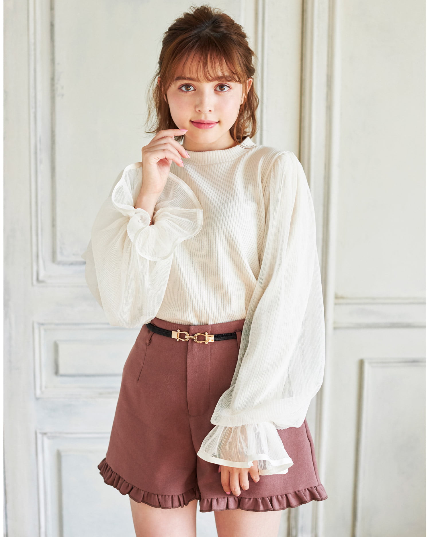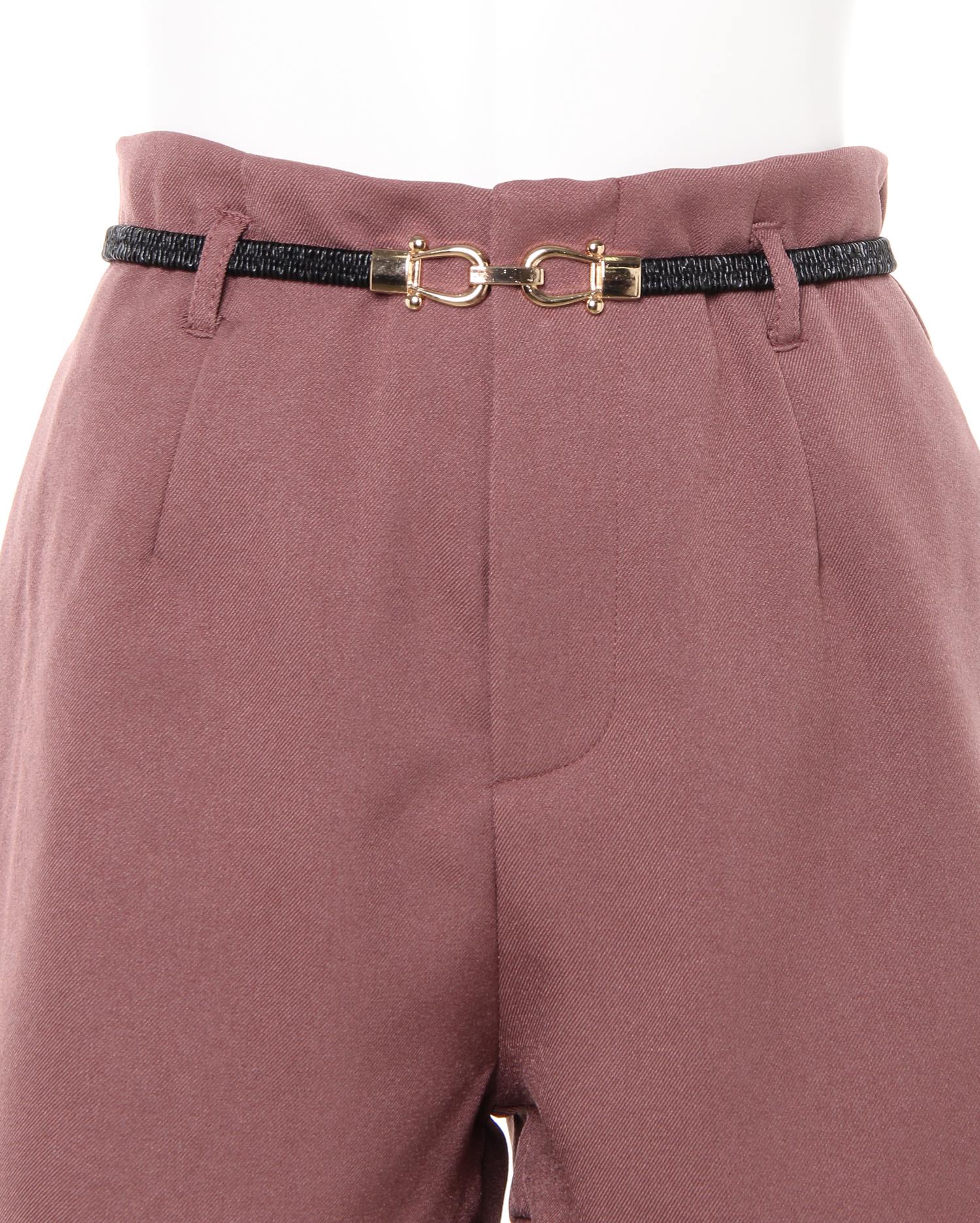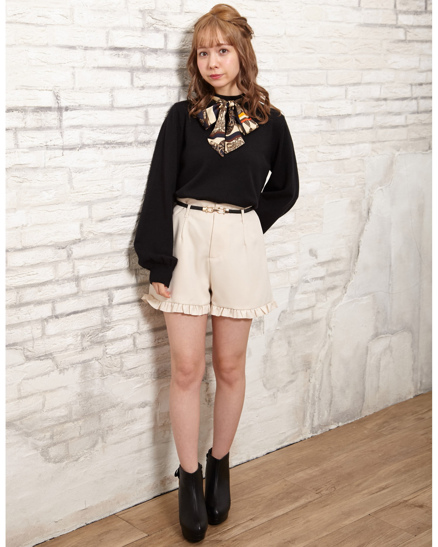 フェミニンなトップスと合わせてガーリーに着こなせるキュロットパンツ。広めの裾にあしらったフリルが表情豊かなアクセントになっています。裾に向かって広がるフレアシルエットがヒップラインをカバー、スタイルアップ効果も期待できる優秀デザイン。ウエストの後ろ部分はゴムを入れているので脱ぎ穿きも快適、デイリーに重宝します。メリハリのあるウエストを演出してくれるベルト付き。