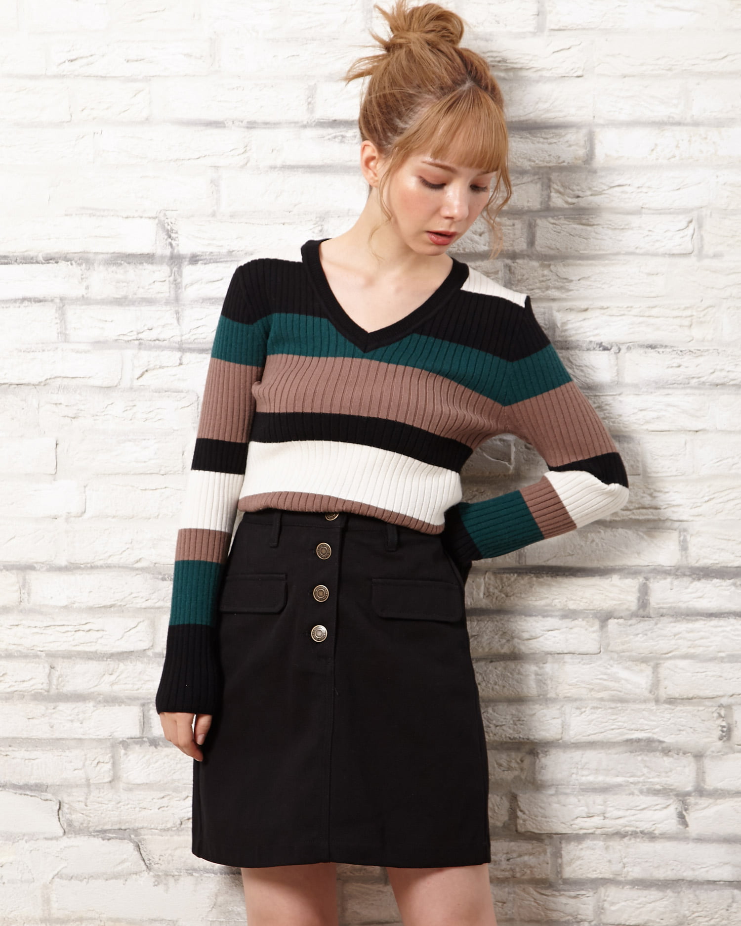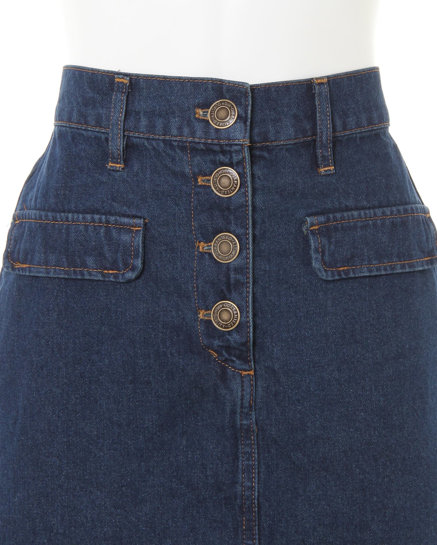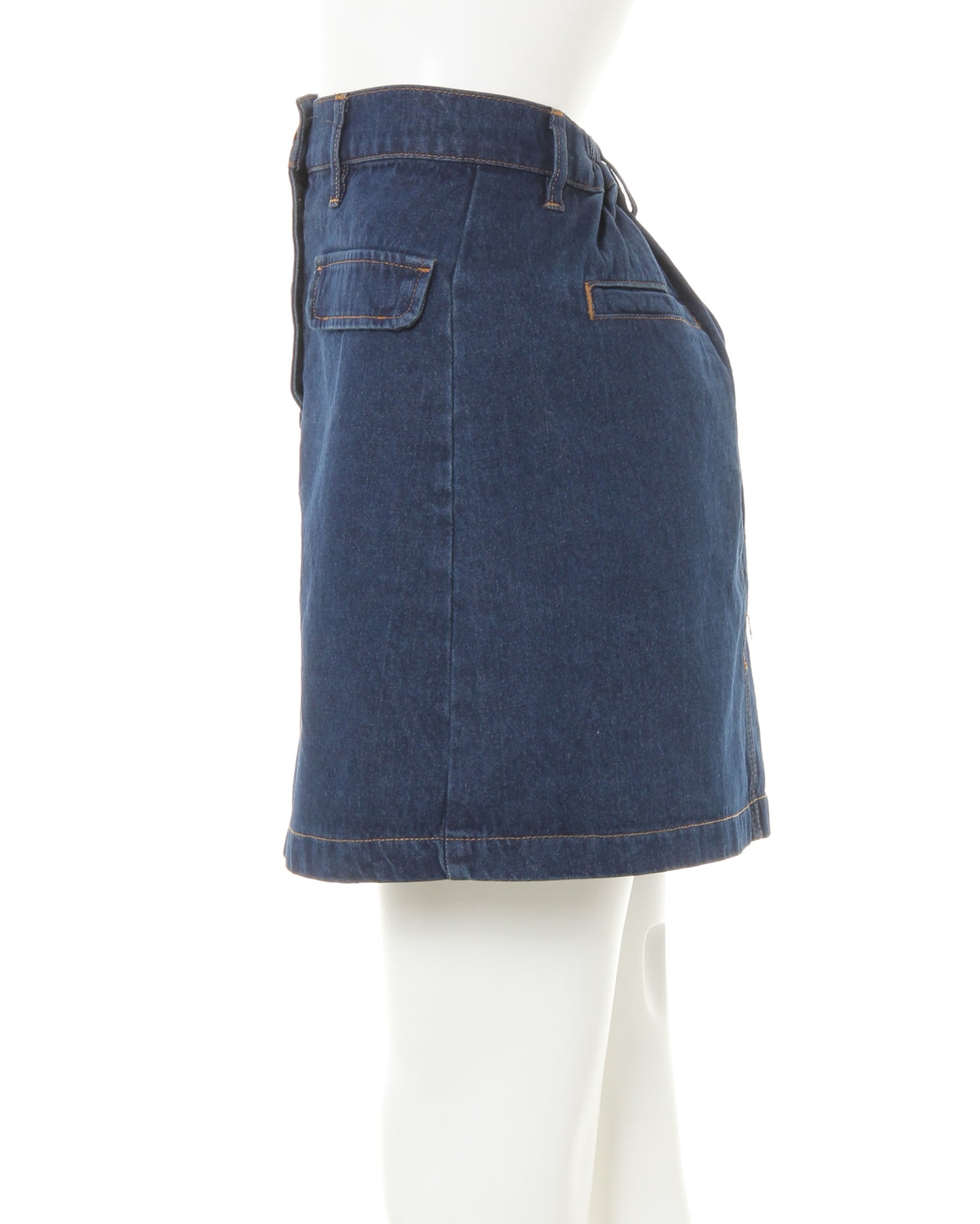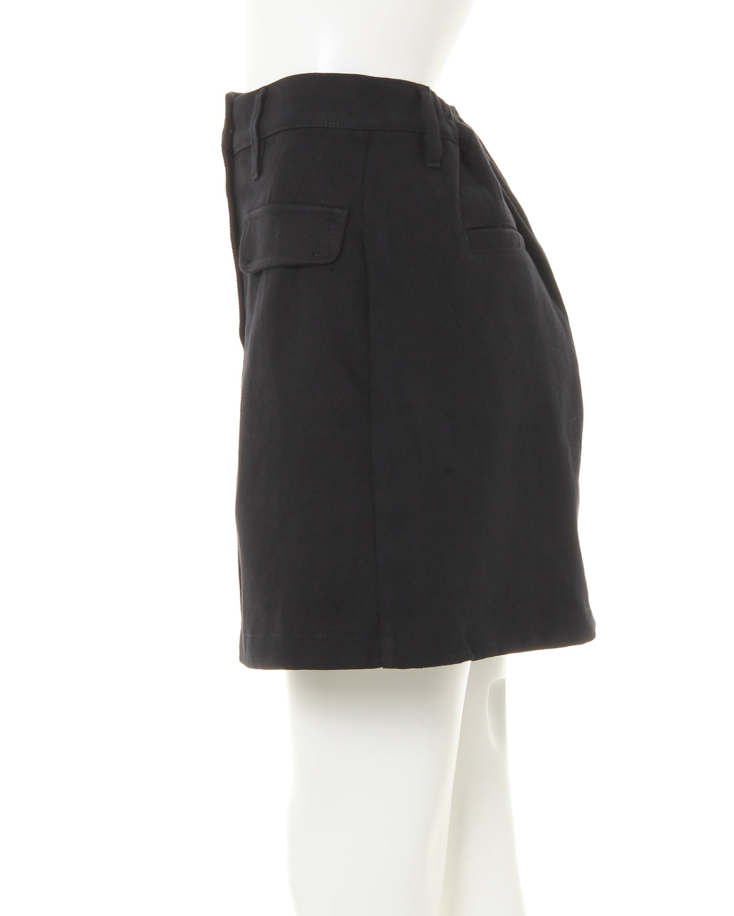 理想的なバランスでコーディネイトをまとめてくれる万能なスカートです。裾に向かって緩やかに広がる台形シルエットは穿くだけでスタイルアップ効果も狙える1枚。フロント部分はフラップのみのデザインでもたつかずすっきり着られるのもポイントです。後ろのウエスト部分はゴムになっているので穿き心地も快適。流行りに左右されずシーズンレスで使いまわせるのでワードローブに追加決定です。
