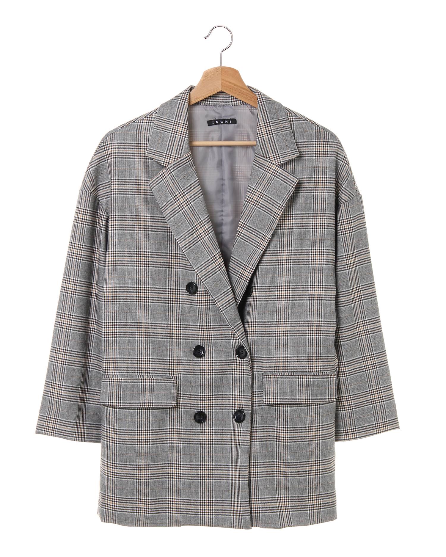トーンダウンしたチェック柄で洗練された雰囲気の着こなしが楽しめるジャケットです。ゆったりとしたシルエットでサッとラフに羽織りたい大人の1枚。肩を落としたビックシルエットで女性らしい華奢見せも狙えます。薄手の素材はスイッチ期のアウターとして重宝するので活躍する事間違いなし。ヒップを覆う丈感で気になる腰周りをカバーしてくれる優秀デザインも魅力。セットアップで合わせるのもオススメです。