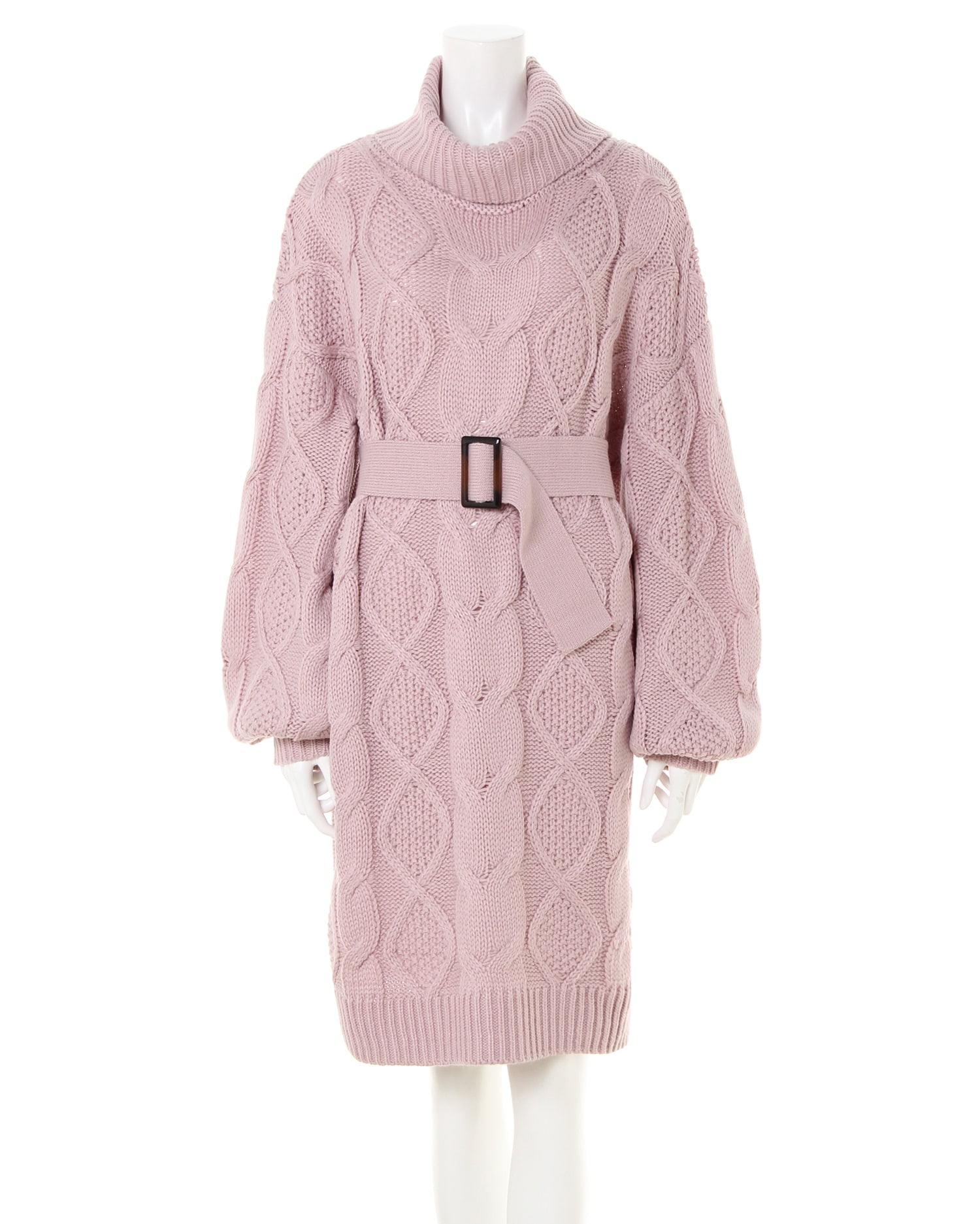 1枚でコーディネイトが決まる愛されニットワンピが登場。ざっくりとしたケーブル編みでナチュラル感たっぷりに着こなせます。ボリュームのあるざっくりニットも短め丈ですっきりと。首回りも暖かなオフタートルネックでトレンドもきちんと抑えた優秀デザインになっています。スクエアバックルのベルト付きなのでパンツを合わせてウエストマークしても◎。