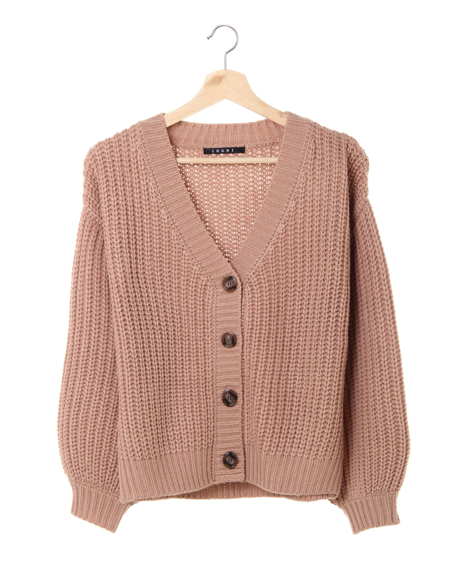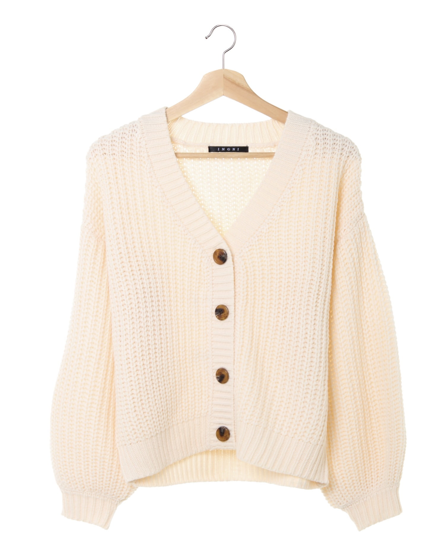 シンプルなショートカーディガンは使い勝手抜群なのでワードローブに揃えておくと便利。ざっくりとした編地とゆったりめの身頃でボリュームがありながらもコンパクトな丈感でバランスのいいスタイルに導きます。深めに開いたVネックはインナーもすっきり合わせられ普段使いに活躍。単色カラーにフロント部分のコロンとした大きなマーブルボタンがレトロなアクセントに。ボタンを開ければ羽織りとしても、今年はトップス風の着こなしが◎。