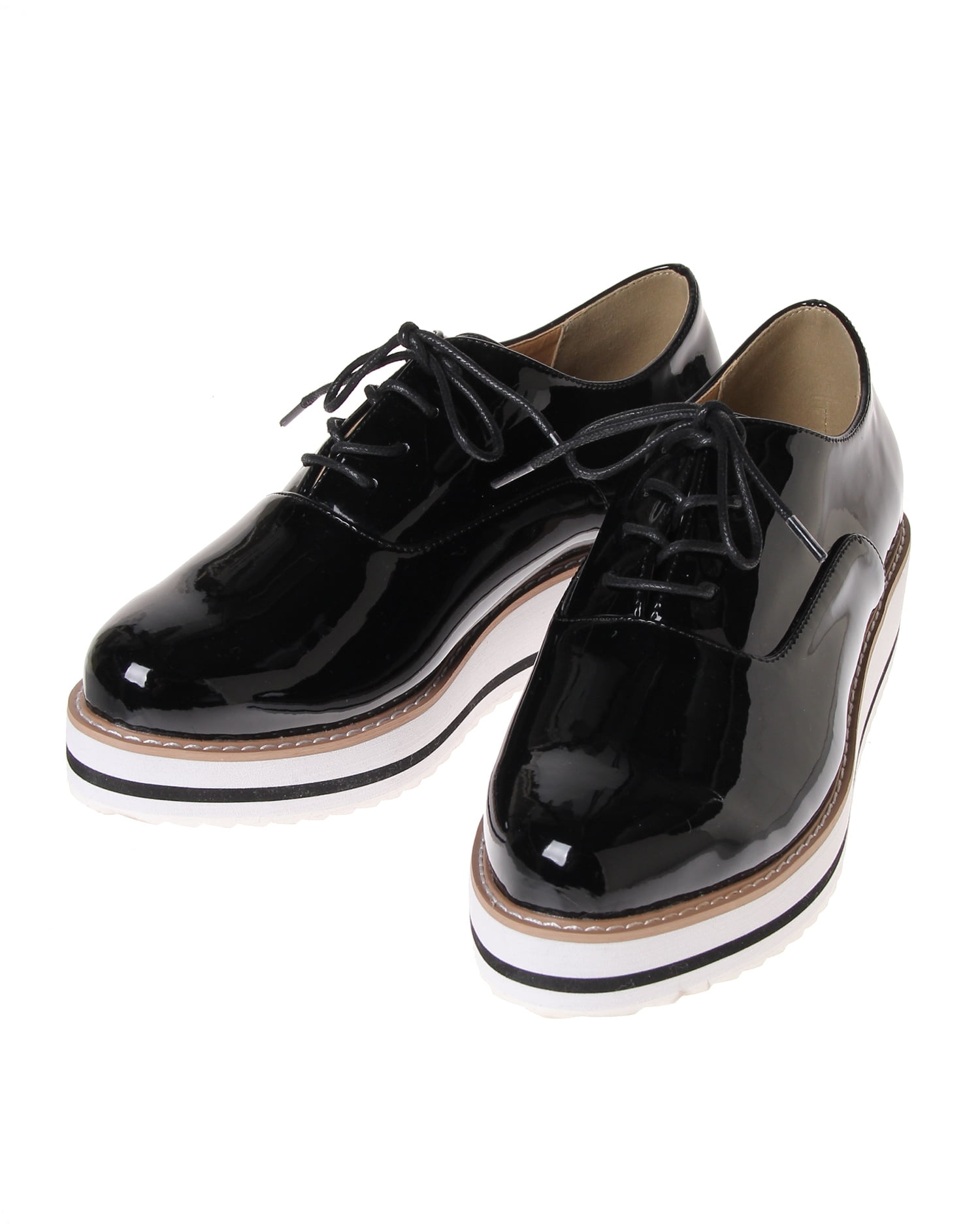マニッシュな雰囲気のドレスシューズはラバーソールとライン使いが今年らしいアクセント。光沢のあるエナメル素材でクラス感をプラスします。ベーシックカラーで合わせやすいので普段使いに活躍。インソールはクッション性もあるので長時間の歩行も疲れにくく快適な履き心地に。安定感のあるフラットソールも厚みがあるので、脚長効果も狙えます。パンツにはもちろんスカートスタイルにもオススメ。