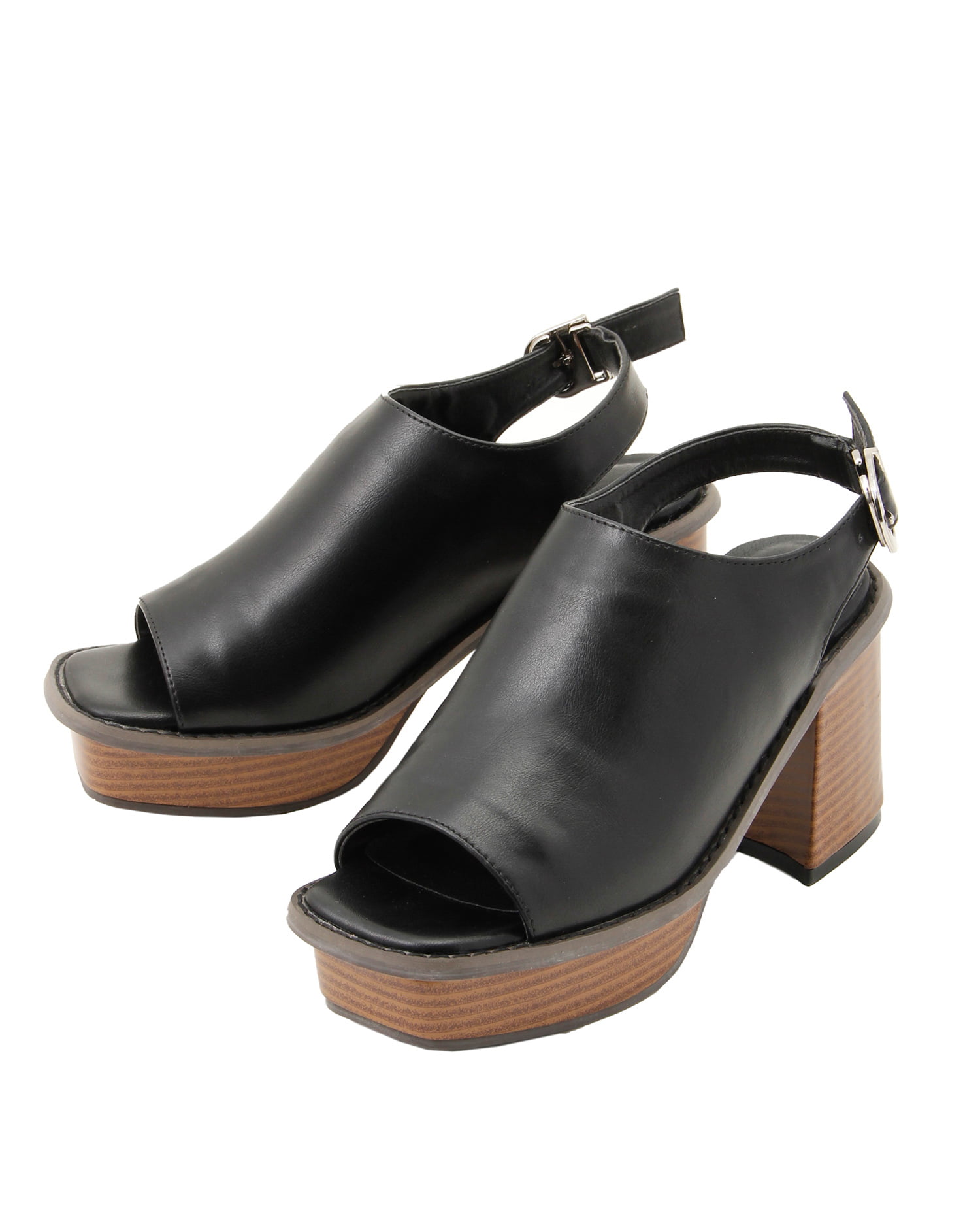 スタイリッシュなスクエアトゥとボリュームヒールの組み合わせが魅力のサンダル。高めのヒールも厚底デザインで傾斜が少なく、履きやすくなっています。しなやかなアッパーのフェイクレザーと太めのストラップでホールド感も◎。金具部分にはゴムをつけているのでサッと履けるのもポイントです。ベーシックで合わせやすいカラーがラインナップ。