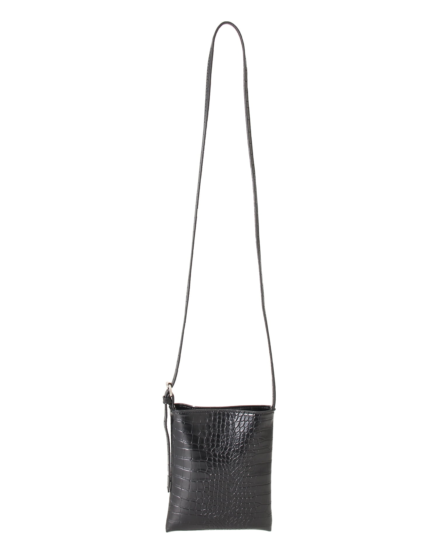 コンパクトなサイズと縦長のスクエアフォルムが旬のミニポシェット。しなやかで滑らかな素材にクロコ調型押しが大人っぽい雰囲気です。デイリーに持ちやすいデザインで、ちょっとしたお出かけはもちろんサブバックとしてもおススメ。旬の二つ折りの財布や携帯と持っていたい貴重品が入ります。開閉口はマグネット式で荷物の出し入れもスムーズです。シーズン問わず長く愛用できるのも魅力。