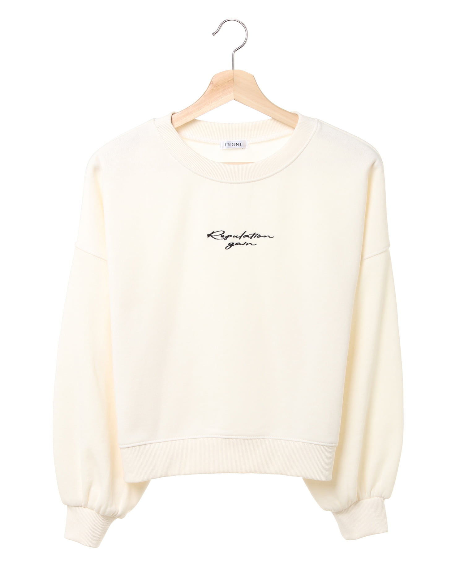 ベーシックシルエットで普段使いに重宝する裏起毛素材が暖かなプルオーバー。シンプルながらフロント部分の流れるようなレタード刺しゅうがトレンド感をプラス。柔らかなスウェット素材は肌触りも良くリラックスした着心地を叶えます。肩を落としたデザインとふんわりスリーブでガーリーな雰囲気に。コートのインナーにも便利な程よい厚みでこれからの季節に活躍します。