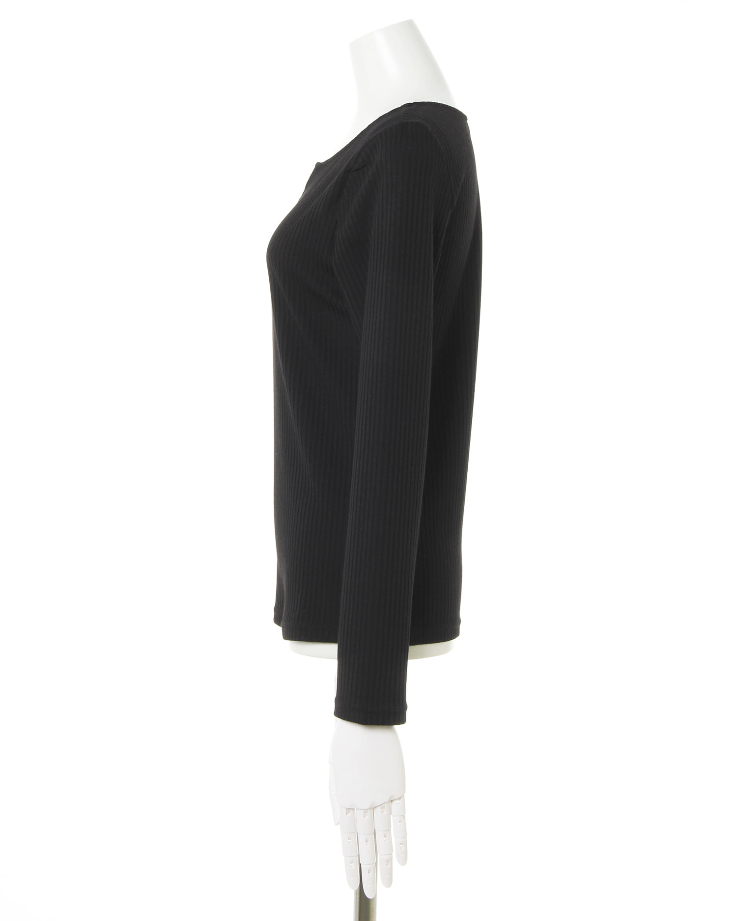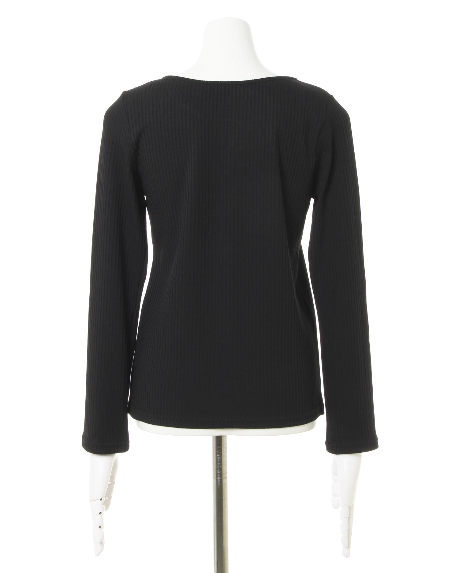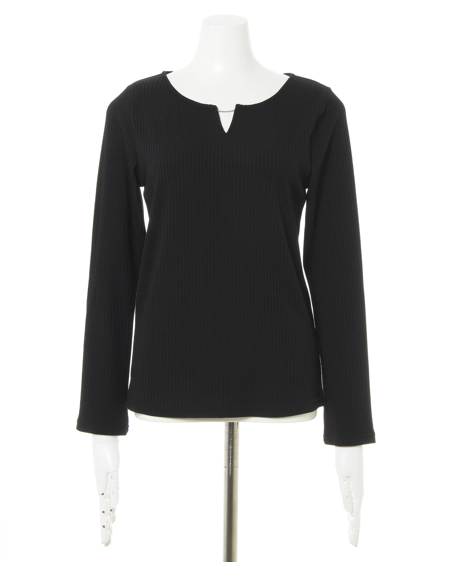 ネックラインにあしらったゴールドパーツが顔周りを明るく華やかに彩るリブトップス。シンプルなデザインでボトムスを選ばず合わせられるので普段使いはもちろん、オフィススタイルにもおすすめ。広めに開いたネックラインと細リブですっきりシルエットで着られます。程よい裾丈はトップスインスタイルも◎。ベーシックで合わせやすいカラーが揃っています。