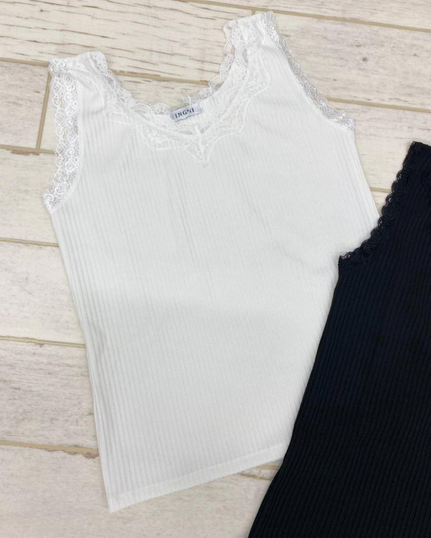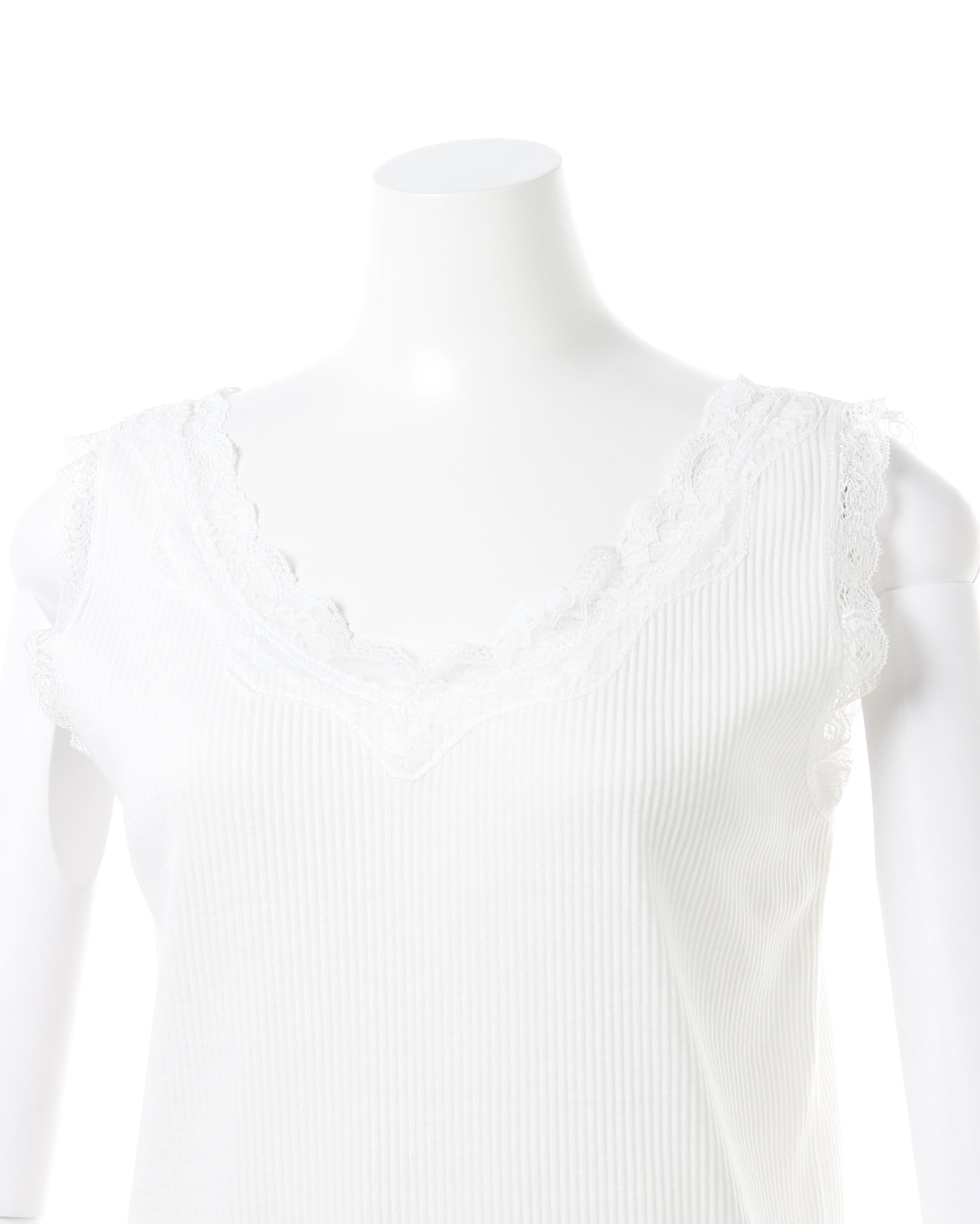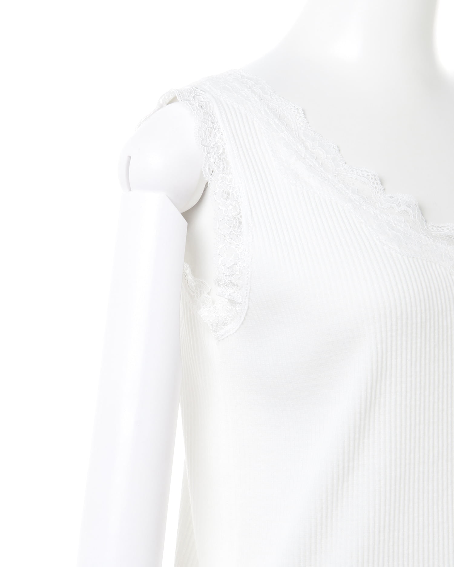 ショルダー部分の繊細なレースがレディな雰囲気のタンクトップ。細めのリブとやわらかな生地ががボディラインに沿いスタイルアップを実現します。深めに開いたVネックでヘルシーな肌見せが叶うのも◎。1枚ではもちろん、ジャケットやブルゾンのインナーとしても着回せるのでシーズン長く活躍します。ベーシックで合わせやすいカラーがラインナップ。