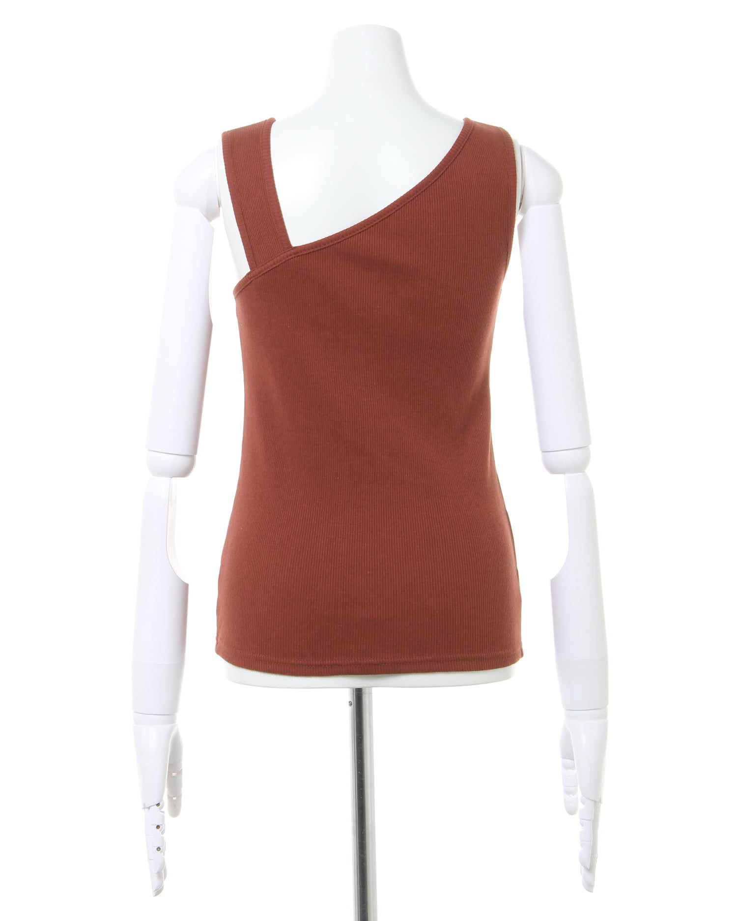 トレンド感たっぷりのワンショルデザインのリブトップス。スタイリッシュなデコルテラインとヘルシーな肌見せで季節感たっぷりに着こなせます。細めのリブがボディラインに沿い上半身をすっきりコンパクトに見せてくれるのも◎。伸縮性もあるので着心地は快適です。1枚で着るのはもちろん、インナーとしても着回せるのでシーズンレスで活躍します。