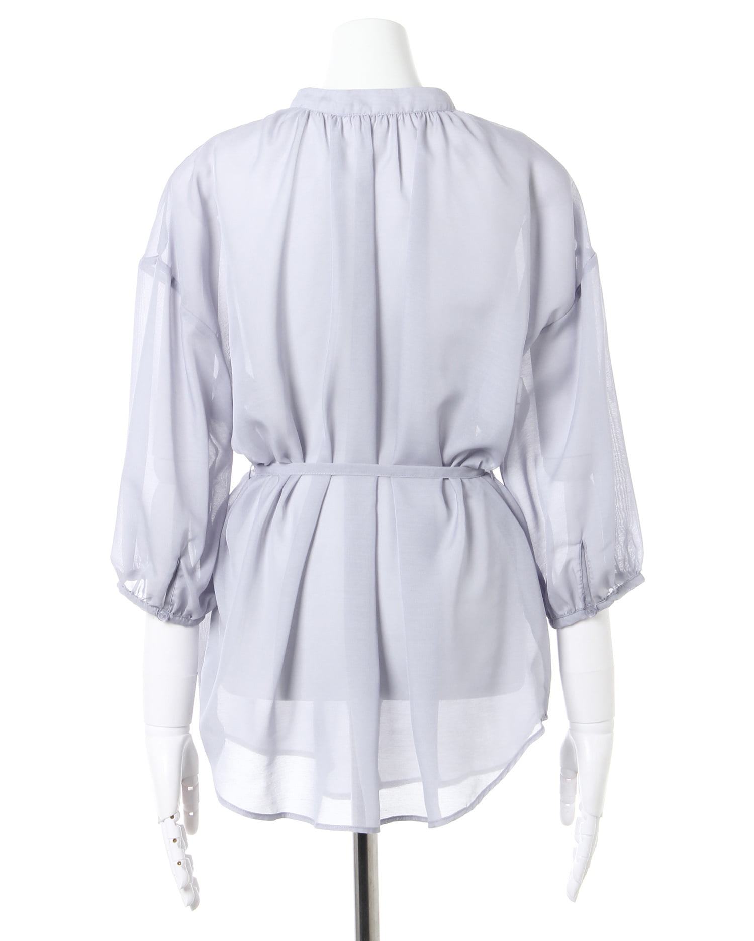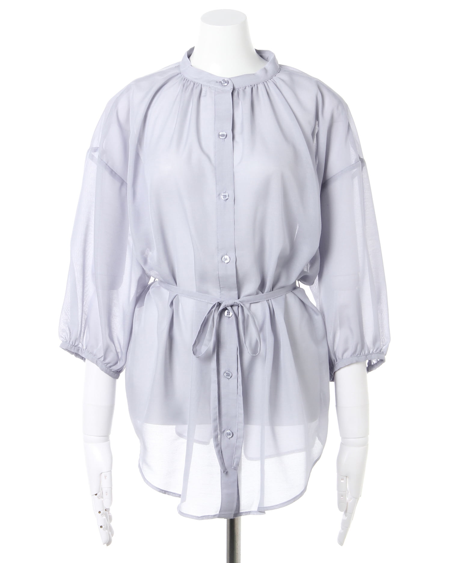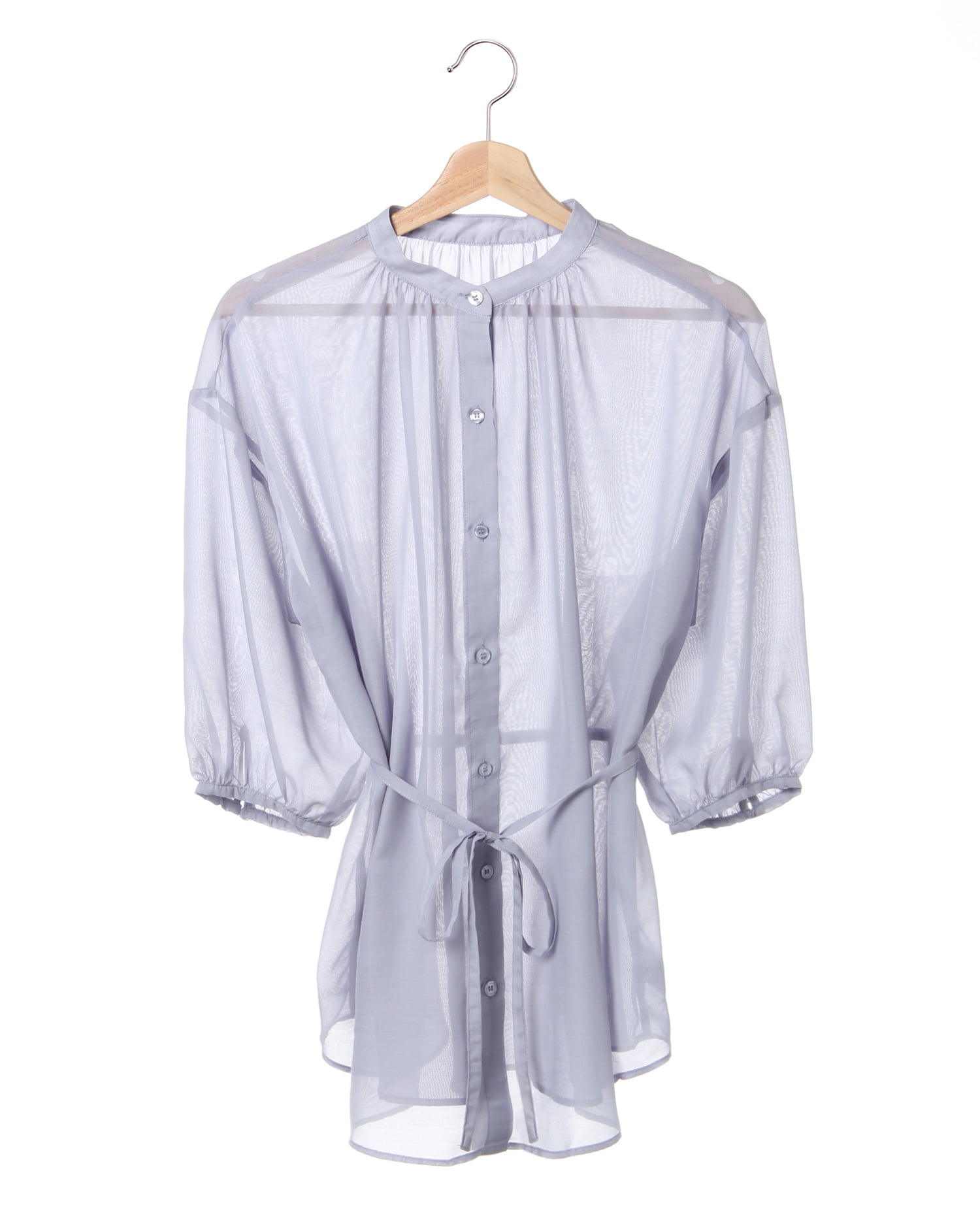 こなれ感のあるトレンドスタイルが完成するシアー素材のビッグシャツ。伸縮性のあるさらりとした素材で快適な着心地になっています。ゆったりめの身頃もすっきりとしたネックラインですっきりとした着こなしに。ドロスト付きなのでウエストマークした着こなしもおすすめです。前後で着られる2WAYデザインでコーディネイトの幅も広がります。