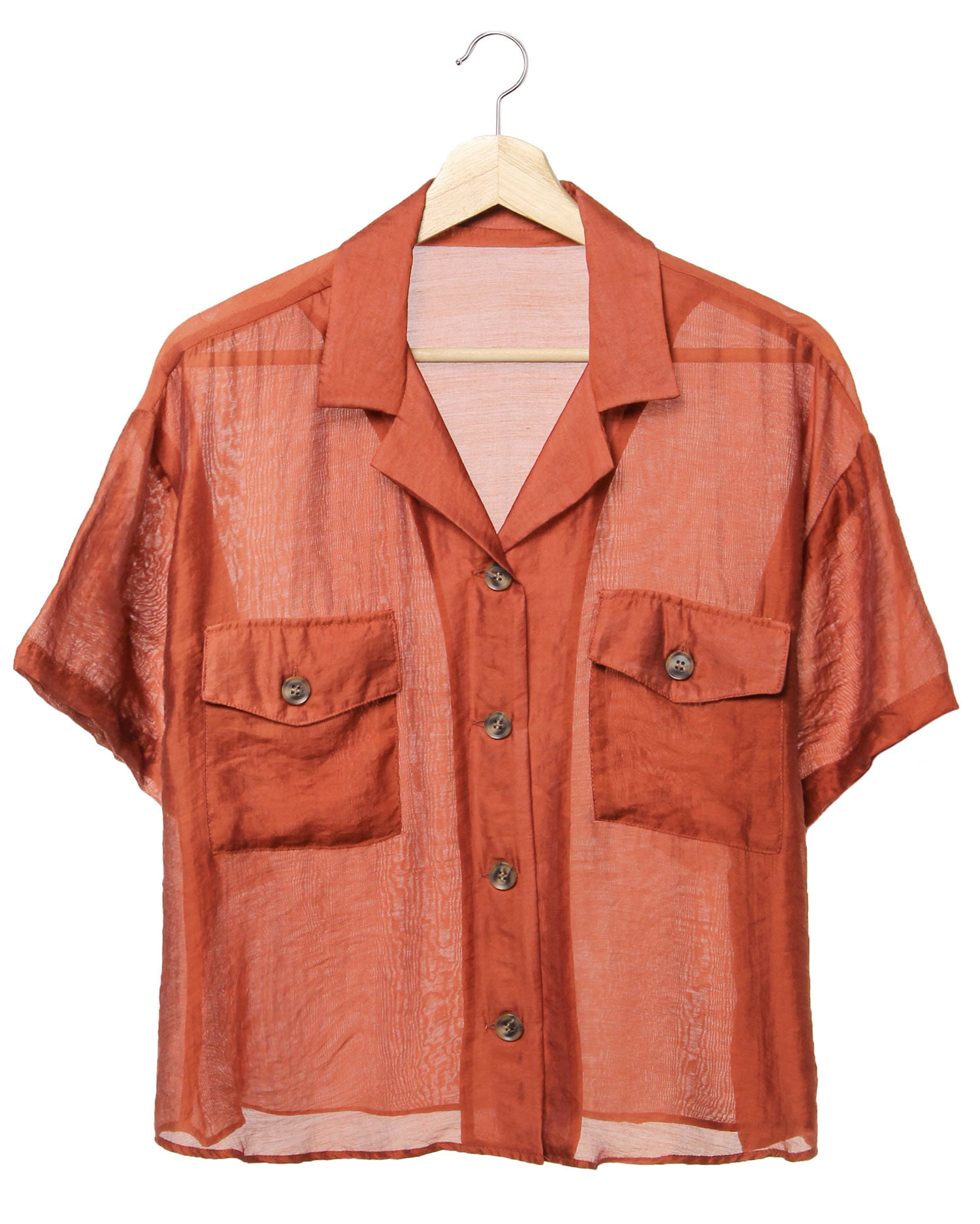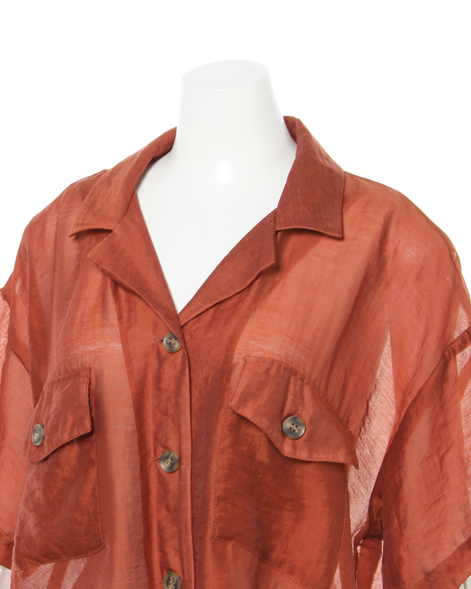 表面感のあるシアー素材で程よく力を抜いた大人カジュアルへと導くシャツ。開襟デザインが顔周りをすっきり明るく見せてくれます。大きめボタンと胸元のスクエアポケットでトレンドのワークテイストをプラス。ゆったりめのシルエットで着心地も快適です。程よく透けるインナーとのコントラストを楽しめるのも◎。サッと羽織ってもサマになるのでこれからの季節に大活躍の1枚です。