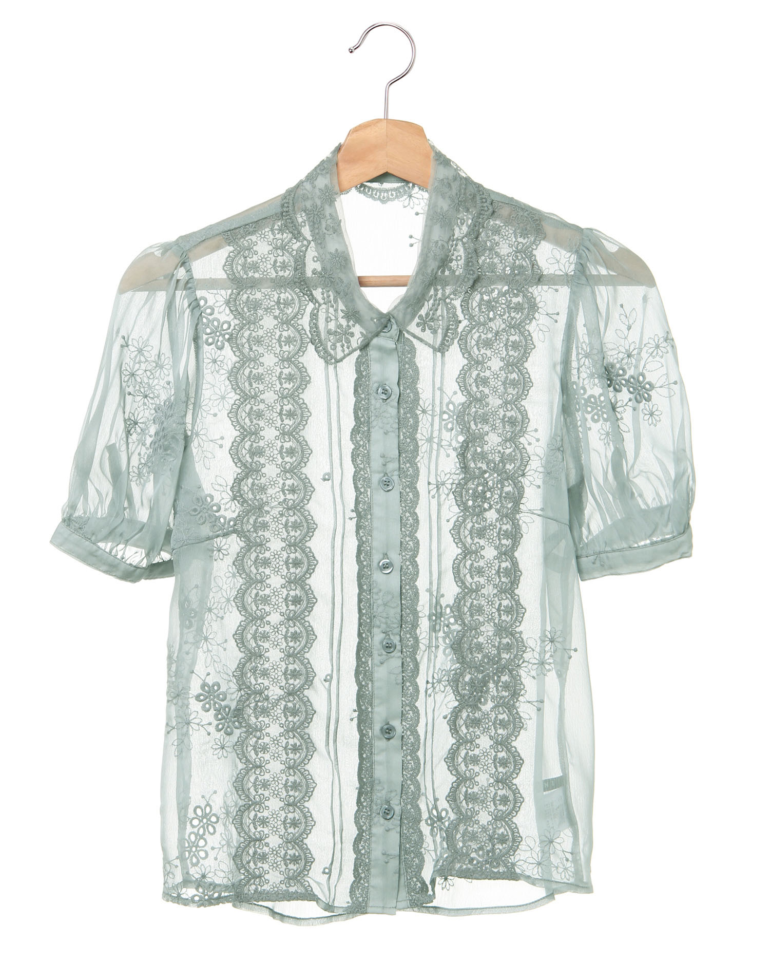 シアー素材とレースの組み合わせがクラシカル&エレガントなブラウス。スカラップデザインの襟元できちんと感をプラスしています。縦に入れたレースですっきり見えを叶えてくれるのも◎。インナーを合わせた着こなしはもちろん、羽織りとしても活躍。デニムを合わせて大人カジュアルに、スカートでとことんフェミニンなどコーディネイトの幅が広がる1枚です。