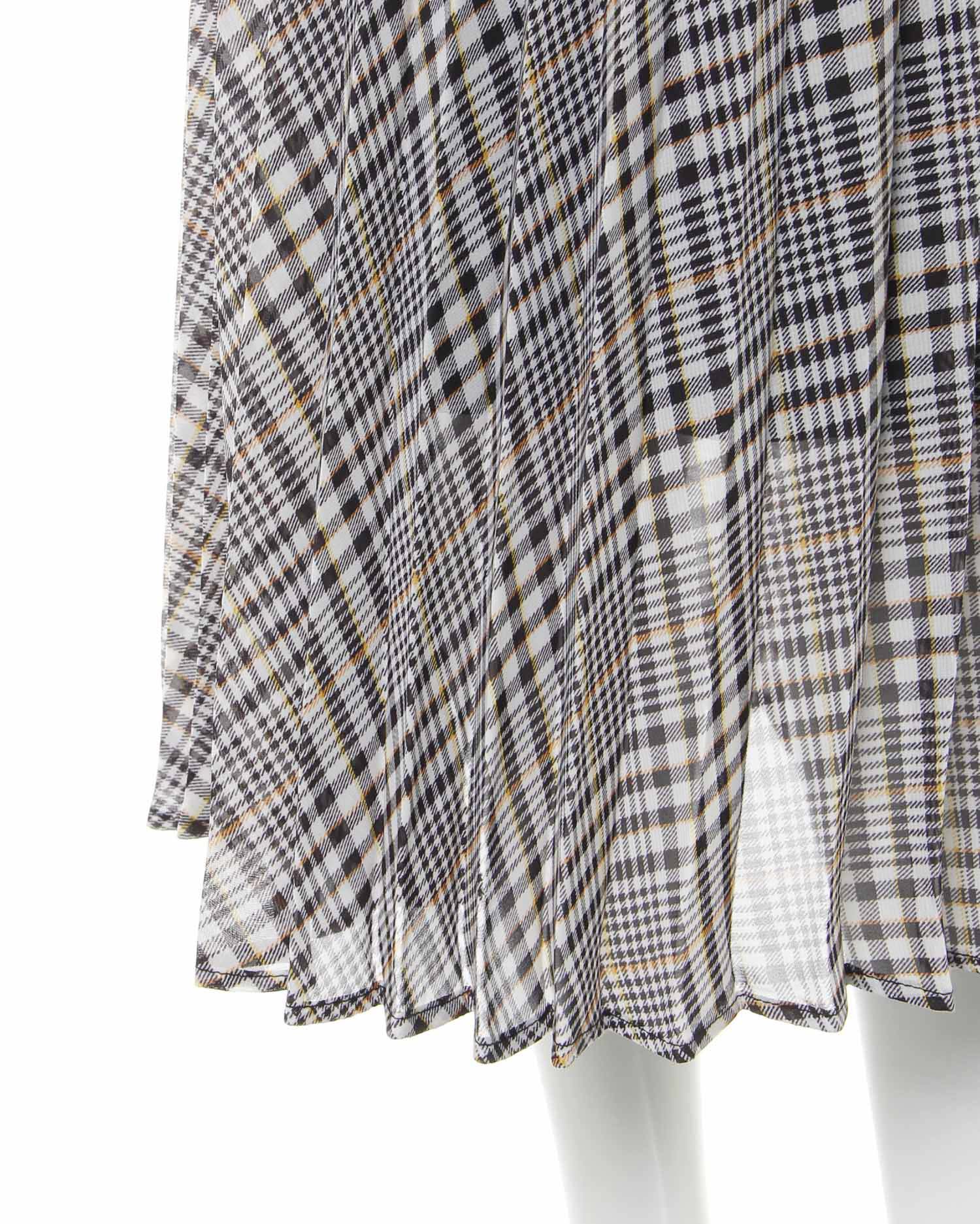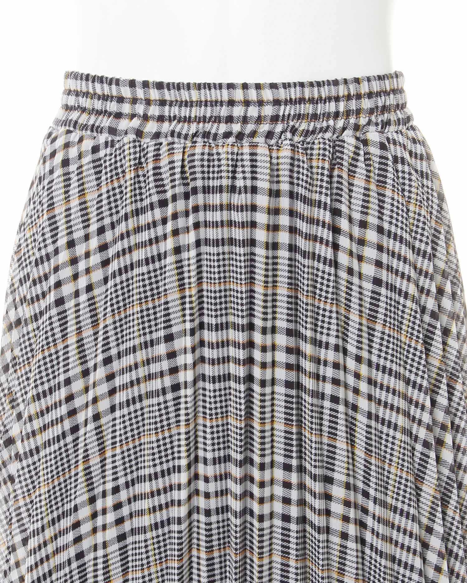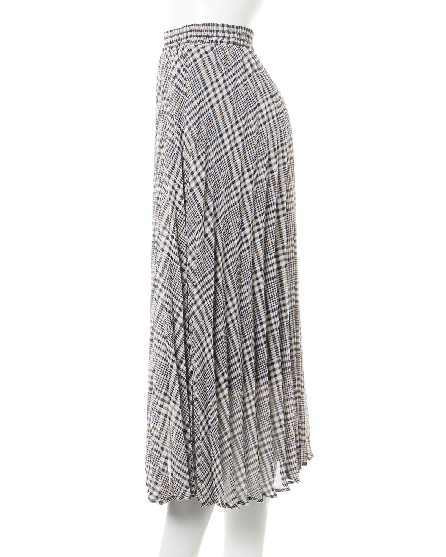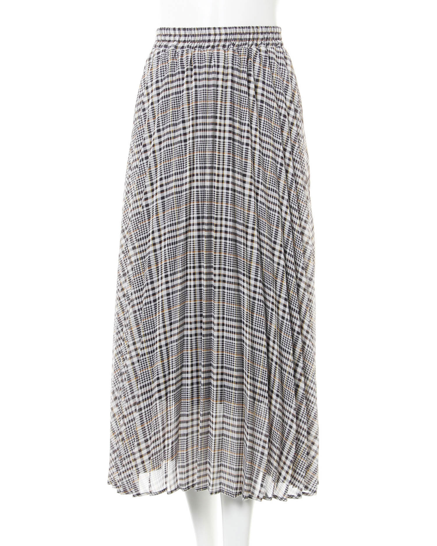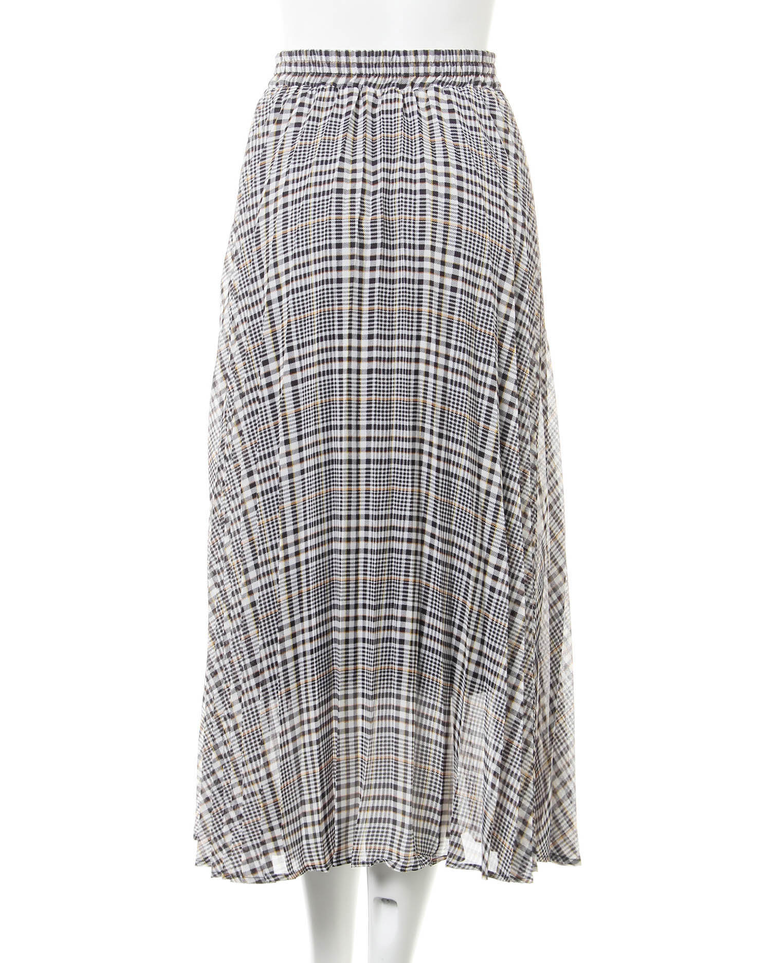 ほんのり透け感のある素材で仕立てたプリーツスカートは大人っぽいチェック柄が魅力。歩く度にふわりと広がるエレガントなシルエットはどんなトップスにもバランス良く合わせられます。ウエストはゴムになっているのでリラックスした着心地に。裏地付きなので1枚でも安心して着られます。気になる腰回りをカバーしスタイルアップも狙えるのでデイリーに活躍すること間違いなし。
