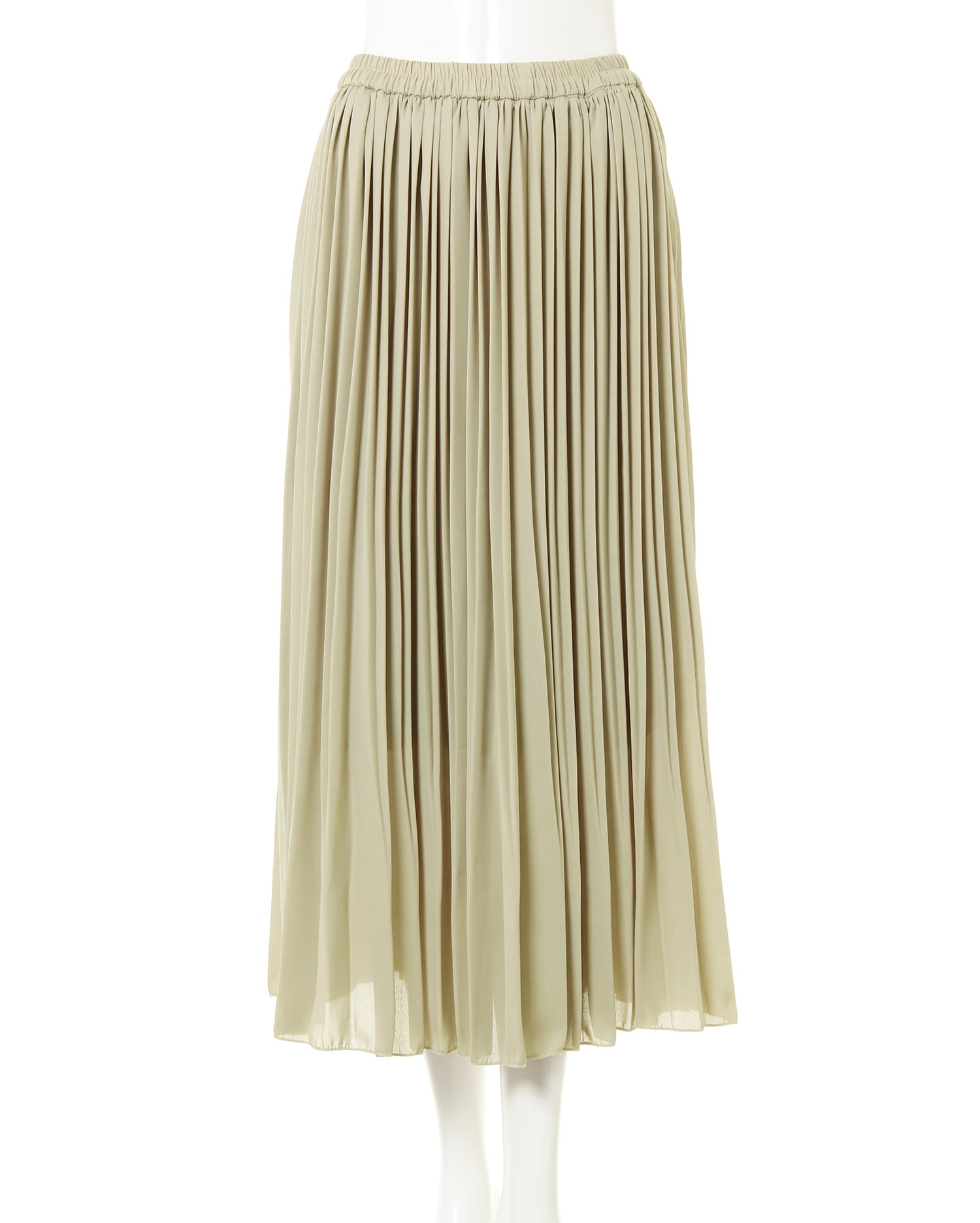 女性らしいプリーツデザインを光沢のある滑らかな素材で仕立てたエレガントなスカート。きちんと感のある落ち着いた雰囲気でオンオフ問わず着回せます。歩くたびに裾へ向かってふわりと広がるボリューミーなシルエットが今年らしい。ウエスト部分はゴムになっているので着心地も抜群、普段使いに重宝します。ボリュームトップスを合わせてゆるっとコーデを楽しむのもおすすめ。