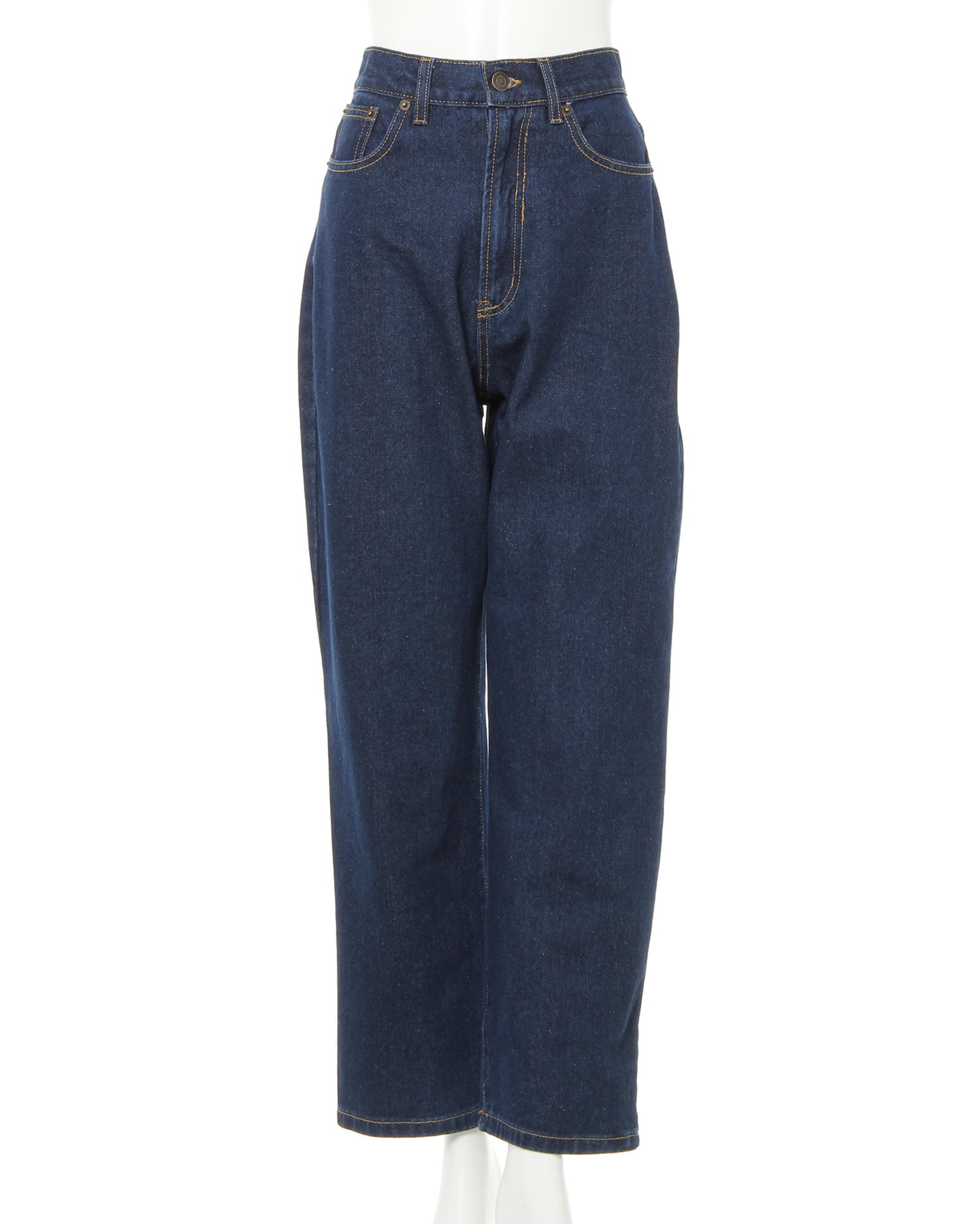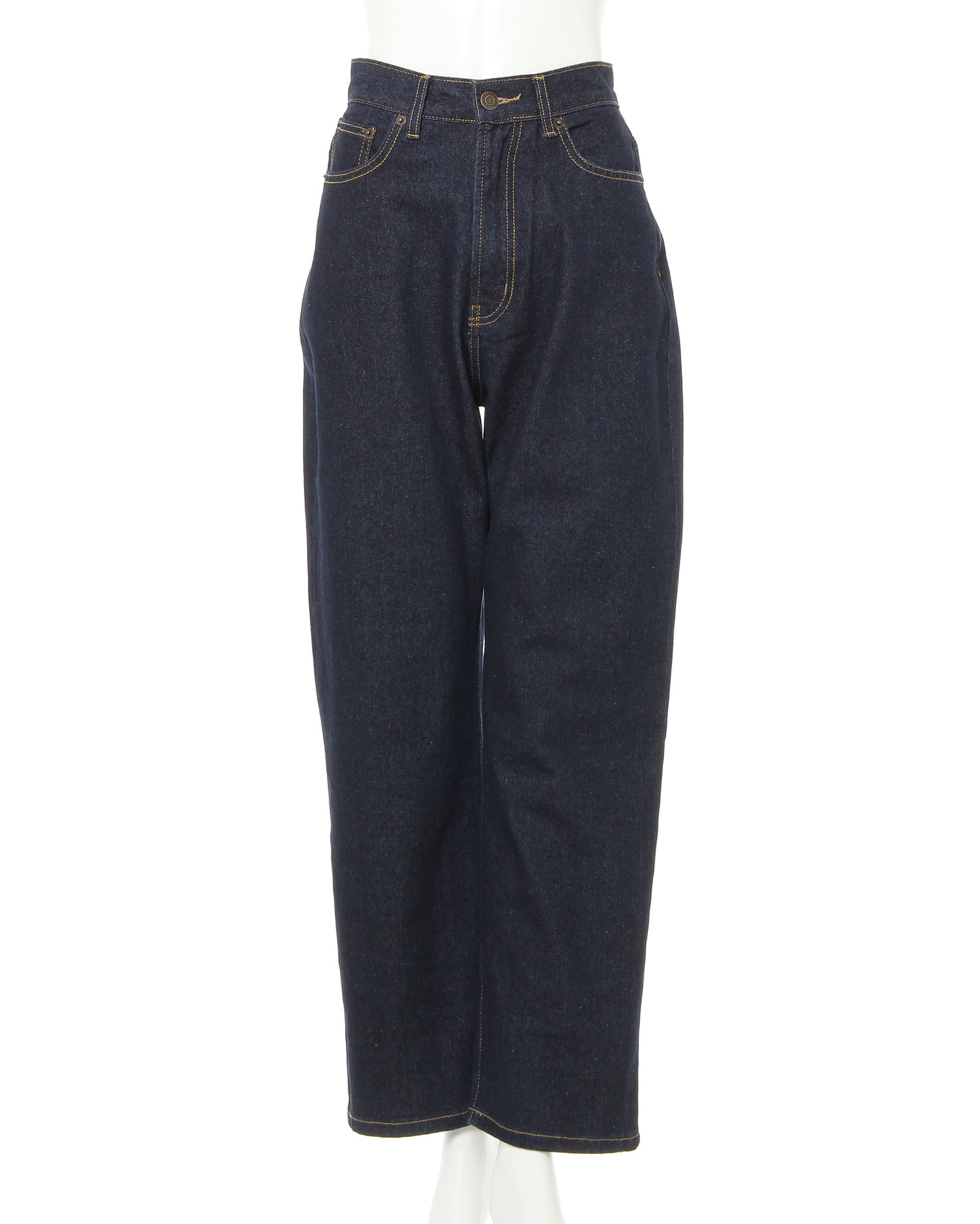 デイリーコーデの定番、デニムパンツをハイウエストデザインで今年らしく仕上げた1本。どんなトップスにも合わせやすいベーシックなストレートラインで長く愛用できます。バックポケットを小さめにし、ヒップ周りをすっきり見せる計算ずくのデザインも◎。ちょっぴり太めになっているのでトレンドのゆるっとスタイルで着こなすのもおすすめです。ロールアップすればボーイズライクに。