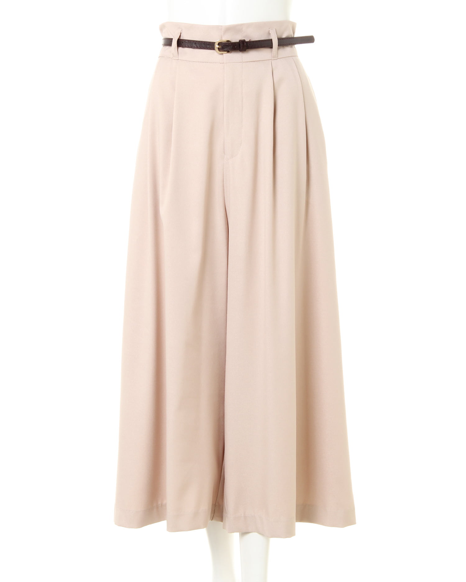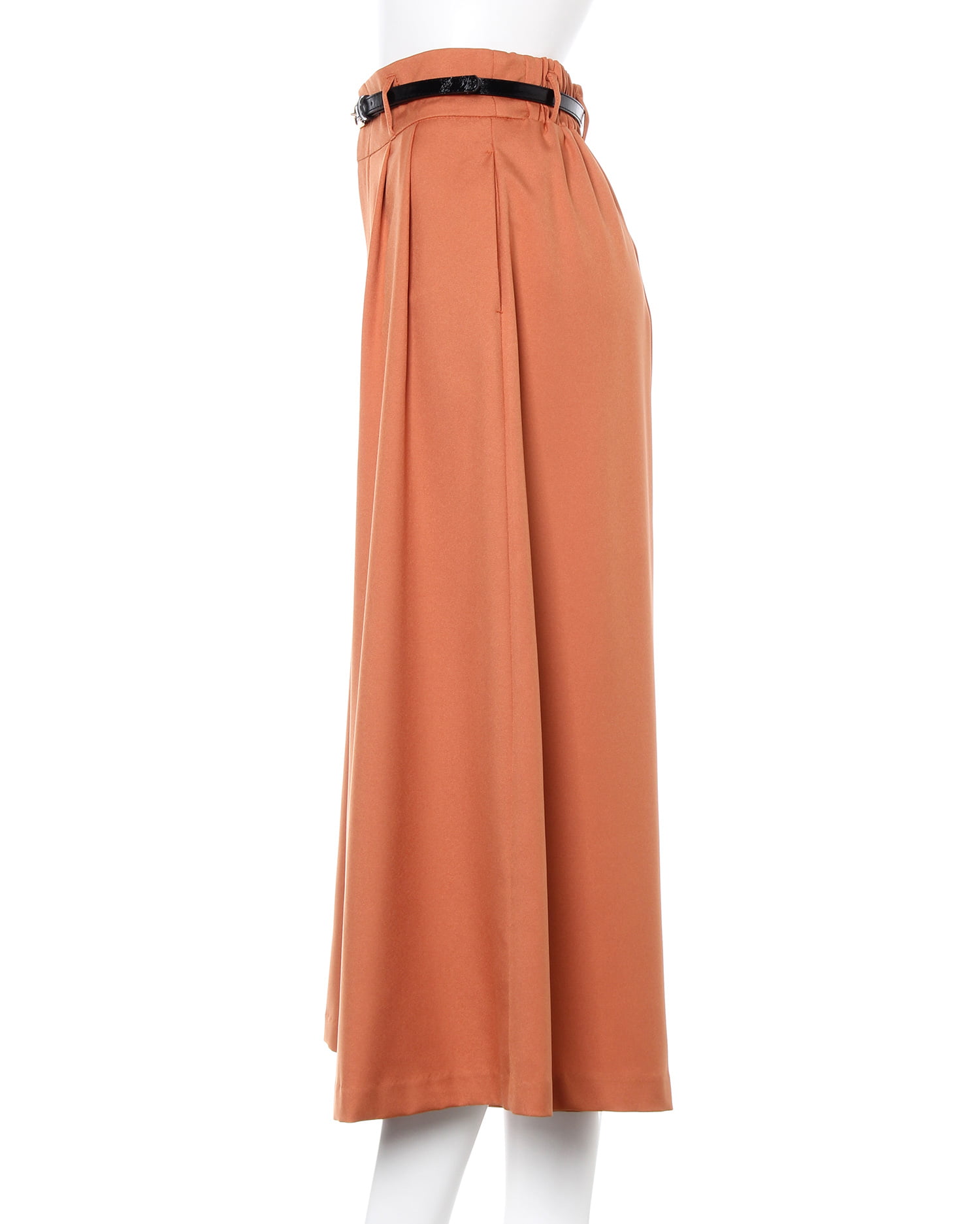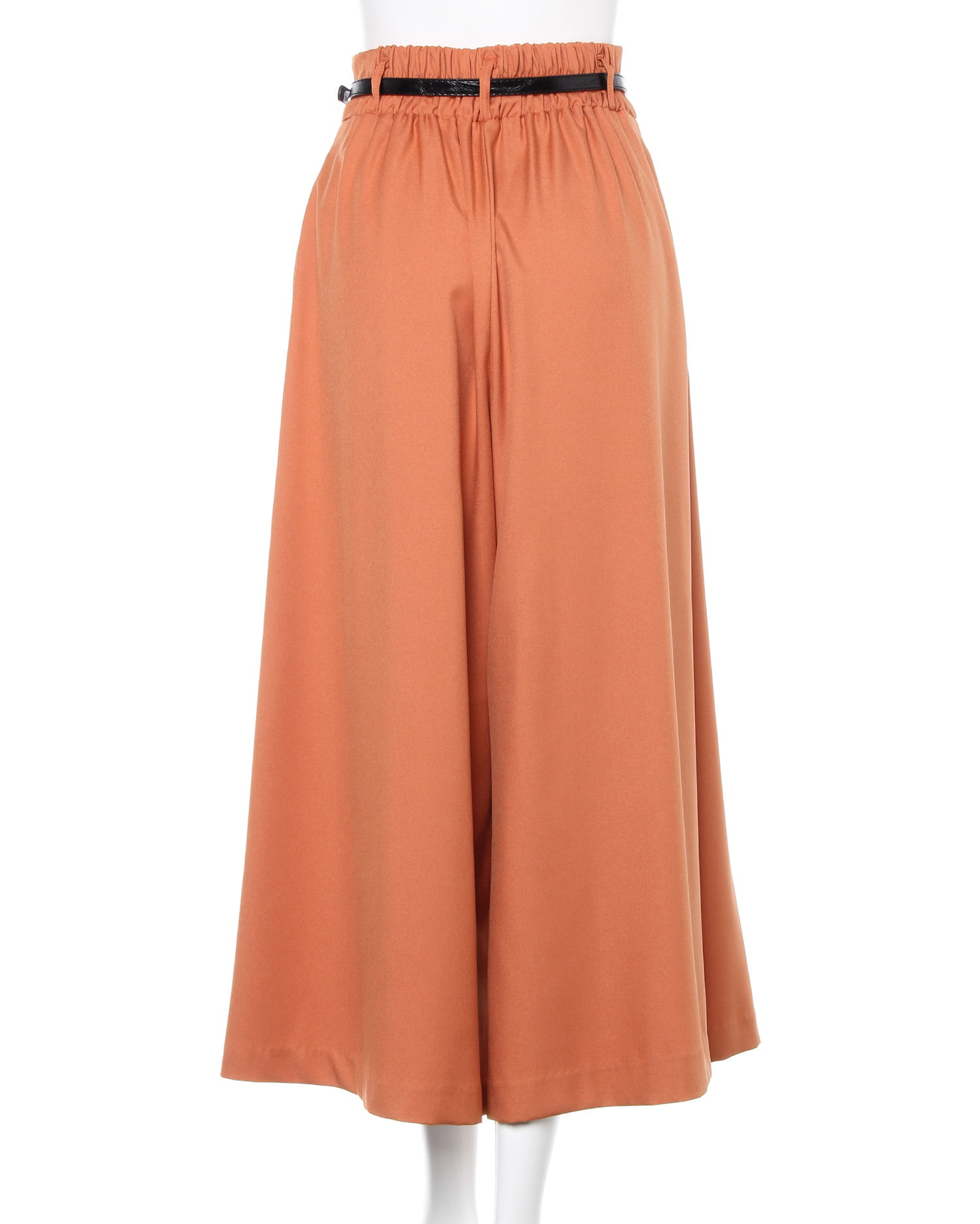 落ち感のあるなめらか素材のスカーチョはきちんとした印象でオンオフ問わずに活躍。伸縮性のある生地とバックウエストゴムで快適な着心地になっています。ウエスト下にはタックを入れ、腰回りをすっきり。ボリュームのあるアイテムもすっきり着こなせます。サイドには便利なポケット付き。ウエストマークに使える細帯のベルトがセットになっています。