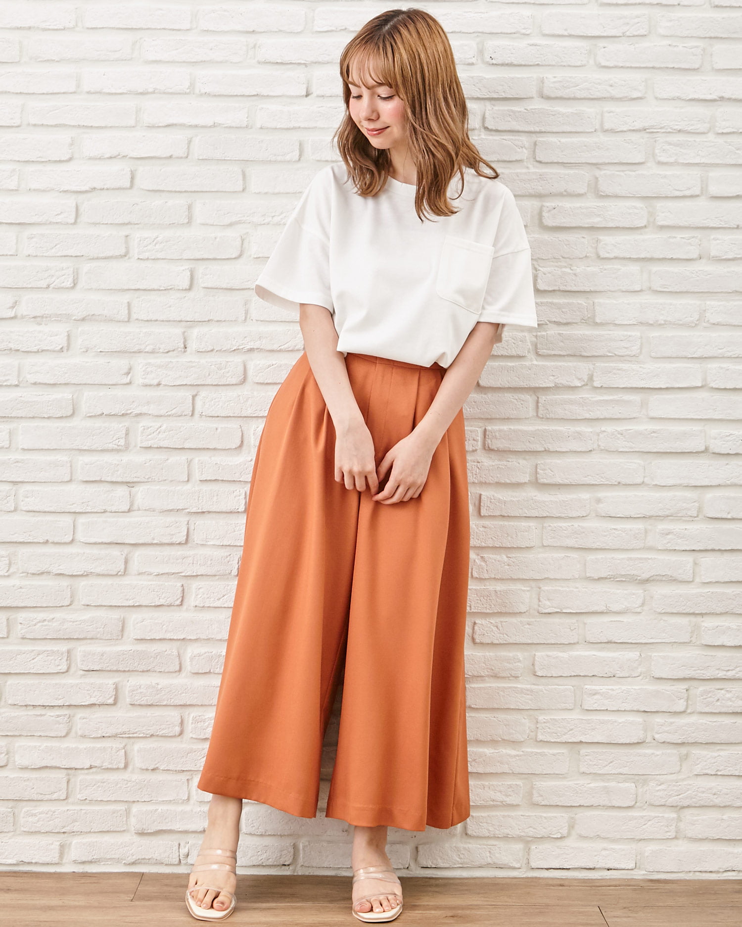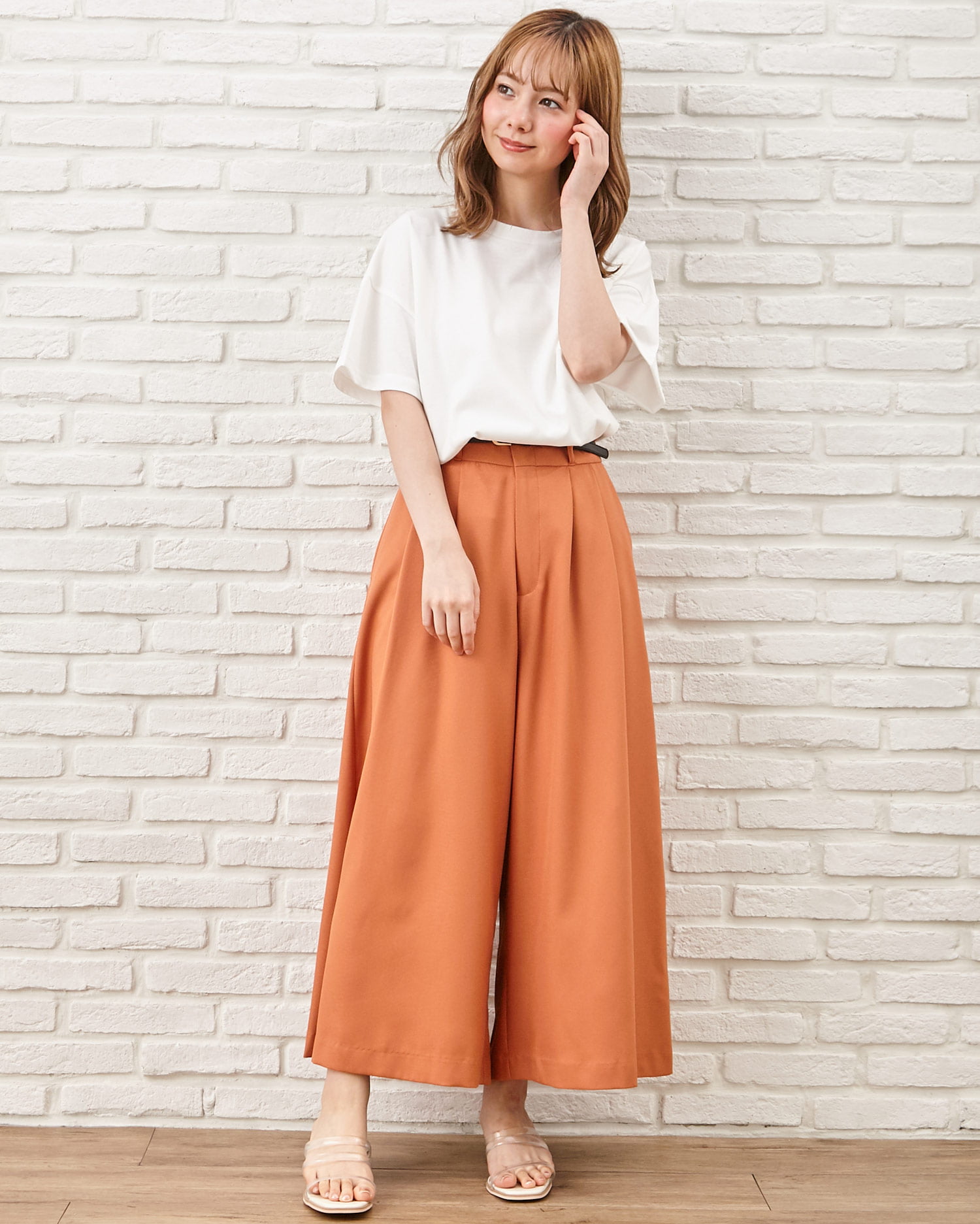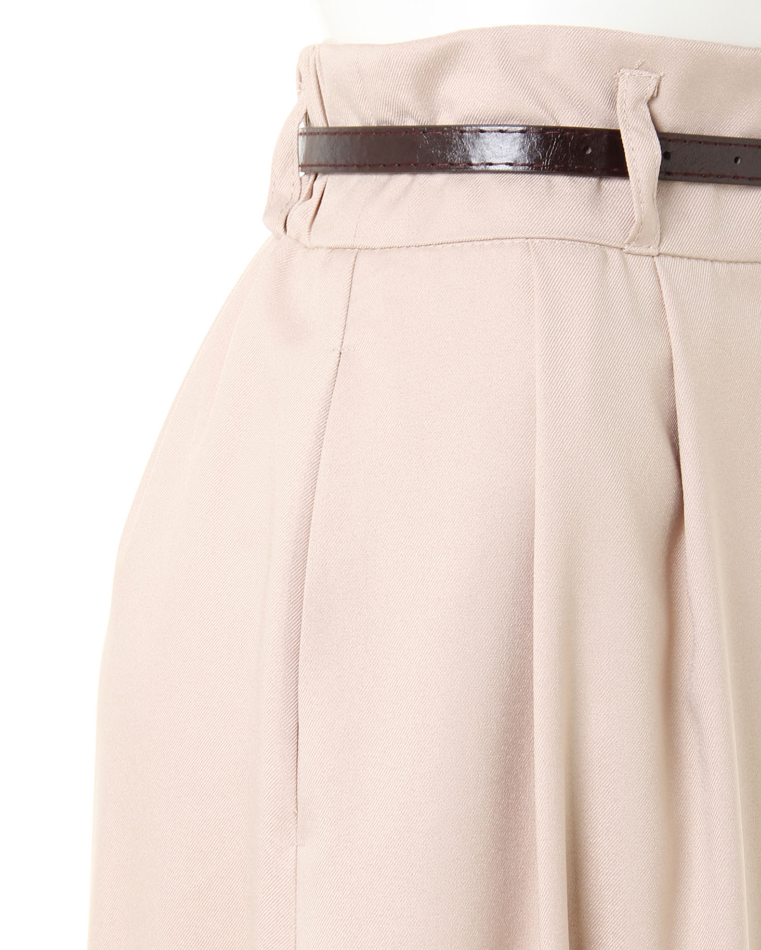 落ち感のあるなめらか素材のスカーチョはきちんとした印象でオンオフ問わずに活躍。伸縮性のある生地とバックウエストゴムで快適な着心地になっています。ウエスト下にはタックを入れ、腰回りをすっきり。ボリュームのあるアイテムもすっきり着こなせます。サイドには便利なポケット付き。ウエストマークに使える細帯のベルトがセットになっています。