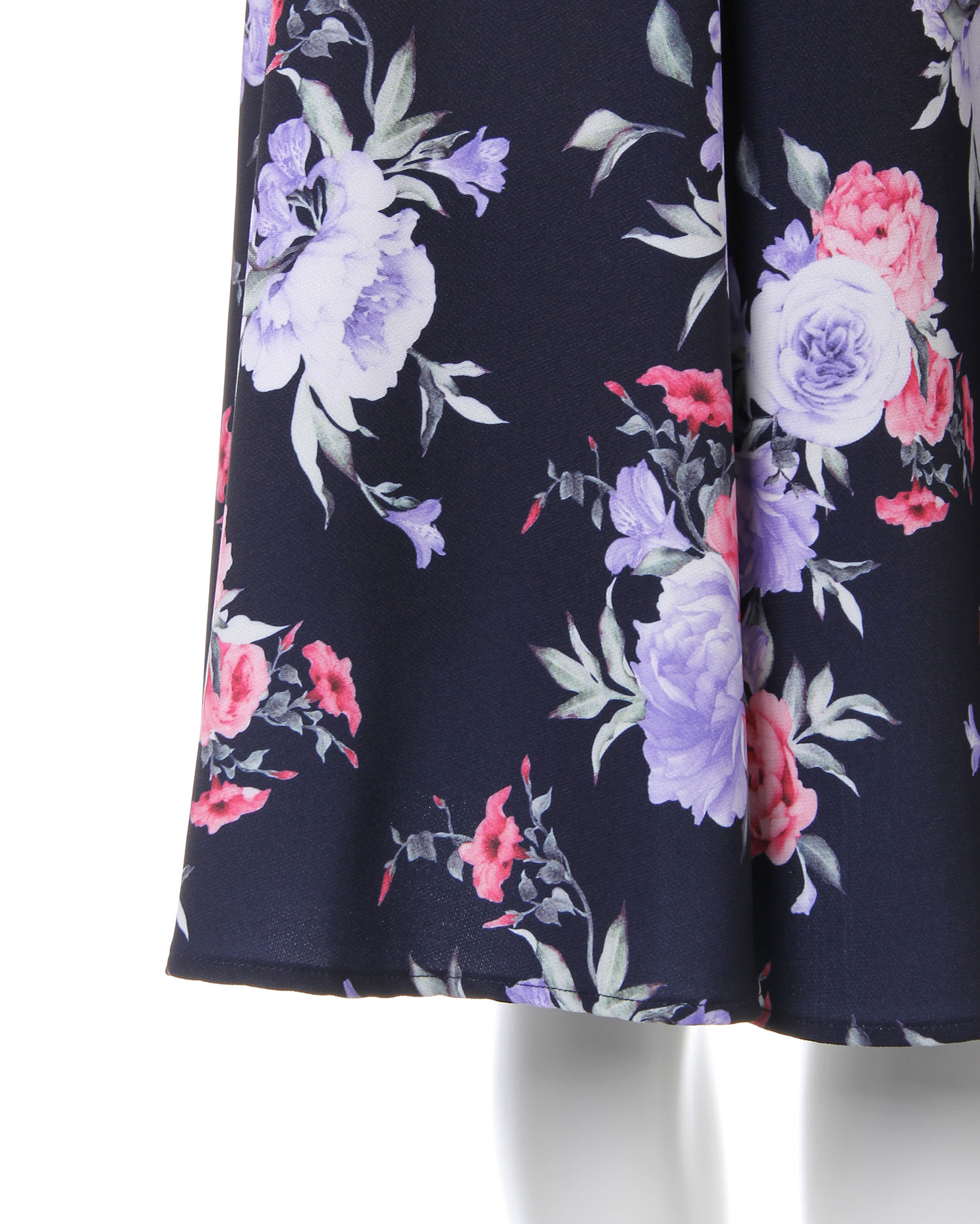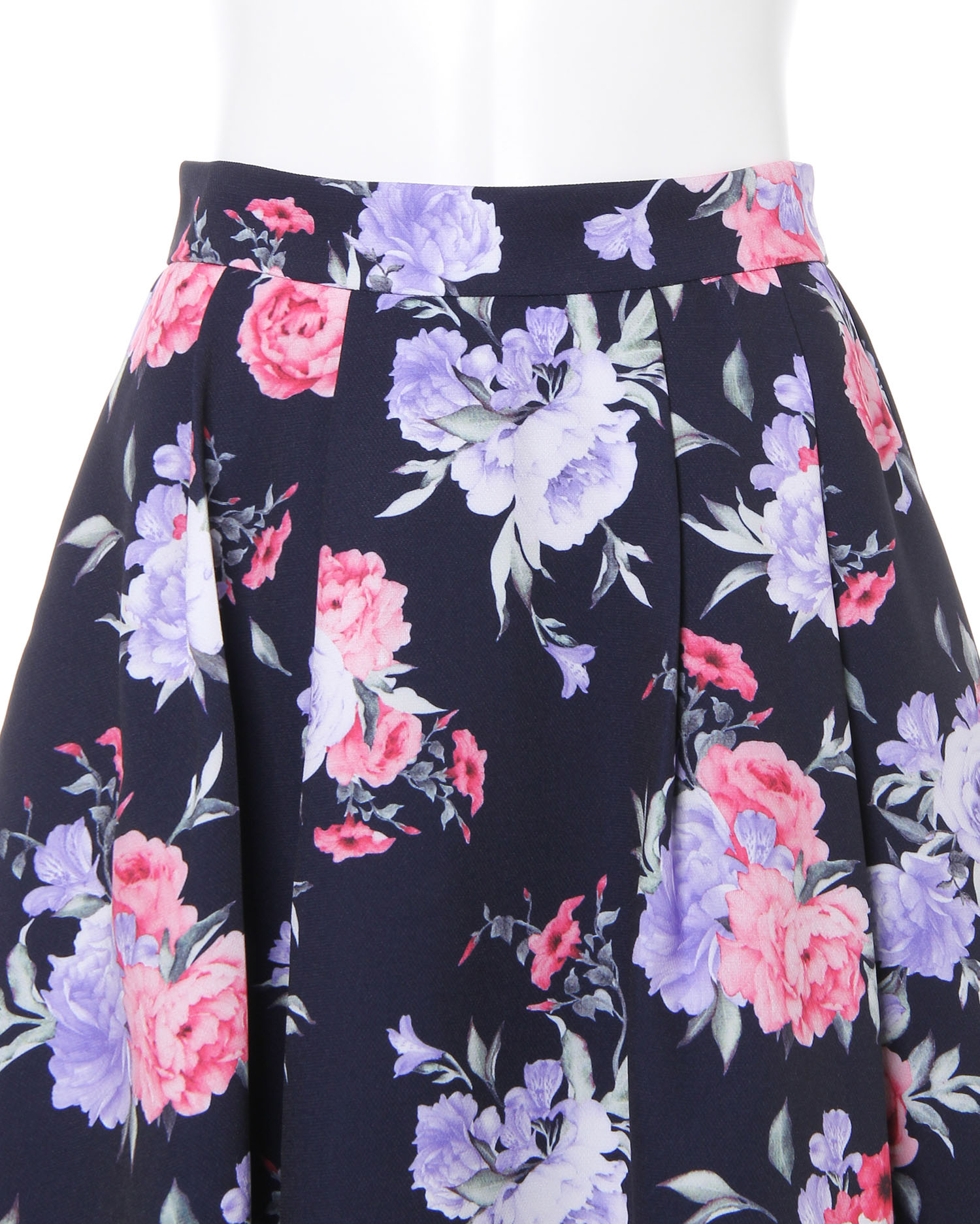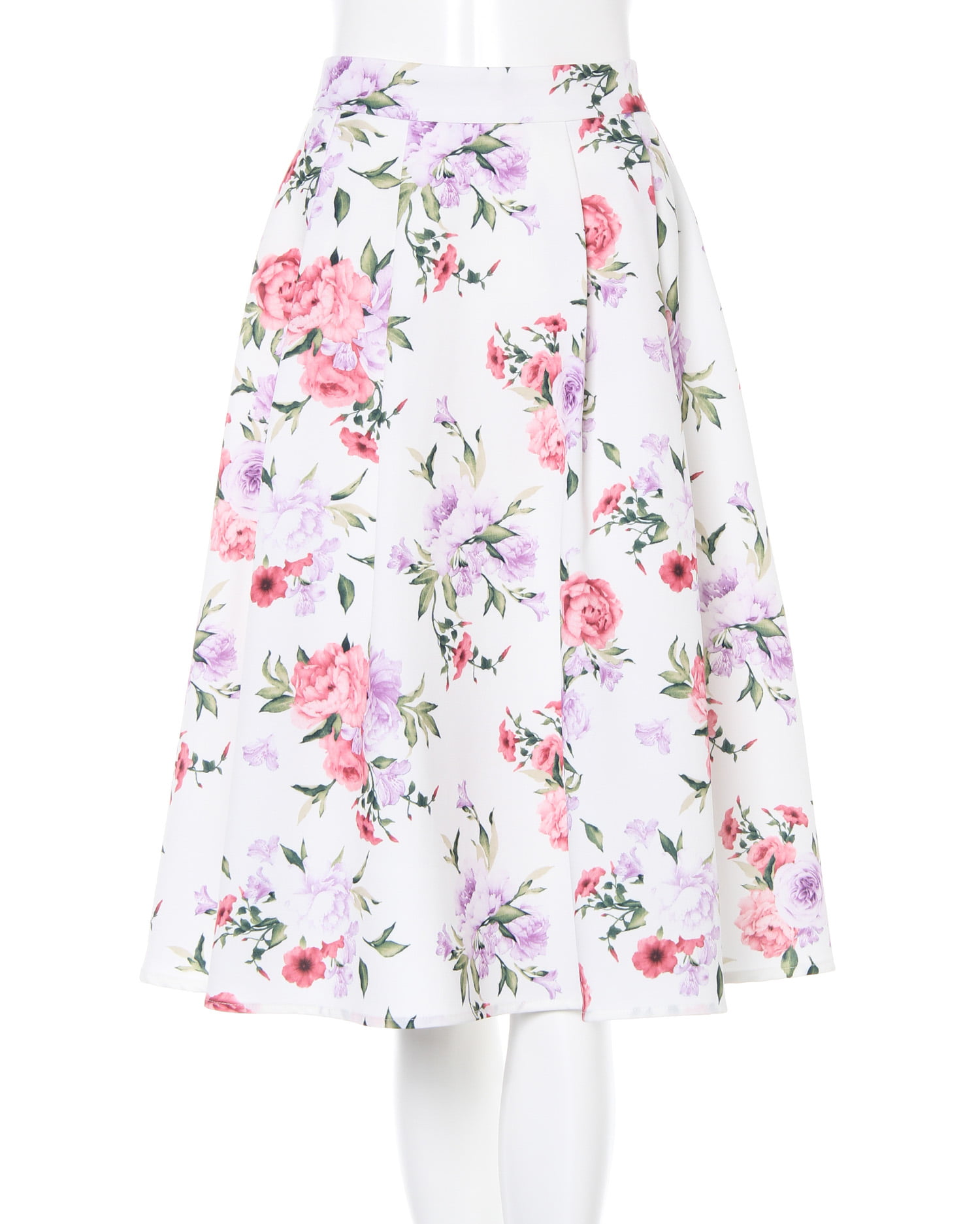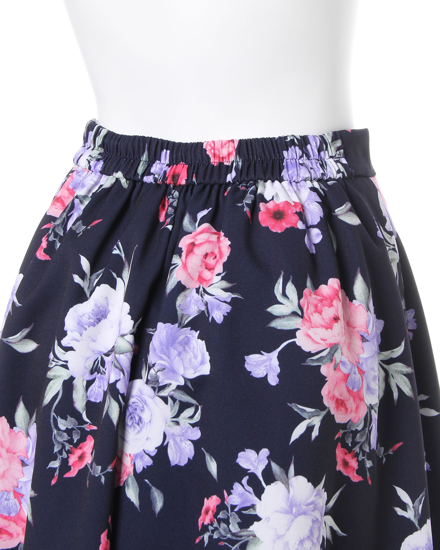 まるで水彩画のような大花プリントが大人レディなミディ丈のスカート。鮮やかなカラー使いがコーディネイトを華やかに彩ります。ウエスト下のタックから広がるフレアシルエットが美ラインを演出。バックウエストはゴムになっているので脱ぎ穿きも楽ちんです。ハリ感のある生地はシワになりにくく、オフィスシーンにもおすすめ。程よい厚みの生地でシーズン長く活躍します。