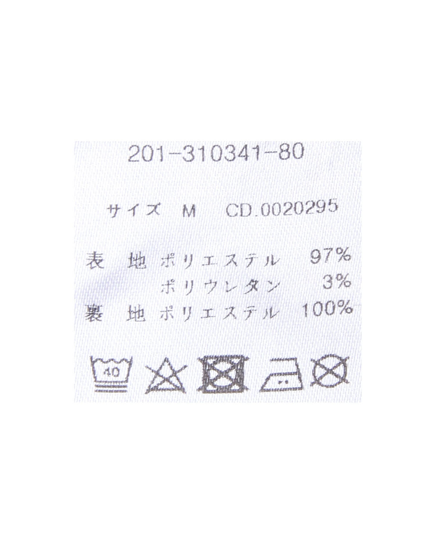 原産国 中国 表地 ポリエステル97% 表地 ポリウレタン3% 裏地 ポリエステル100%