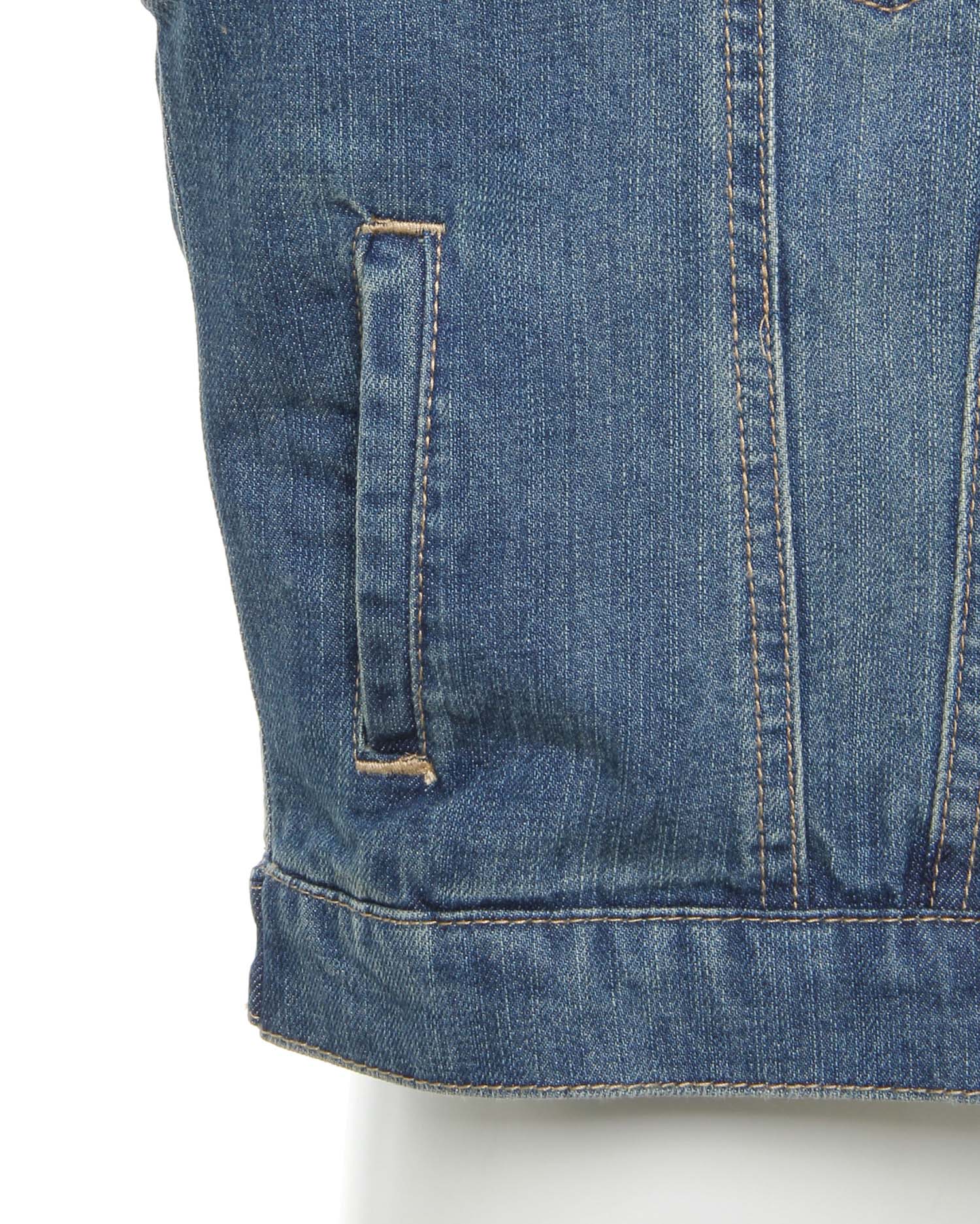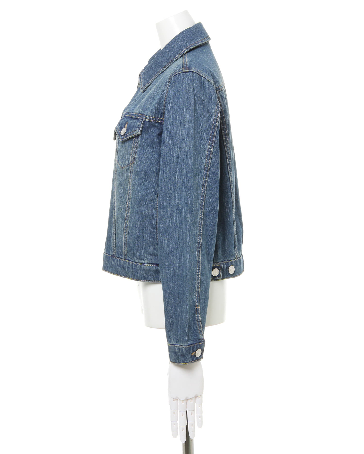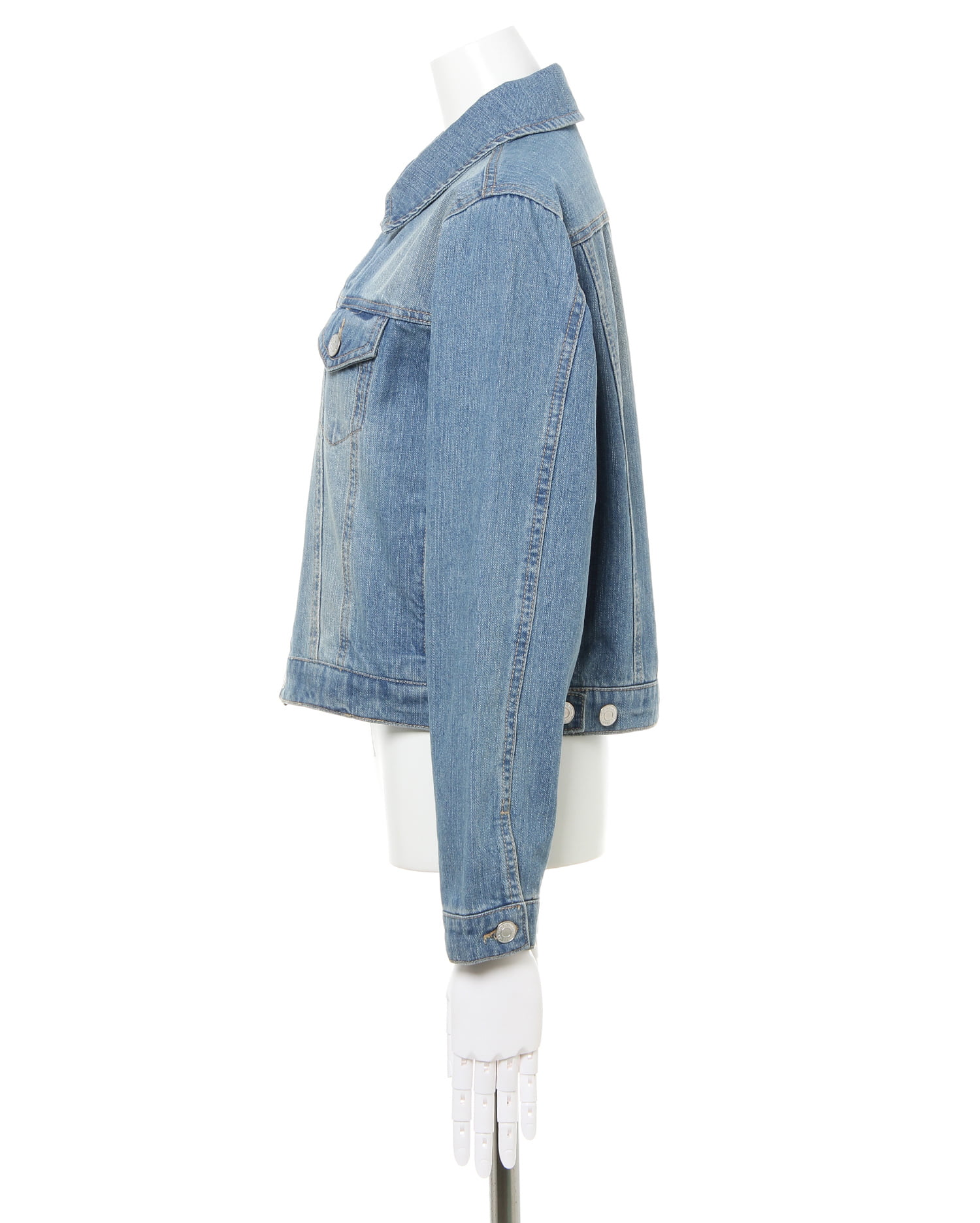 季節の変わり目からシーズン長く着回せるベーシックデザインのGジャン。コンパクトなシルエットで上半身をすっきり見せ、バランス良く着こなせます。ハリ感のあるデニム生地がきれいなラインをキープ。ちょっぴり短めの裾丈はボリュームスカートを合わせたキュートスタイルにもオススメです。胸元のポケットも小さめにすることですっきり見えるのもポイント。サイドには便利なオープンポケットが付いています。