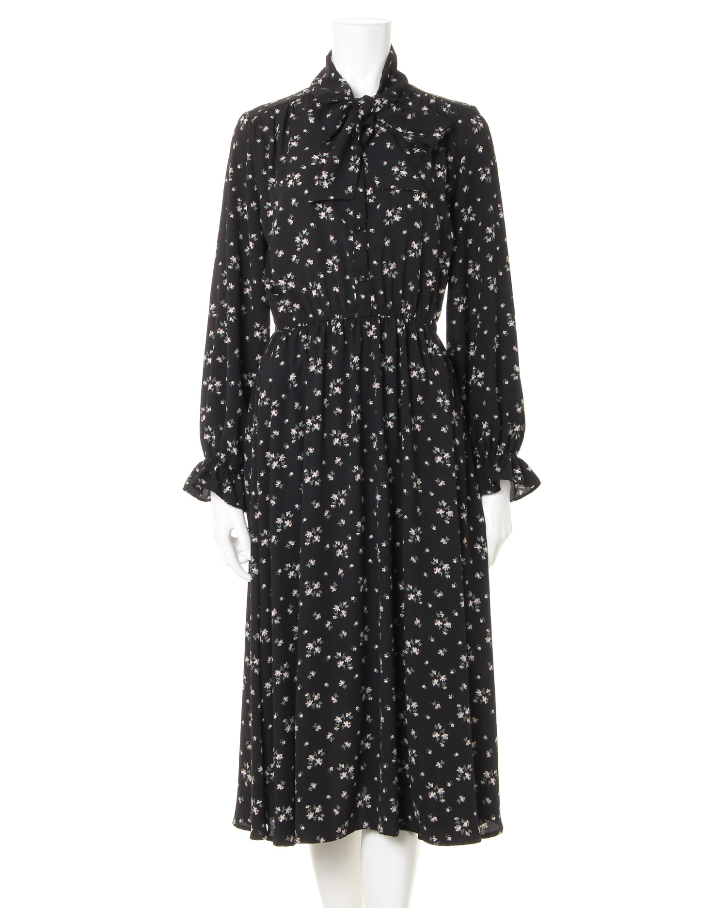 クラシカルでガーリーな着こなしを楽しめるワンピース。落ち着いた色合いと可憐な印象のフラワープリントが上品な雰囲気でオンオフ問わず着回せます。艶っぽく滑らかな薄手の素材がこれからの季節にピッタリ。顔周りを華やかにしてくれるボウタイデザインでトレンド感も抜群です。スカート部分には裏地が付いているので1枚でも安心。スタイルアップ効果も狙えるメリハリのあるシルエットにも注目です。