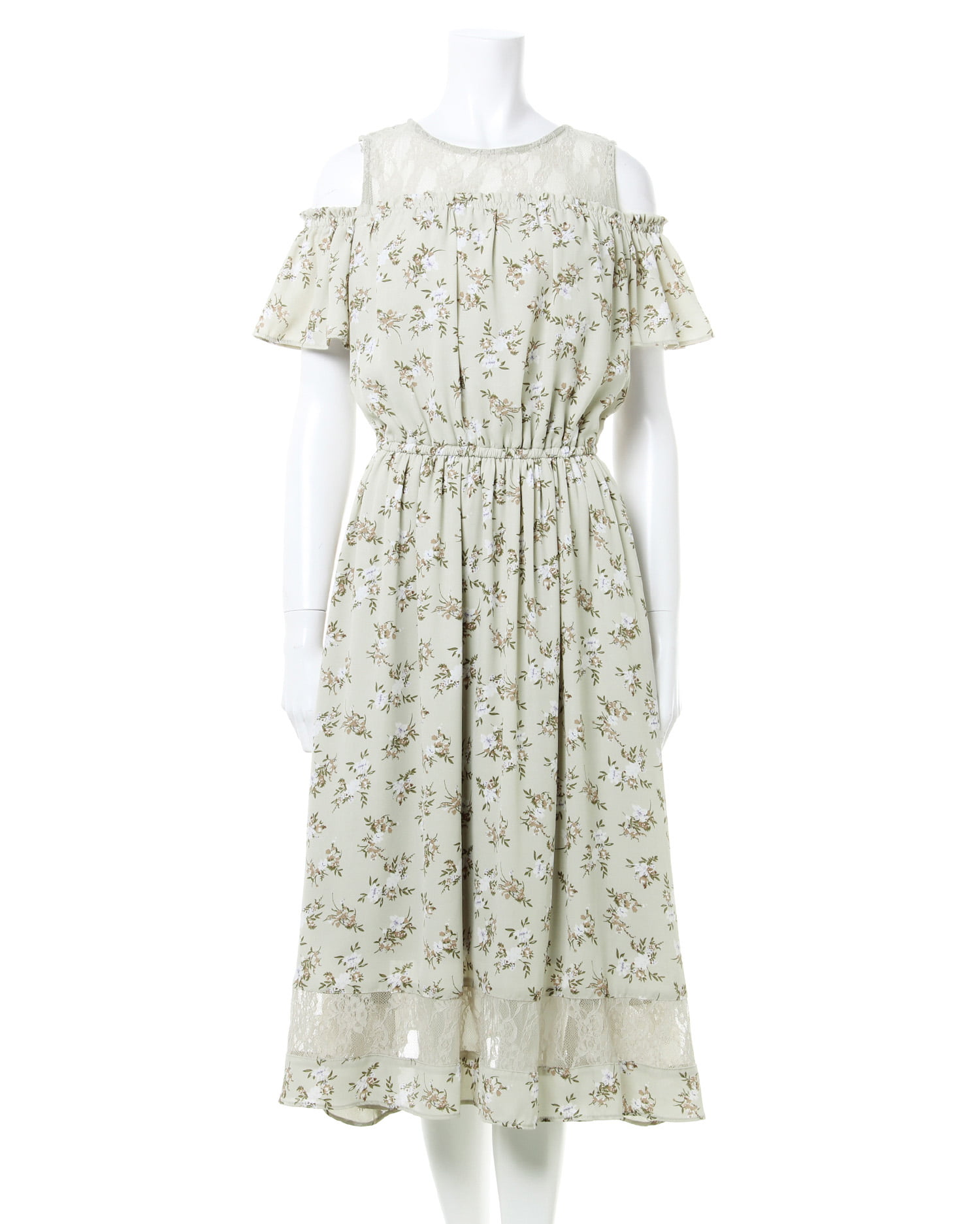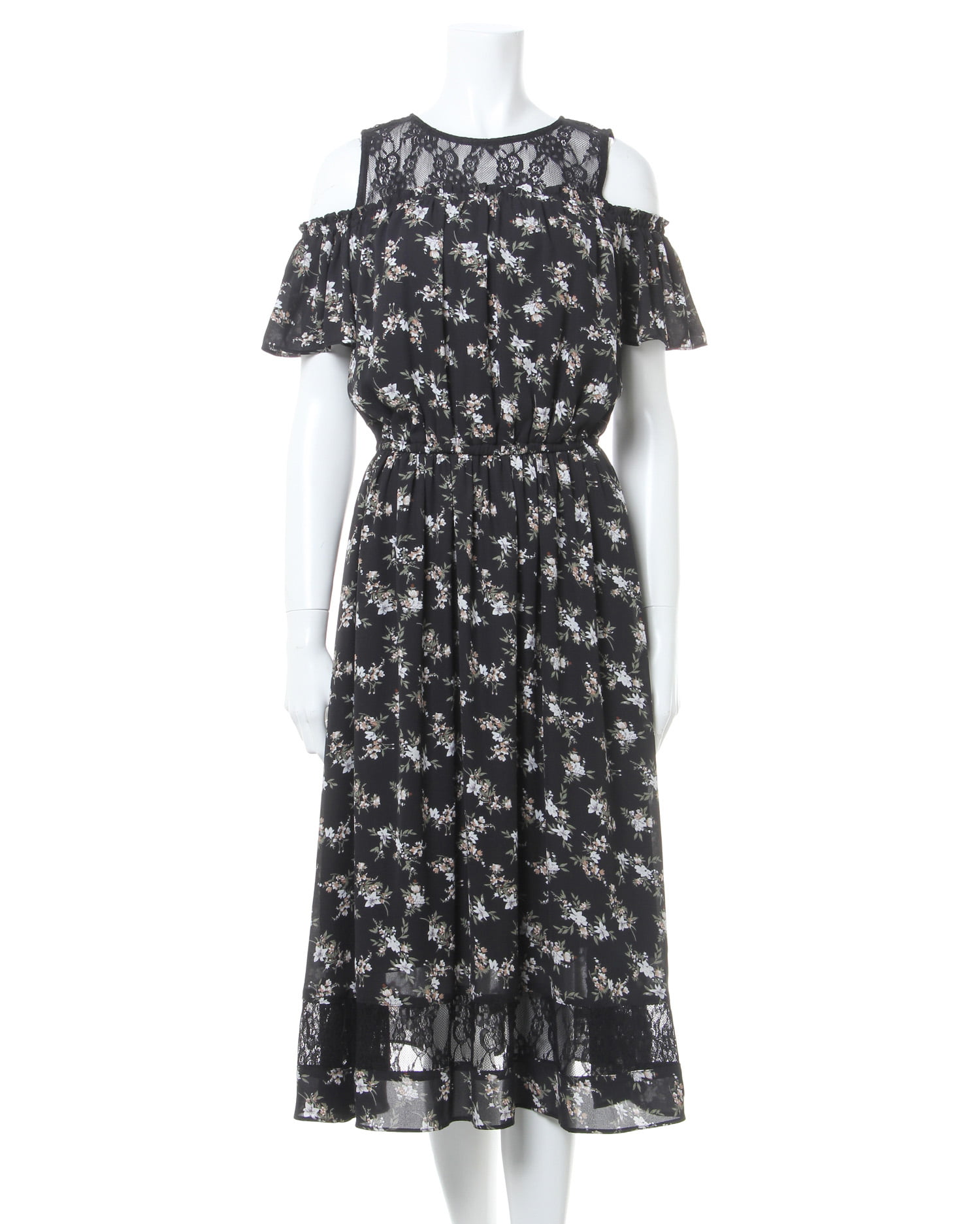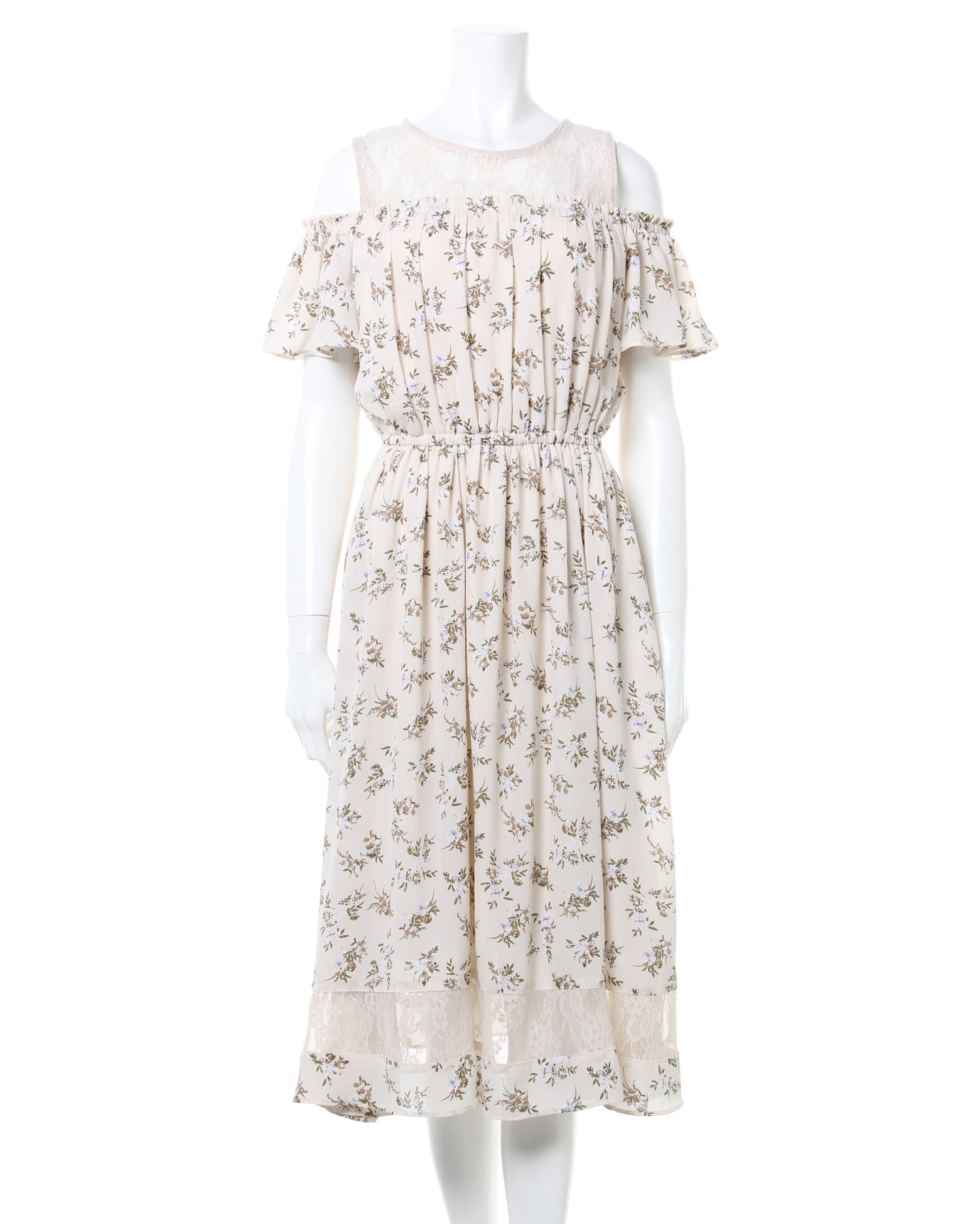 レースのタンクトップとオフショルワンピースを重ね着したかのようなドッキングデザインが魅力。1枚で好バランスのレディスタイルが完成します。ウエスト部分はゴムになっているのでブラウジングも可能。ウエストラインからふわりと広がるスカートのシルエットが◎。裾部分は透け感のあるレース切り替えを入れアクセントに。薄手の素材も裏地付きで安心して着られます。