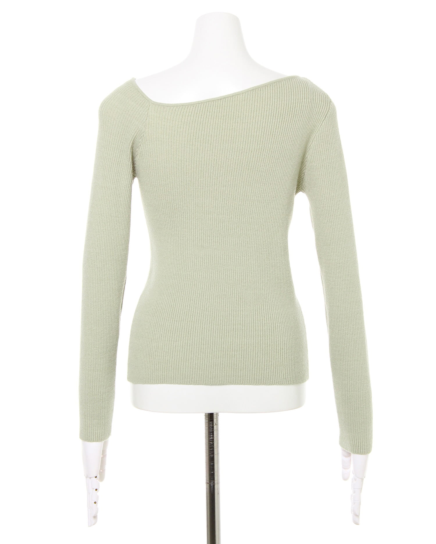 華奢なデコルテラインを演出してレディな着こなしを叶えるリブニットトップスが登場。デザイン性のあるニットもワンカラーで合わせやすくなっています。細めのリブがボディラインに沿い、上半身をコンパクトに見せてくれるのも◎。程よい裾丈はトップスインスタイルも楽しめます。上品なアイテムなのでオンオフ問わずに活躍すること間違いなし。