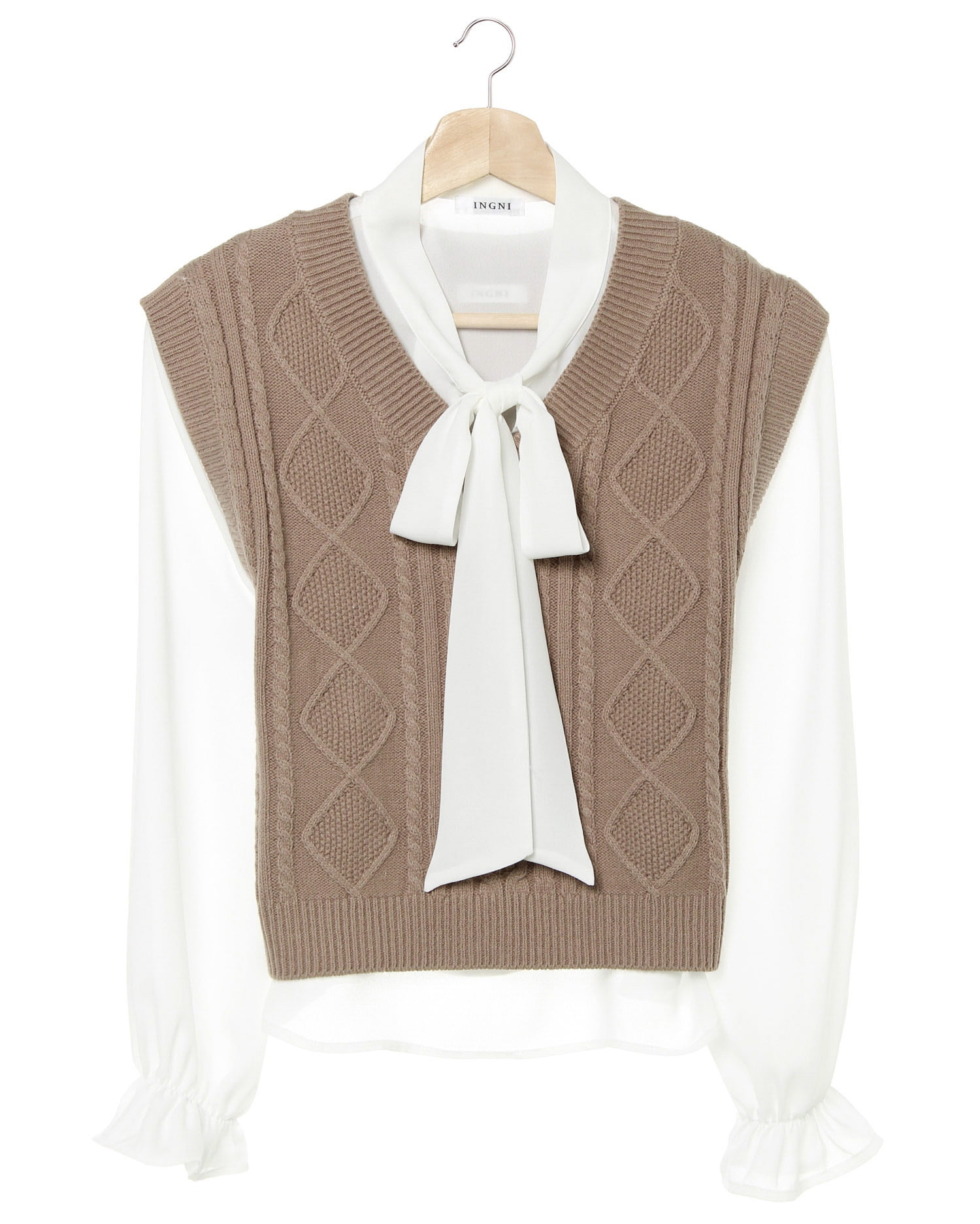 セットで合わせるだけでトレンドコーデが完成するニットベストとブラウスのセットです。エアリーなブラウスはボウタイデザインできちんと感プラス。短め丈でバランス良く合わせられるベストはすっきりとしたVネックになっています。セットではもちろん、単品でも活躍するお得なセットはワードローブに今すぐ追加決定です。